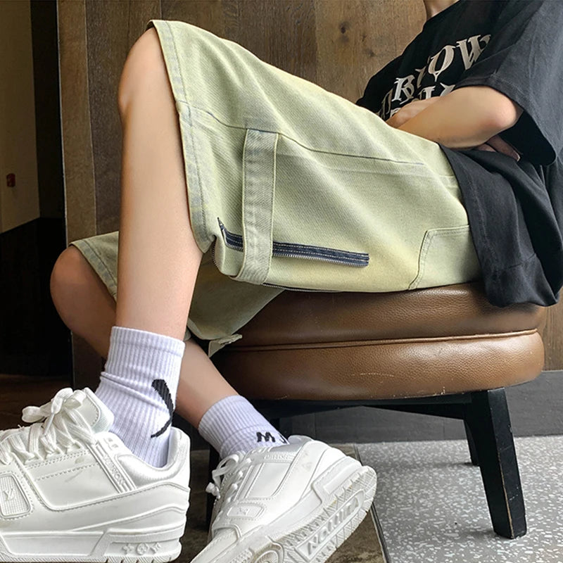 Threebooy New Mens Fake Zippers Jeans Shorts Korean Fashion Shorts Harajuku High Street Men Clothing Casual Shorts Streetwear Short Pants