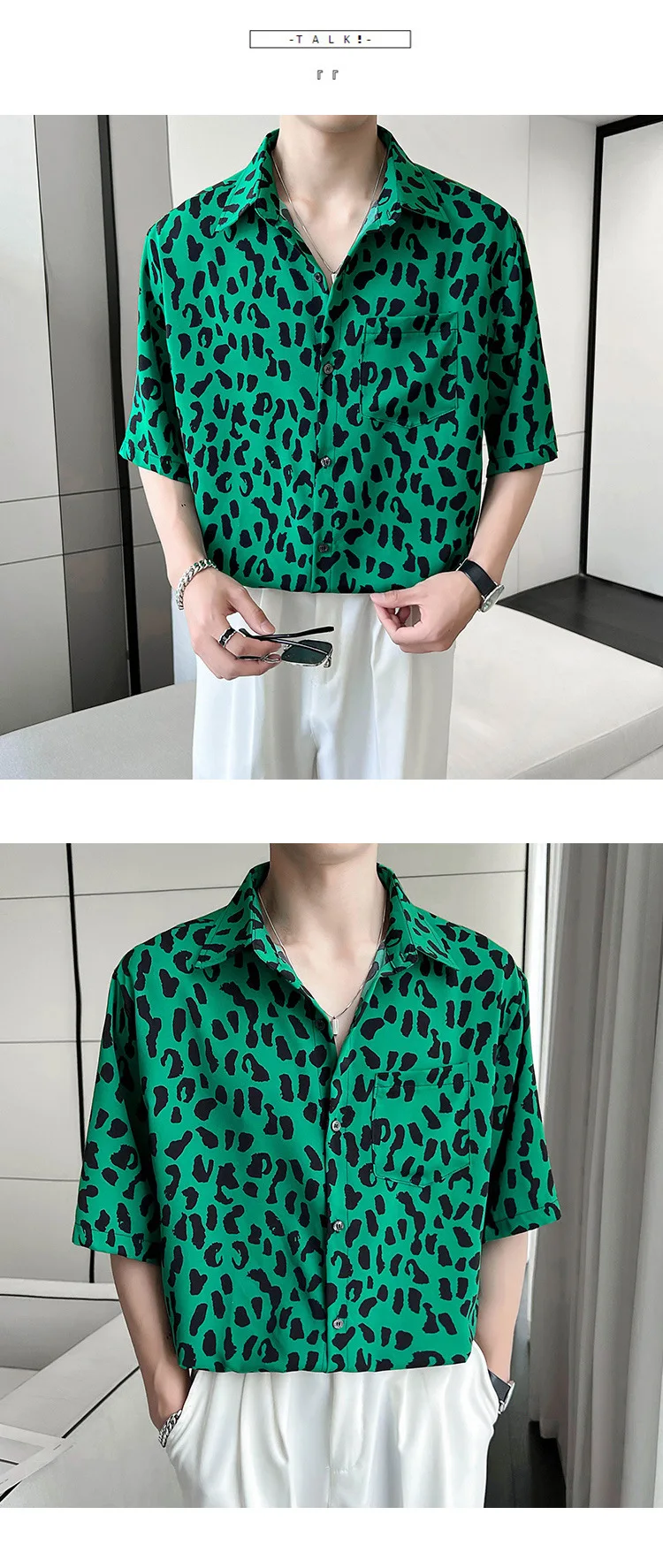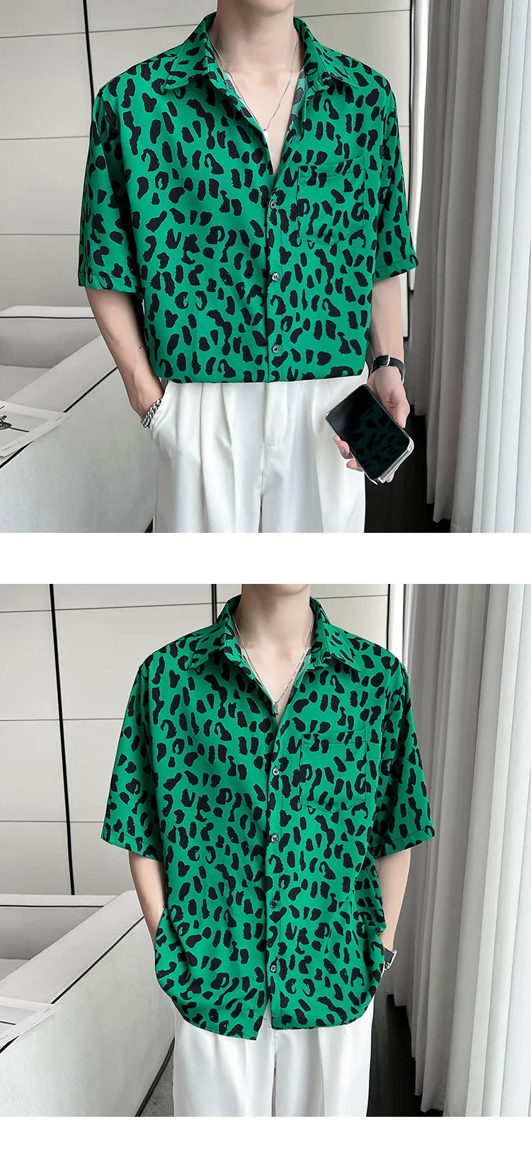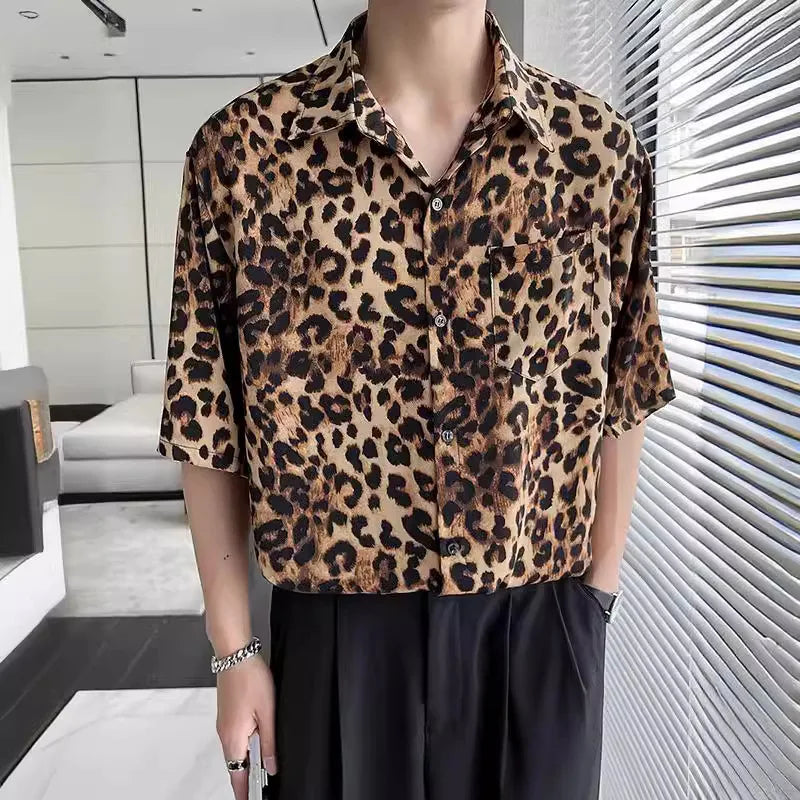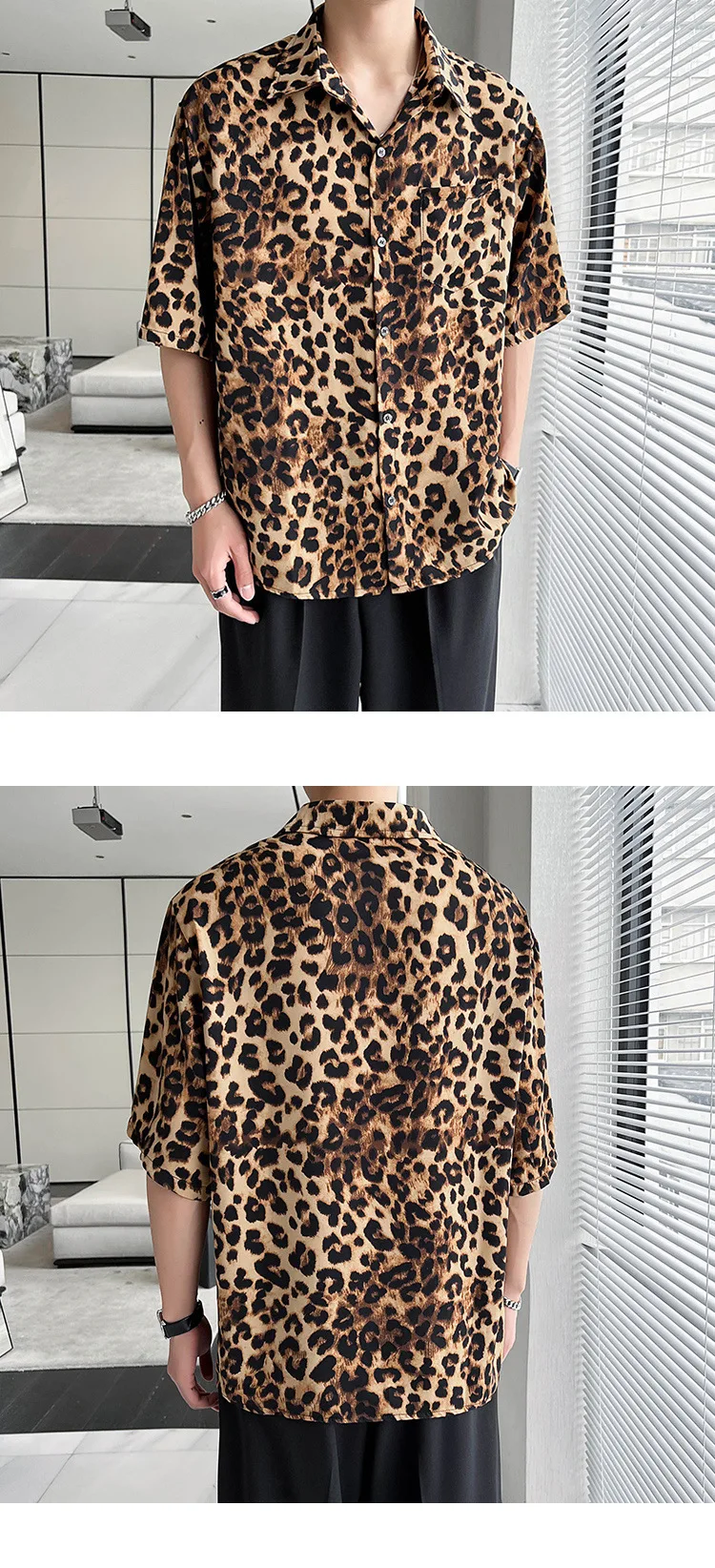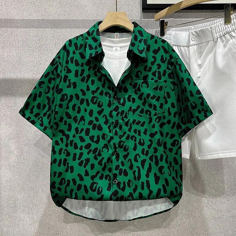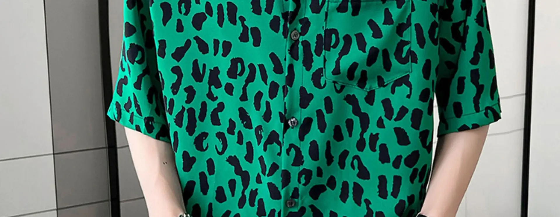 Threebooy New Men's Summer Cool Loose Short Sleeved Top Hawaiian Beach Vacation Leopard Print Flower Shirts For Men