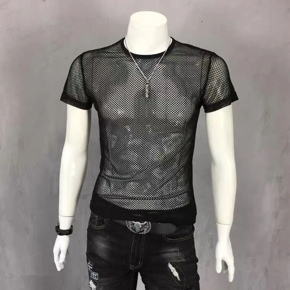 Threebooy New Men's T-shirt Trend Breathable Mesh Hollow Slim Fit Bottoming Sweatshirt Male Fitness Sports Quick-drying Short-sleeved Top