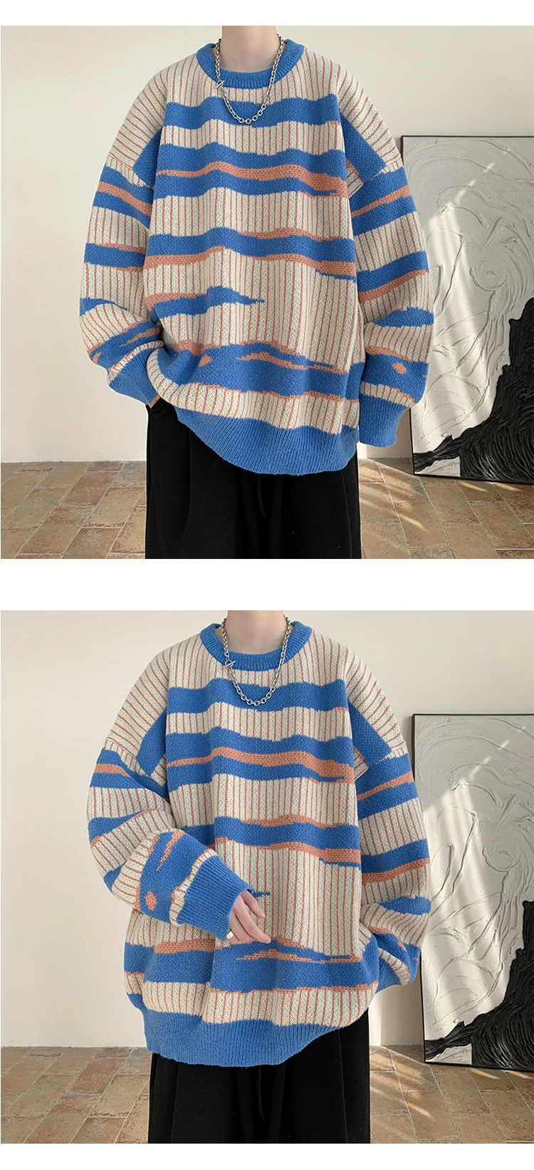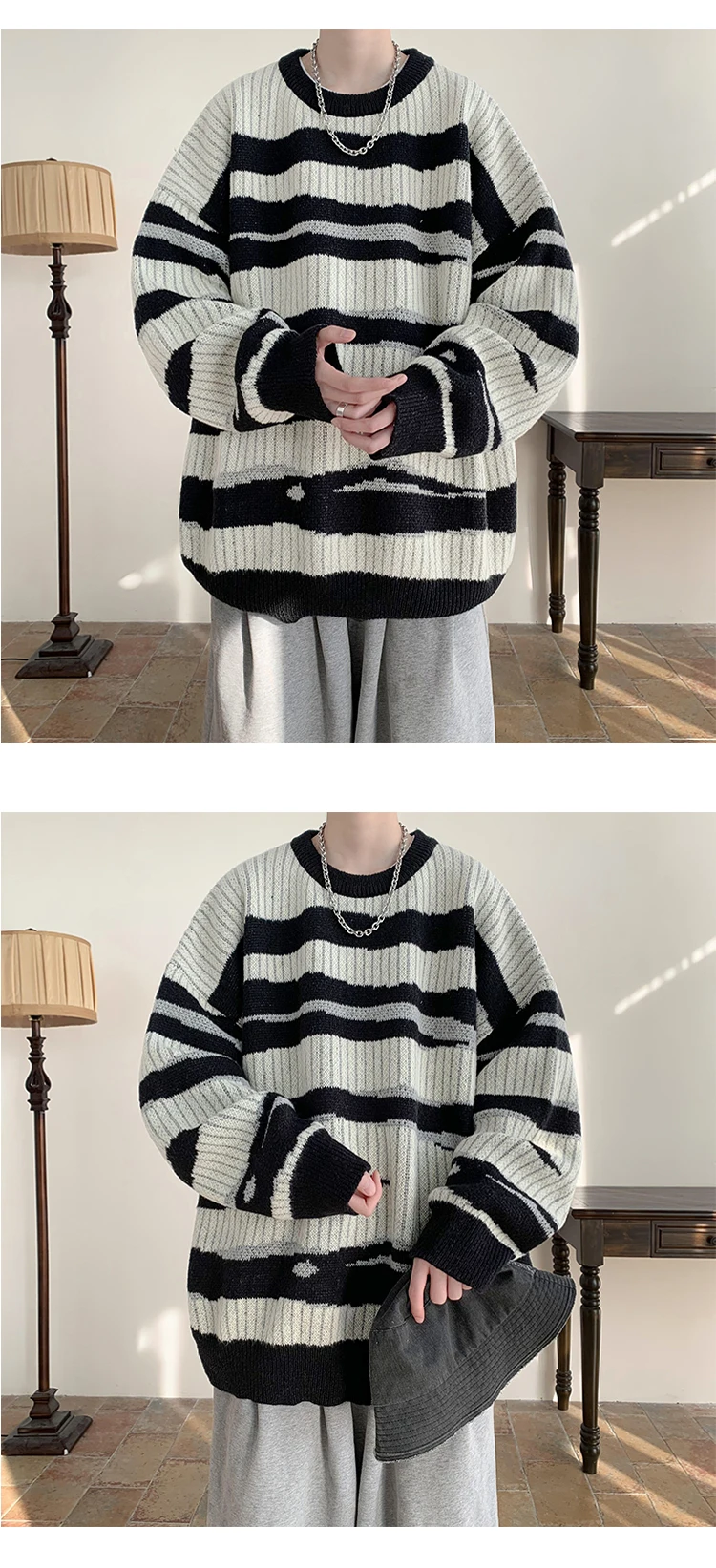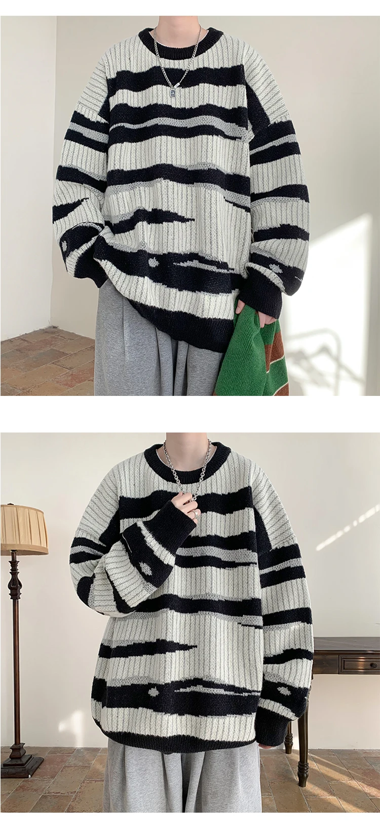 Threebooy New Popular Autumn Winter Chic Pattern Pullover Sweater High Quality Casual Round Neck Knitted Sweater Men's Lazy Pullover