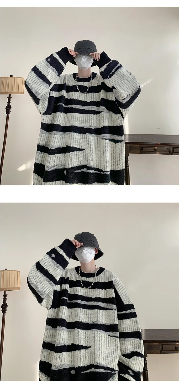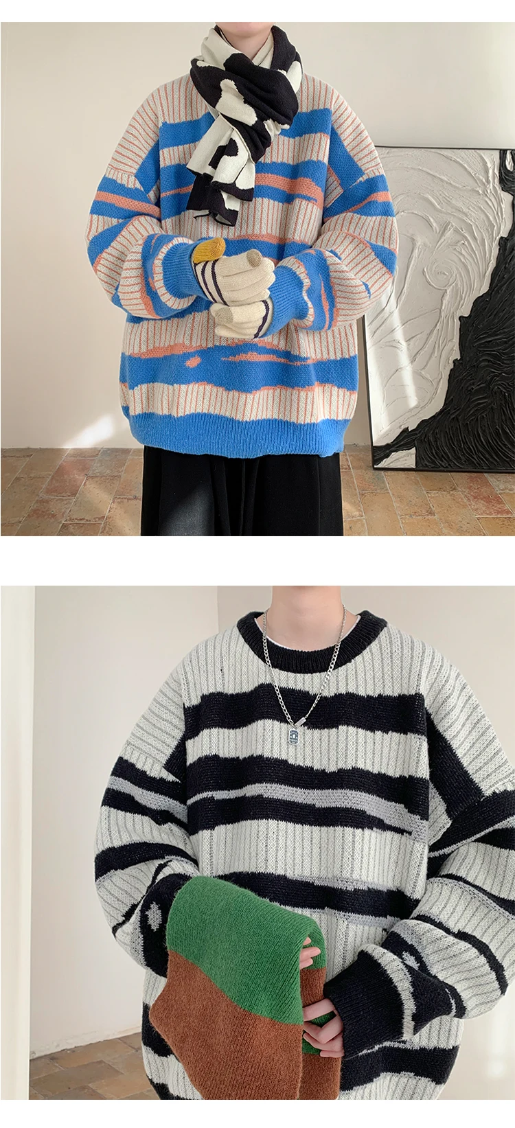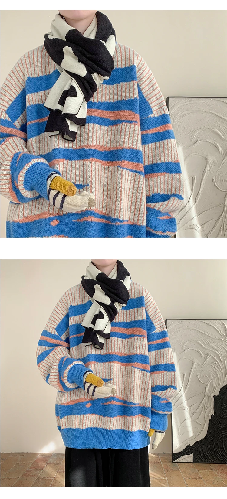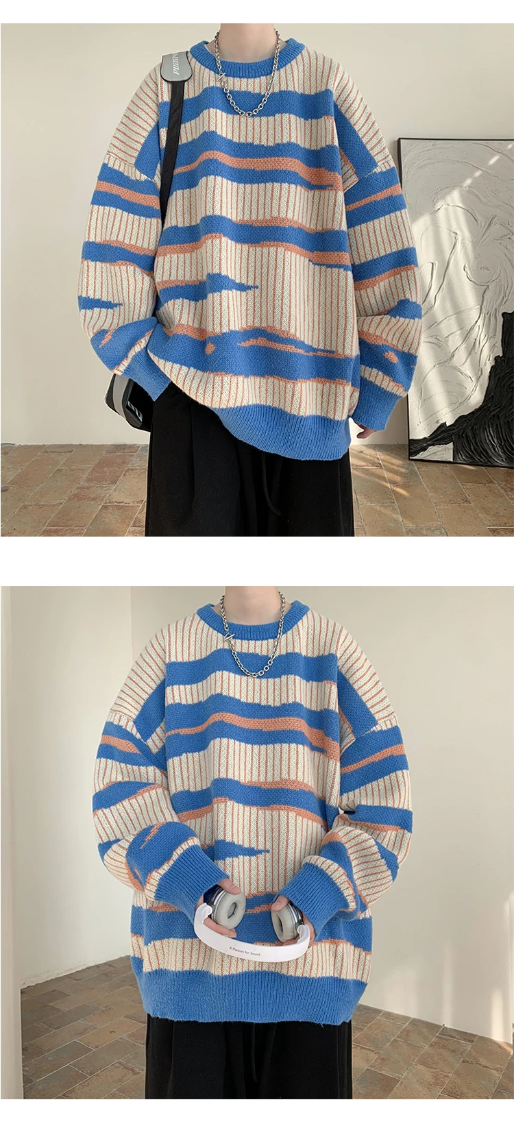 Threebooy New Popular Autumn Winter Chic Pattern Pullover Sweater High Quality Casual Round Neck Knitted Sweater Men's Lazy Pullover