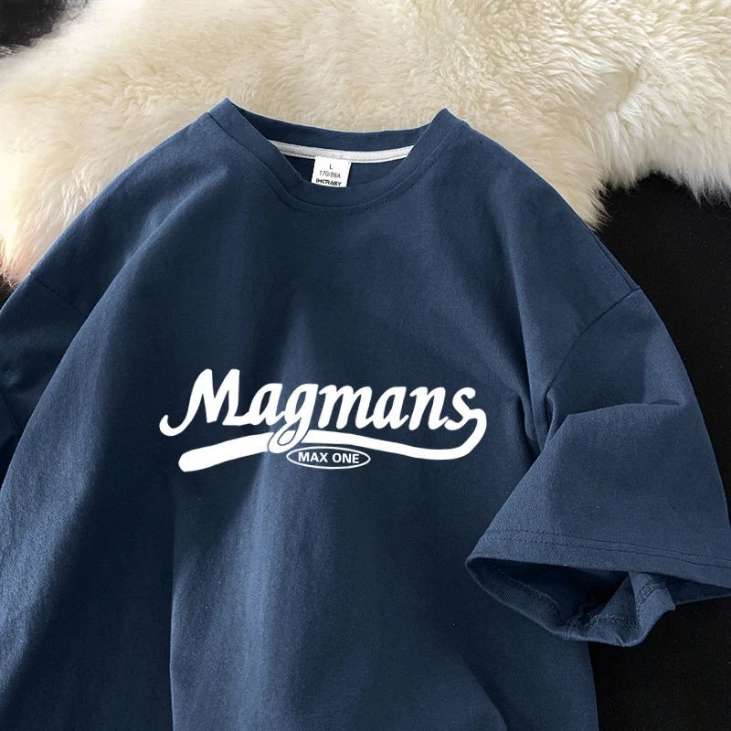 Threebooy New Summer Cotton Short-sleeved Shirt Men Women Loose Versatile Fashion English Printing Trend Round Neck Half-sleeved Aesthetic