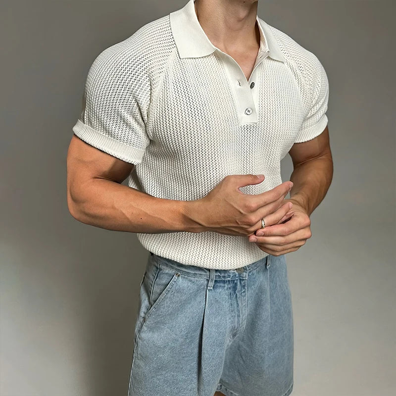 Threebooy New Trend Men Polo Shirt Leisure Vintage High Quality Knit T-shirt American Style Chic Breathable Button Short Sleeve Knitwear