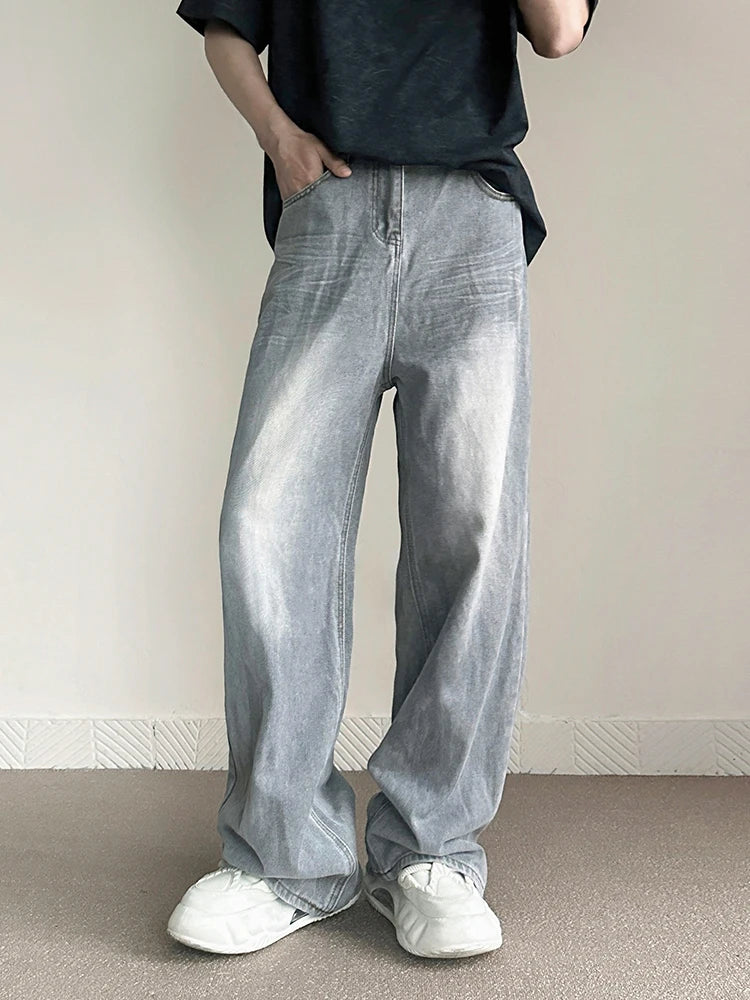 Threebooy New Vintage Gray Baggy Jeans Men Fashion Harajuku Casual Y2k Pants Straight High Street Male Wide Denim Trousers
