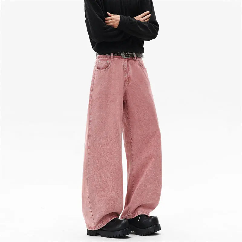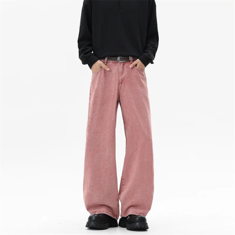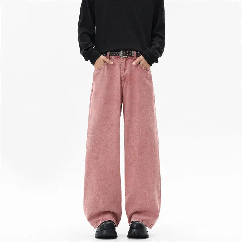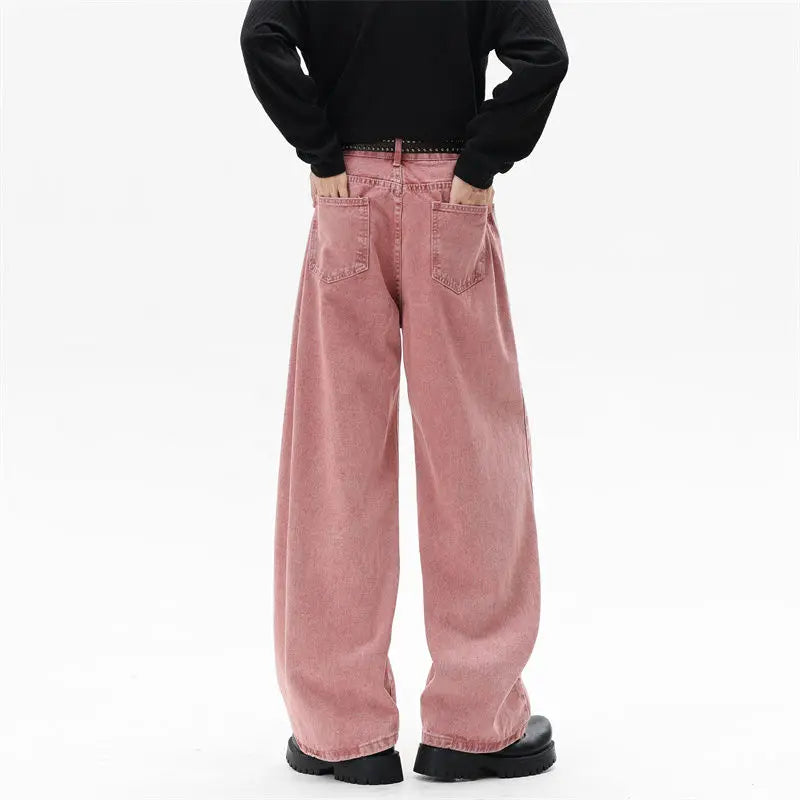 Threebooy Pink Straight Leg Denim Pants Unisex Gender Neutral Jeans Urban Street Style Fashion Trendy Casual Wear Comfortable 2025 New