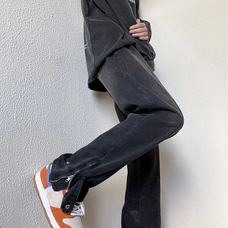 Threebooy Punk Black Flared Bootcut Jeans for Men Male Cowboy Pants Trousers Soft Oversize Washed Winter Casual 2024 Trend Loose Wide Leg