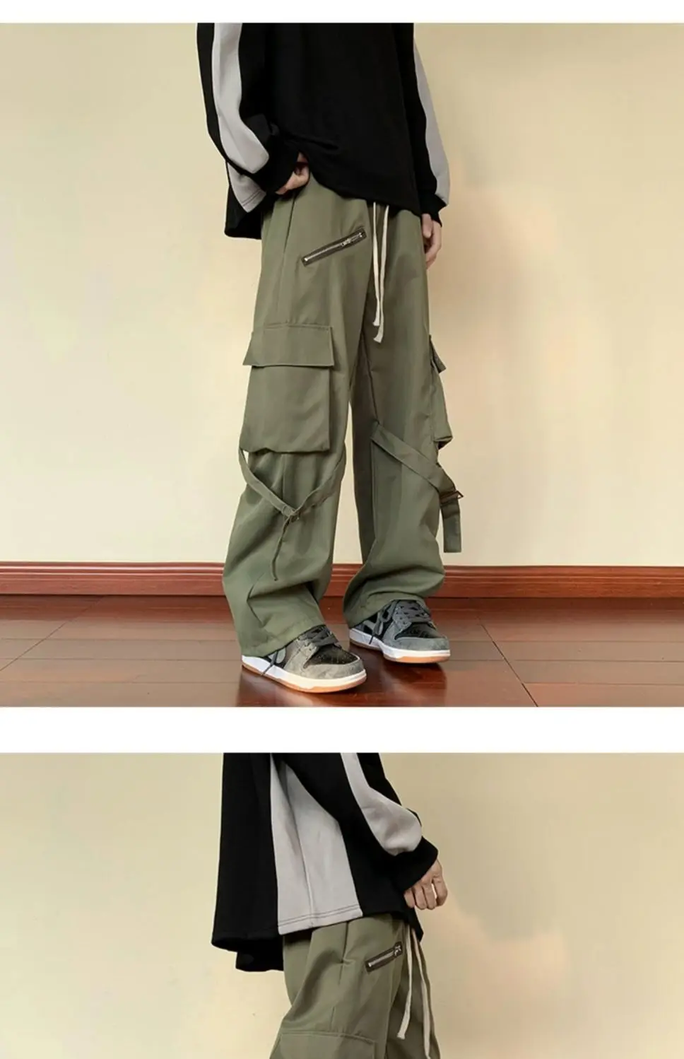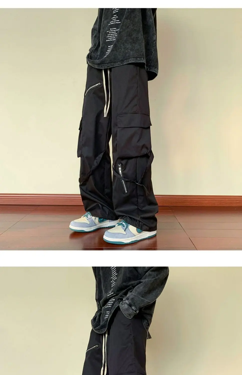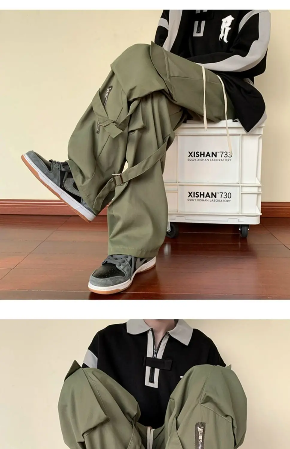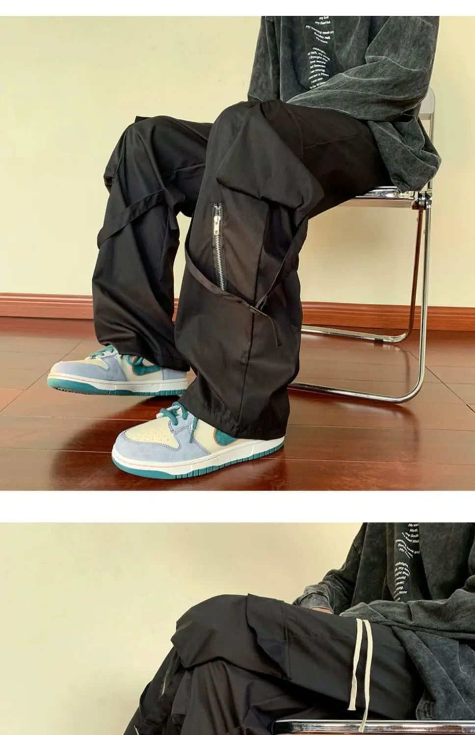 Threebooy Retro Loose Straight Leg Work Pants American Trend Men's and Women's Loose Wide Leg Pants High Street Casual Design Pants