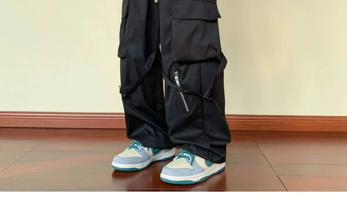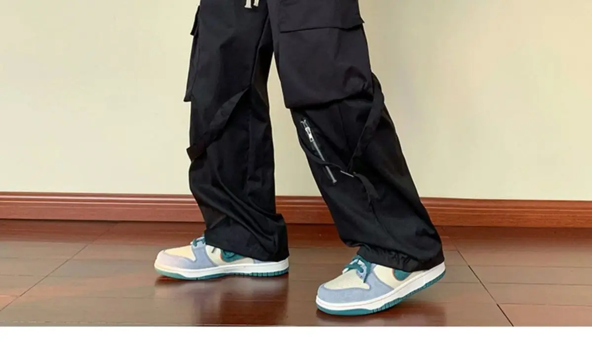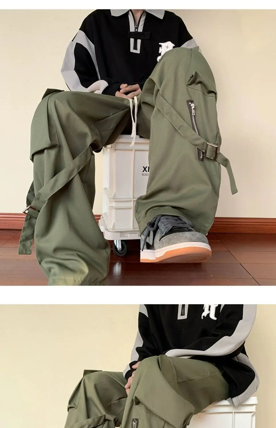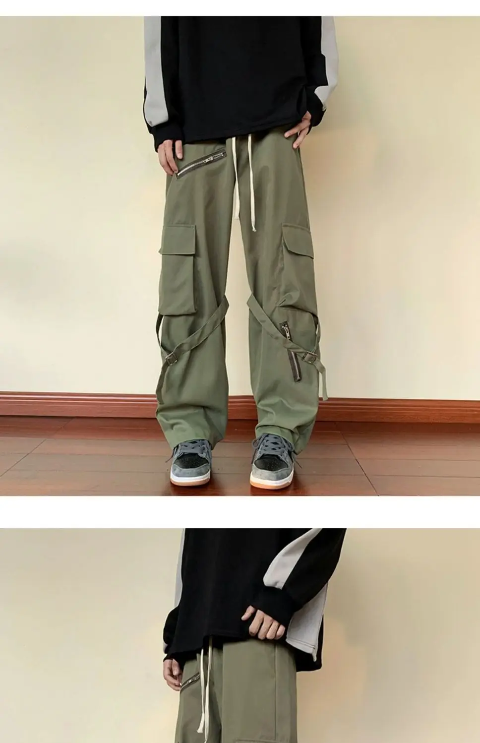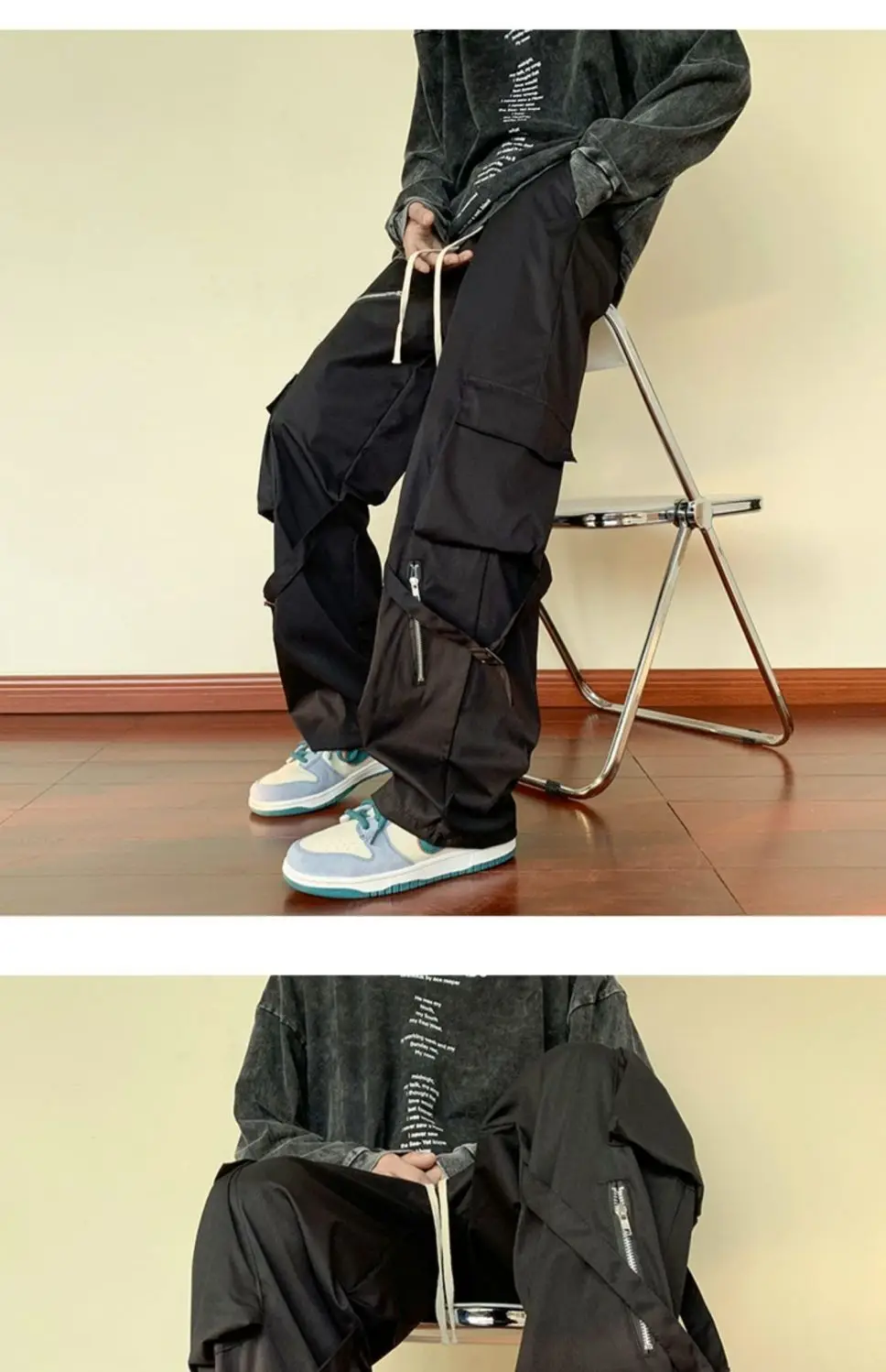 Threebooy Retro Loose Straight Leg Work Pants American Trend Men's and Women's Loose Wide Leg Pants High Street Casual Design Pants