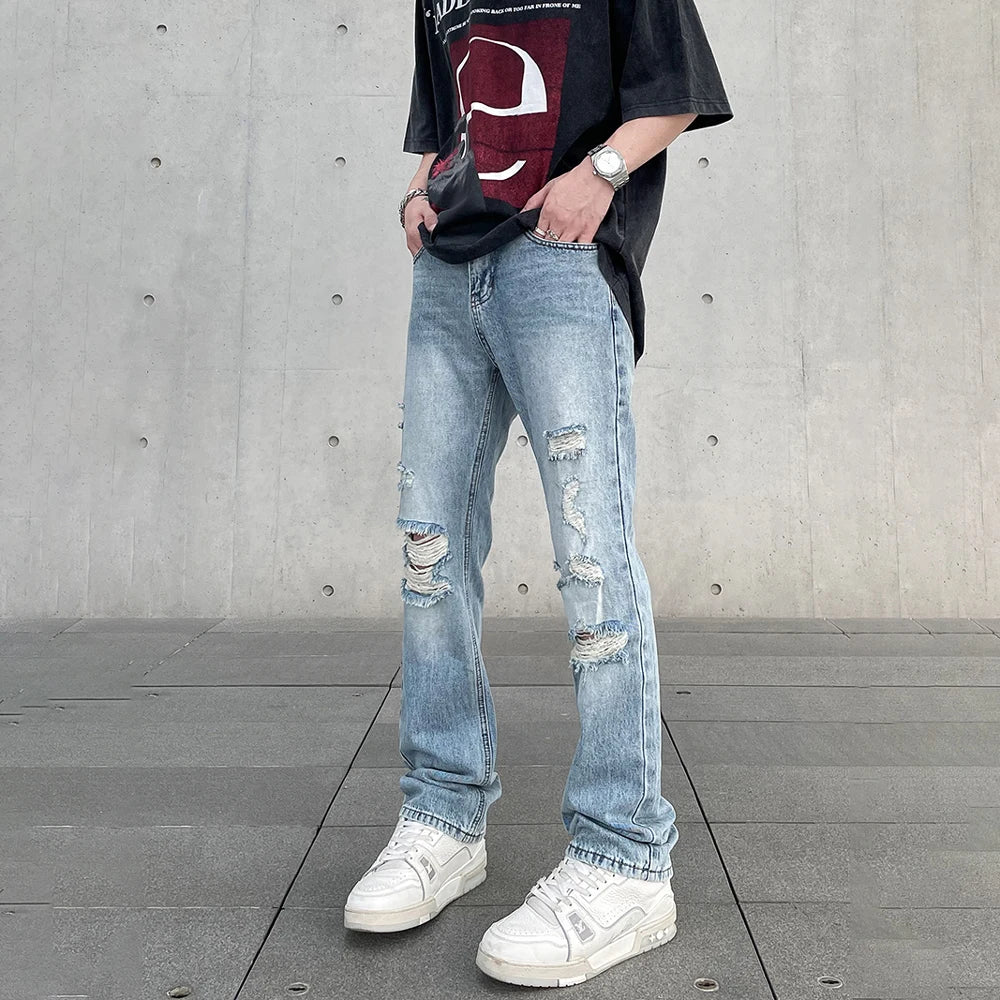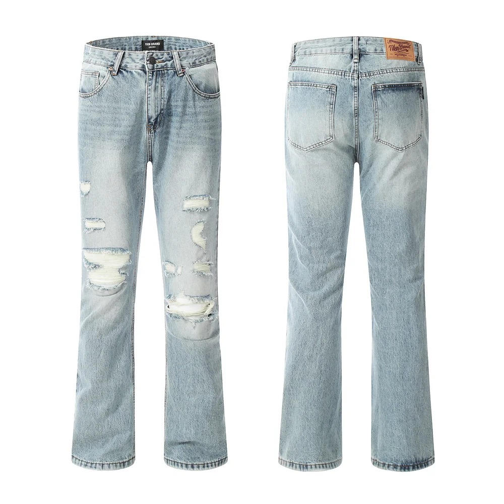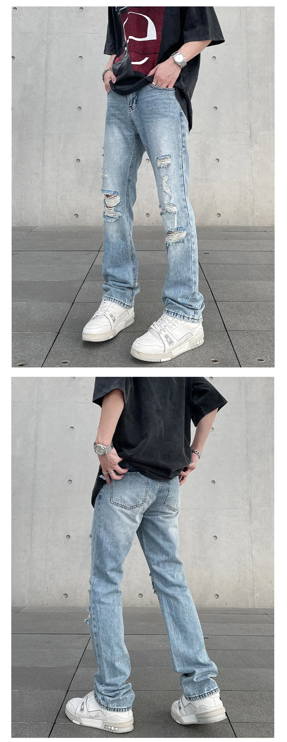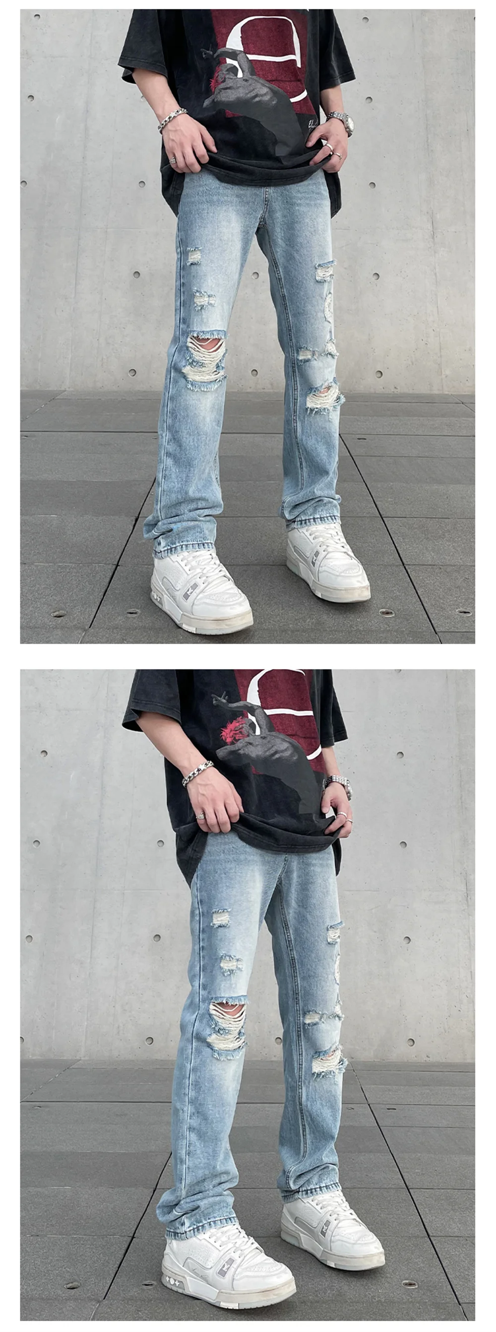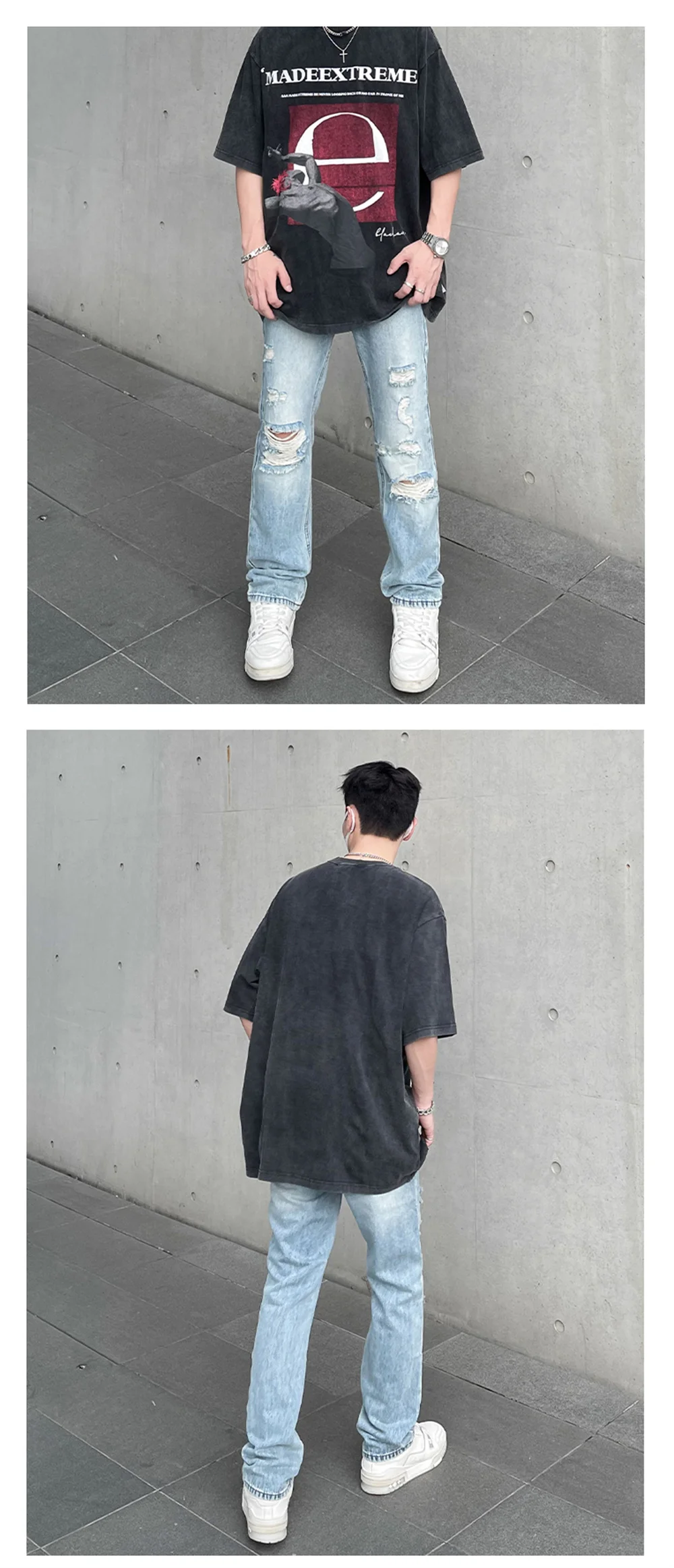 Threebooy Ripped Jeans for Men Y2k Street Skinny Vaqueros Pantalones Hombre Streetwear Autumn Winter Slim Trousers Original Denim Pants