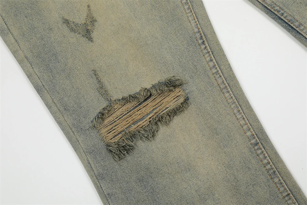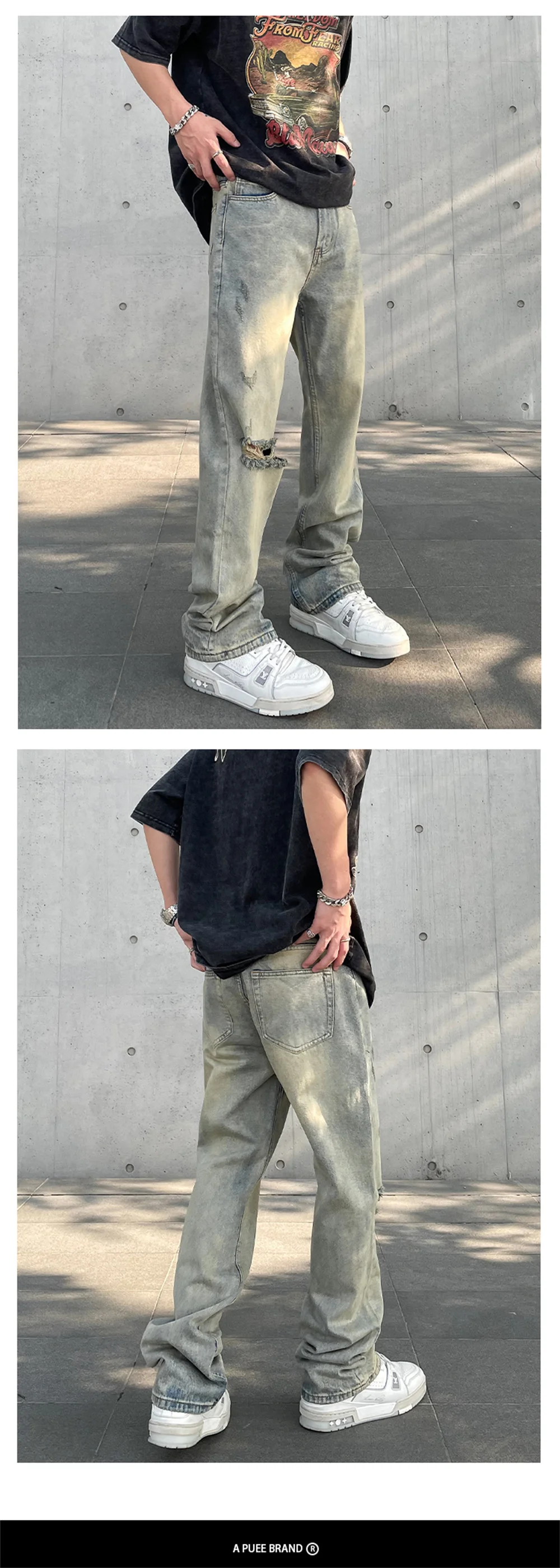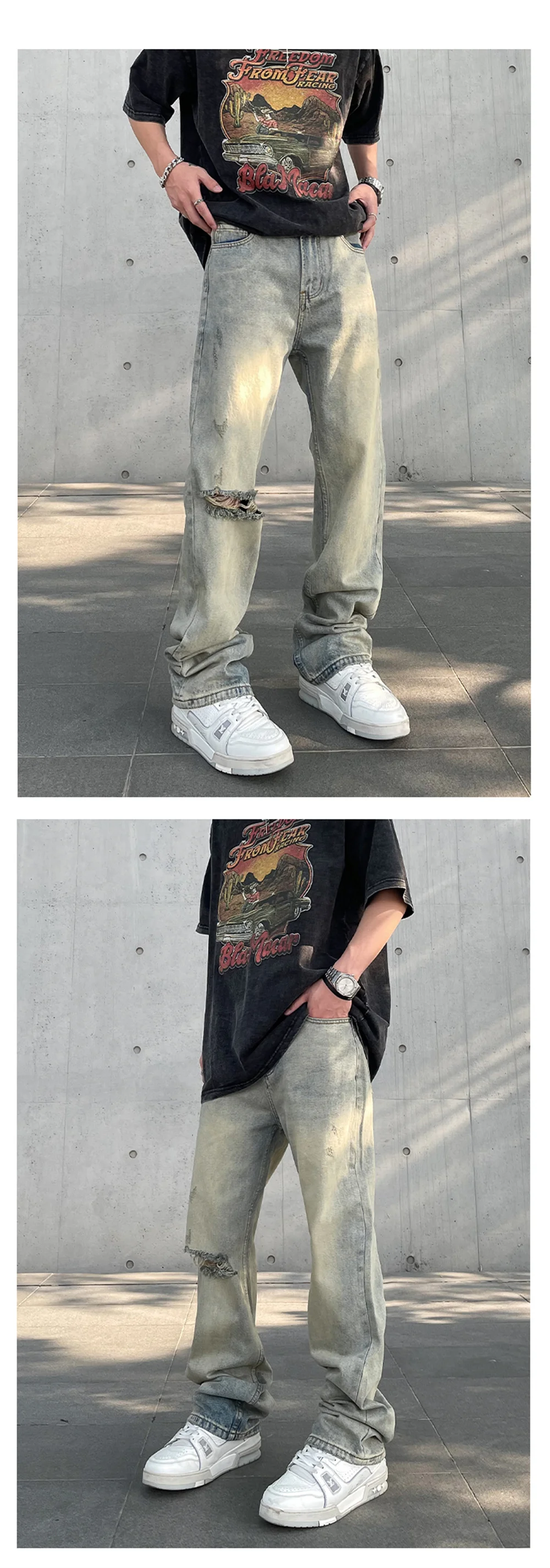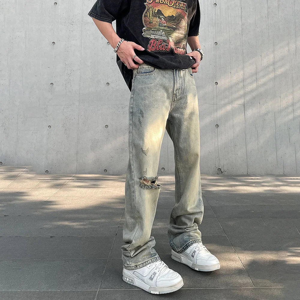 Threebooy Ripped Jeans Men Y2k Streetwear Straight-leg Hombre Pantalones Summer Casual Loose Vaqueros Trousers Vintage Street Denim Pants