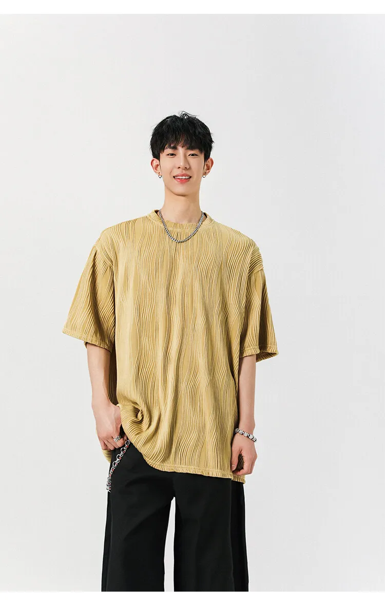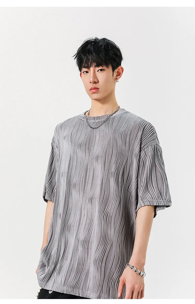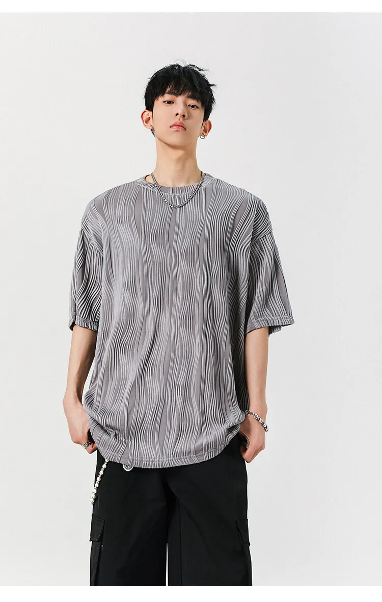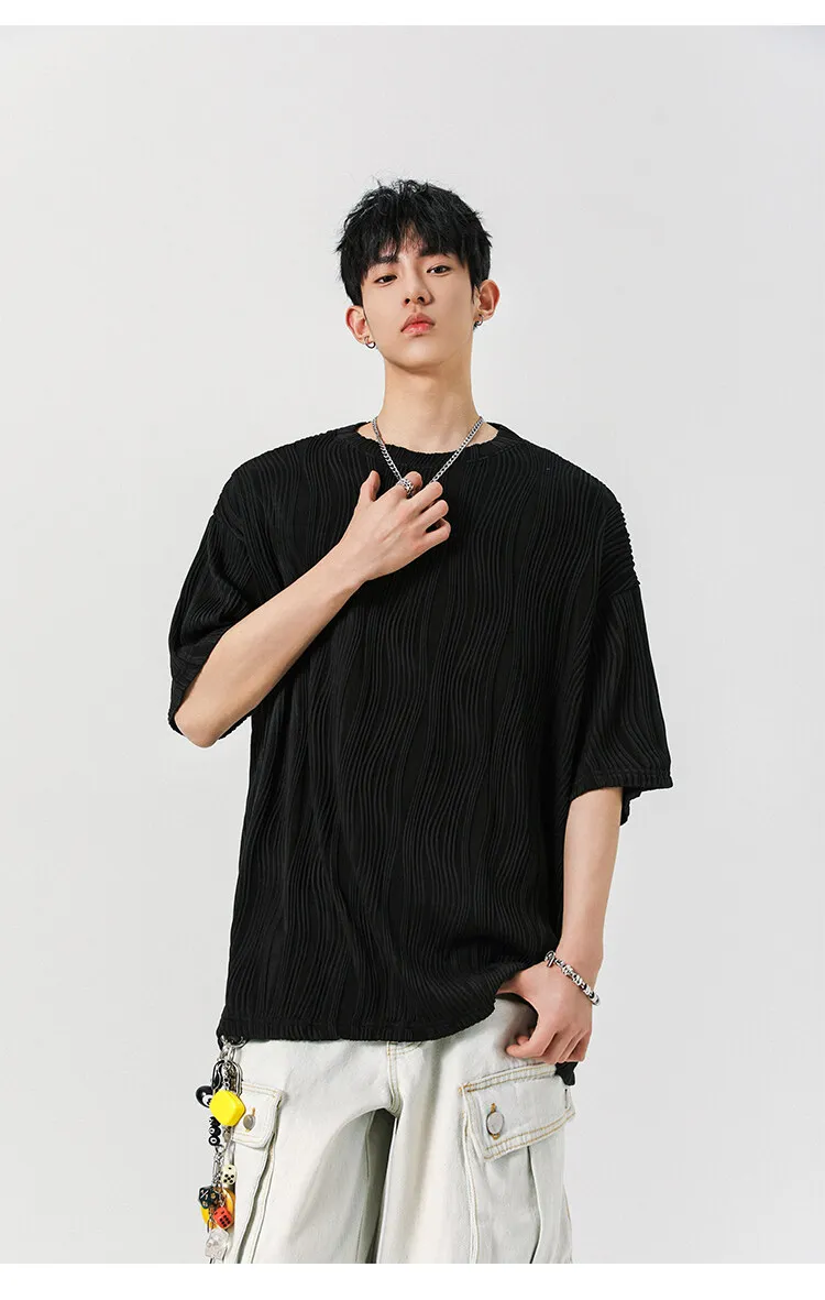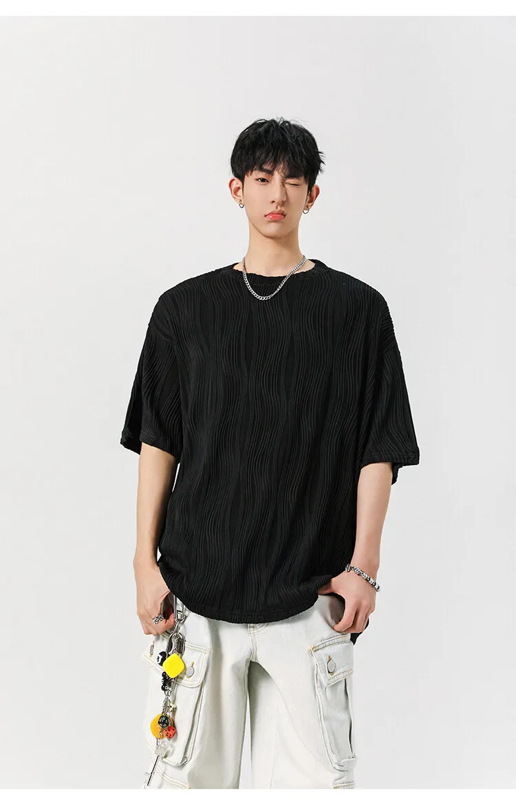 Threebooy Round Neck Ice Silk Pleated T-Shirt Men's Quick Drying Breathable Casual T Shirt Leisure Sport T-shirt Men Plus Size 8XL-M