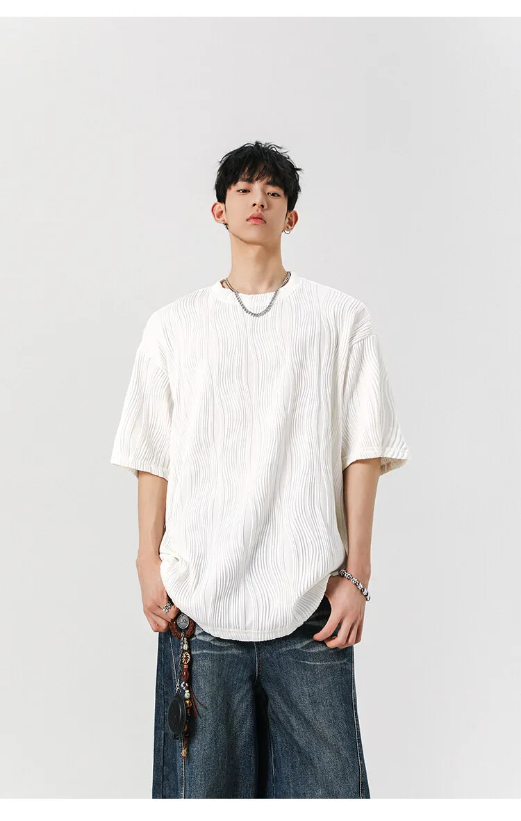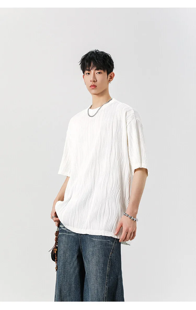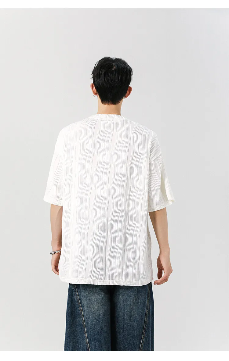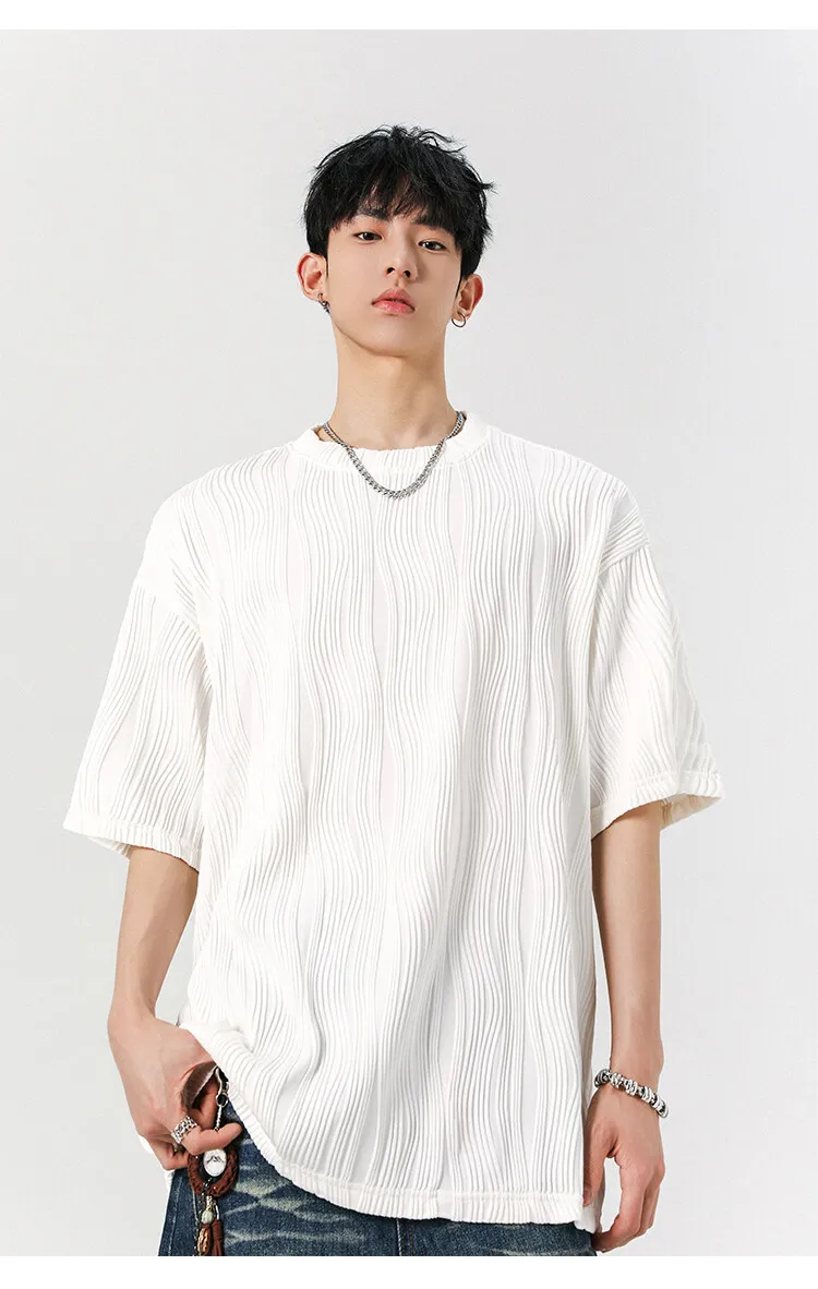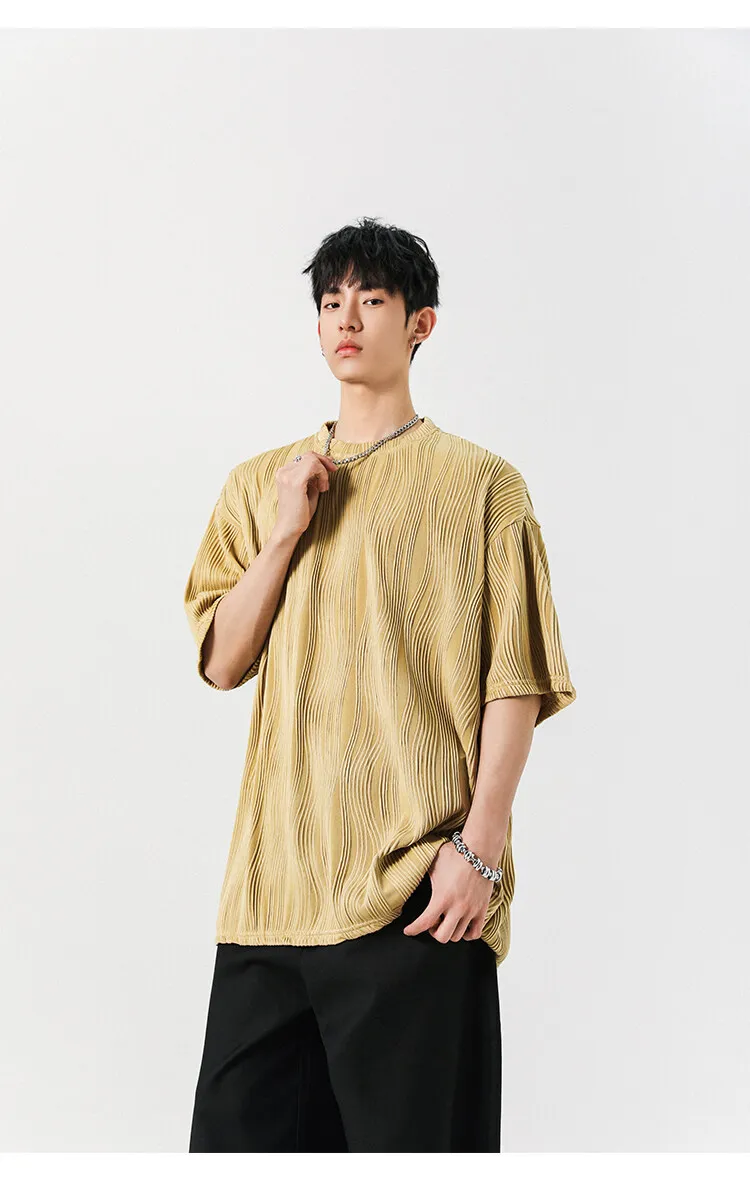 Threebooy Round Neck Ice Silk Pleated T-Shirt Men's Quick Drying Breathable Casual T Shirt Leisure Sport T-shirt Men Plus Size 8XL-M