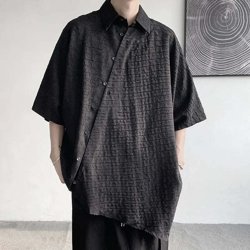 Threebooy Shirts Men Floral Japanese Style Fashion Loose Pleated Vibe All-match High Street Youthful Cool Designed Vintage surplice