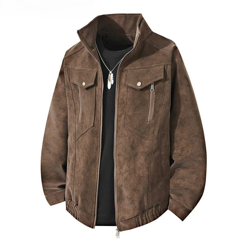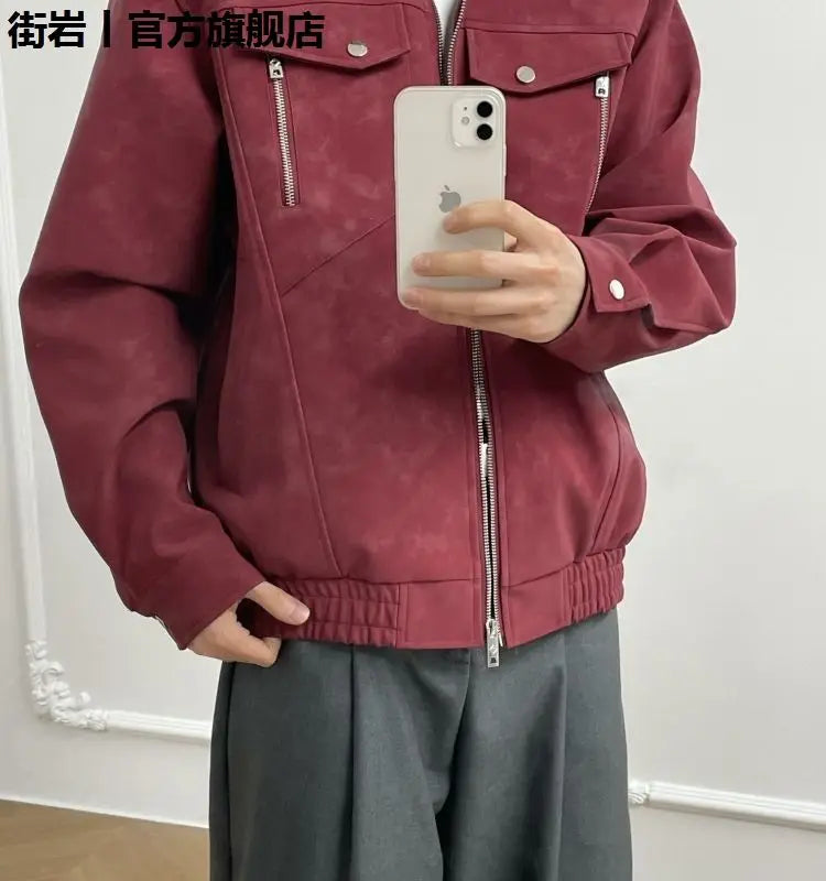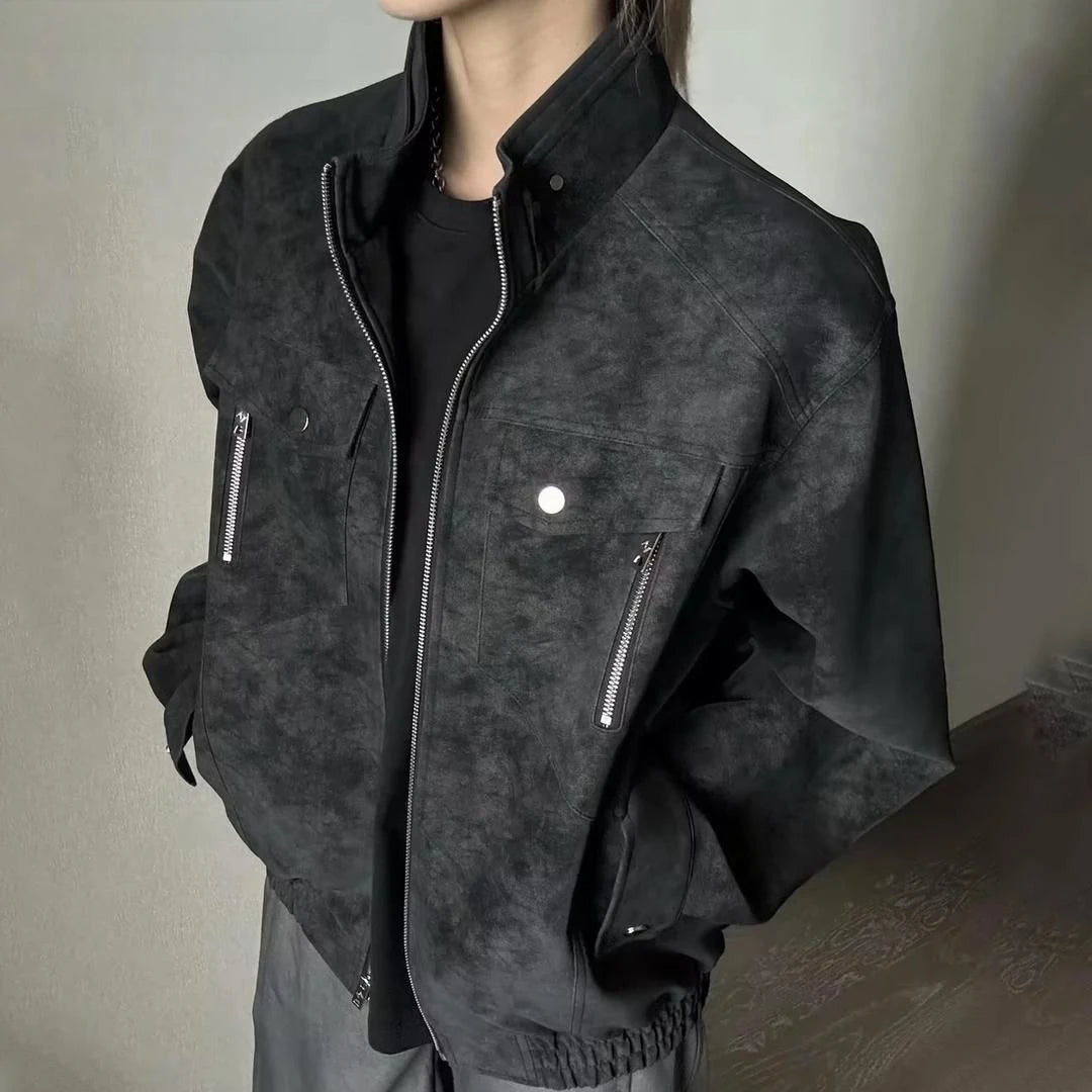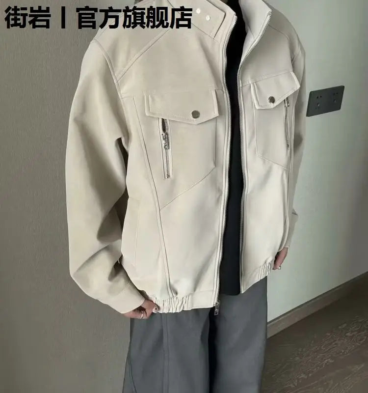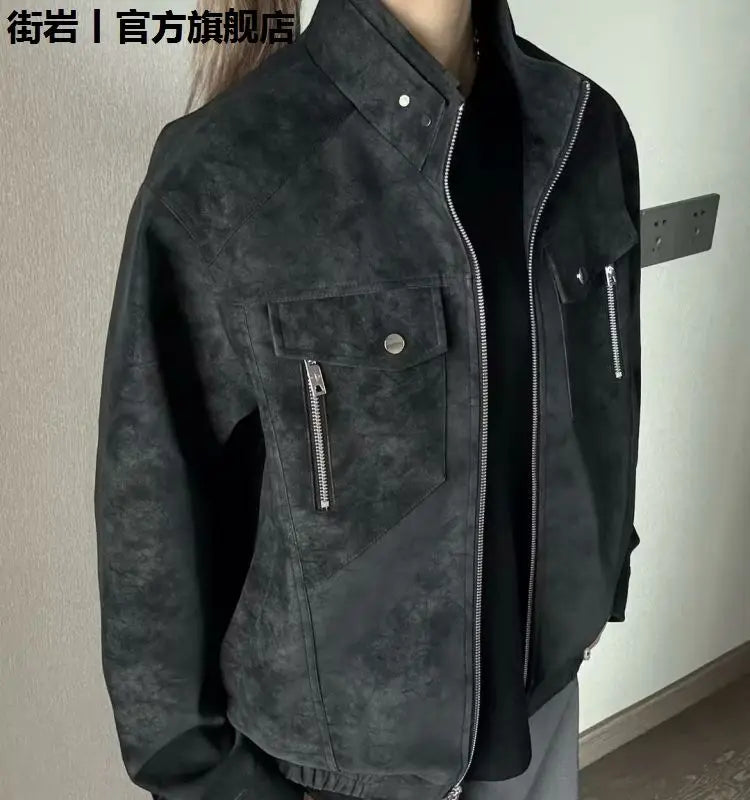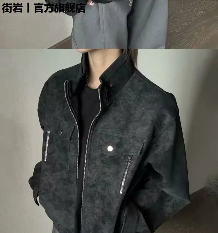 Threebooy Short Spring Stand Collar Loose Sleeve Top American High-end Neutral Versatile PU Leather Jacket Fashion Trendy Design Jacket