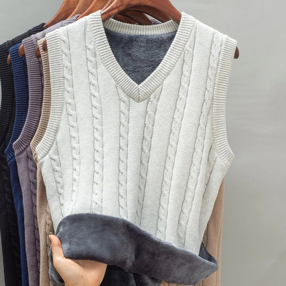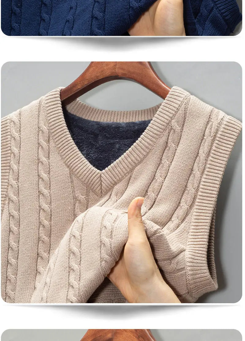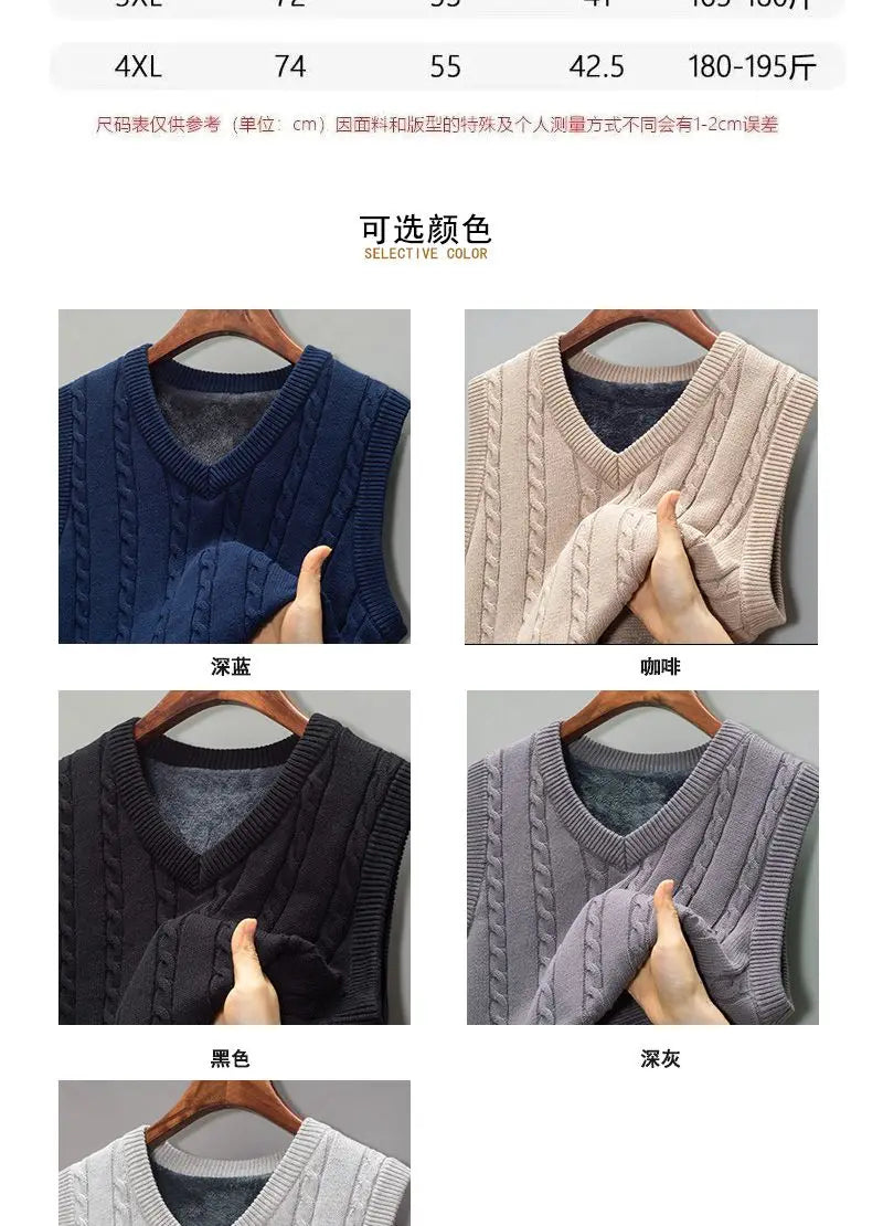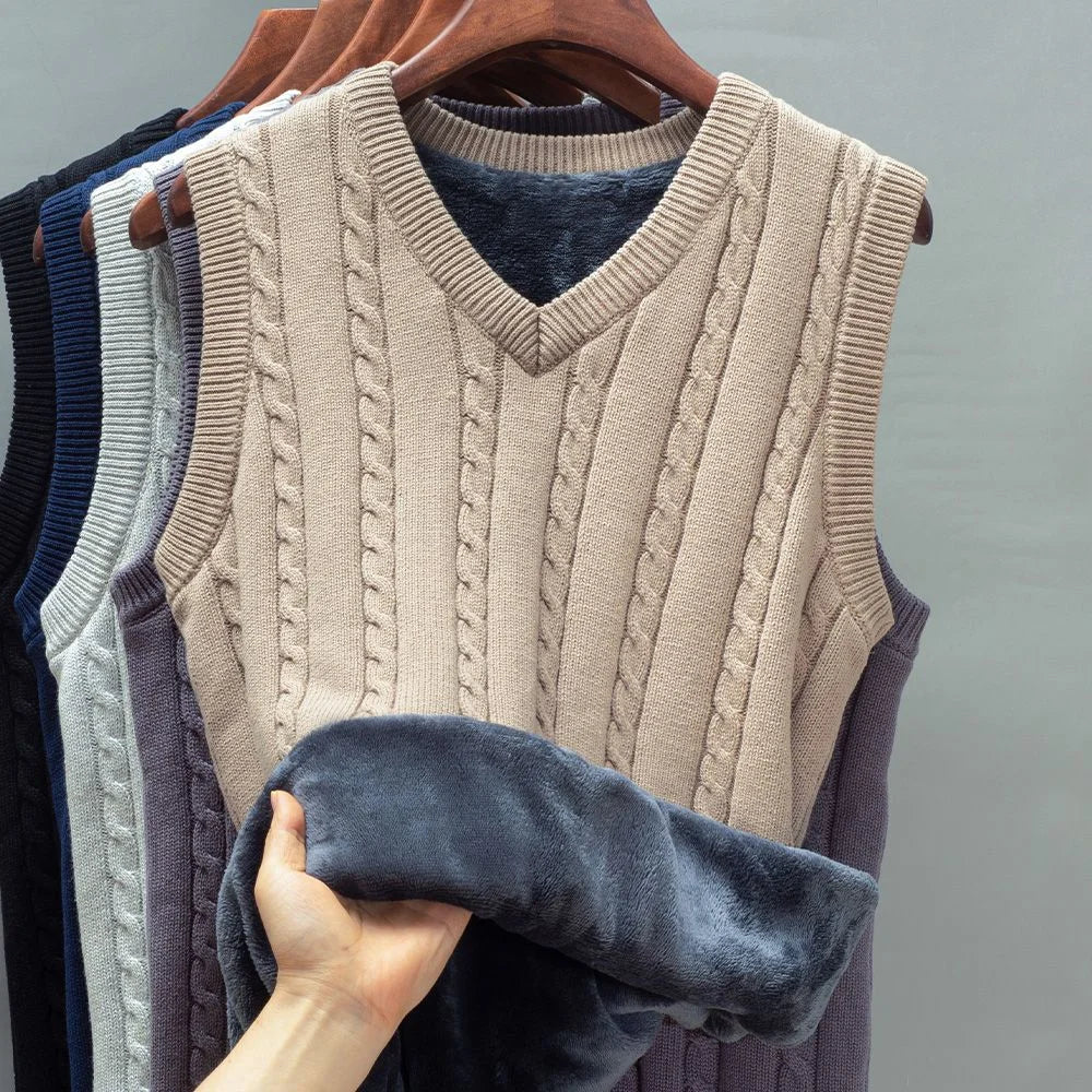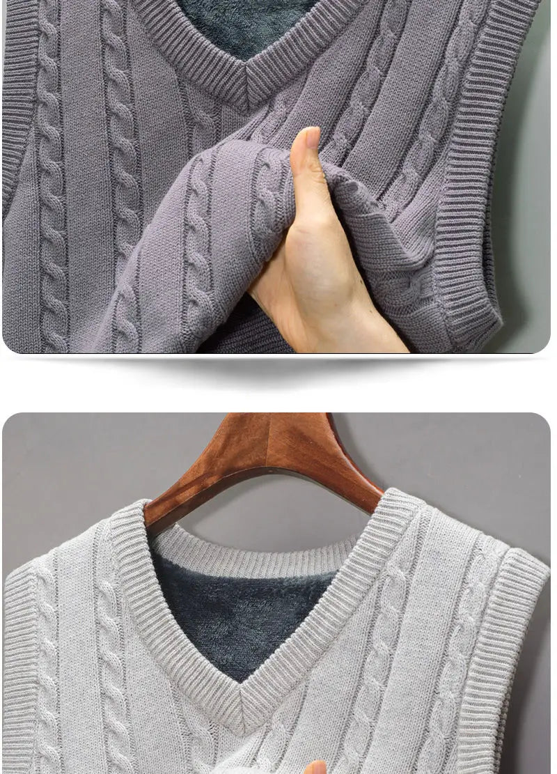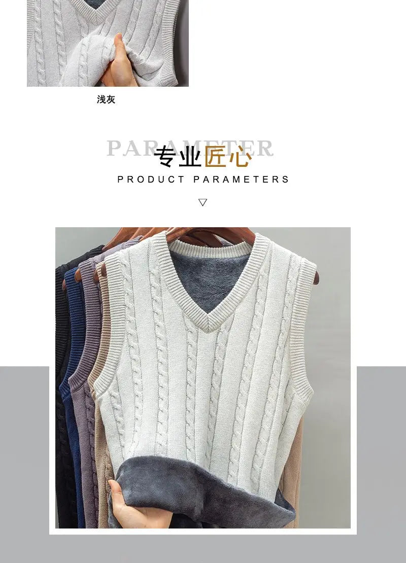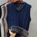 Threebooy Simple Vintage Padded Vest Warm Sweater Vest Sleeveless Knitted Wool Vest Autumn Winter Thickened Plus Fleece Waistcoat
