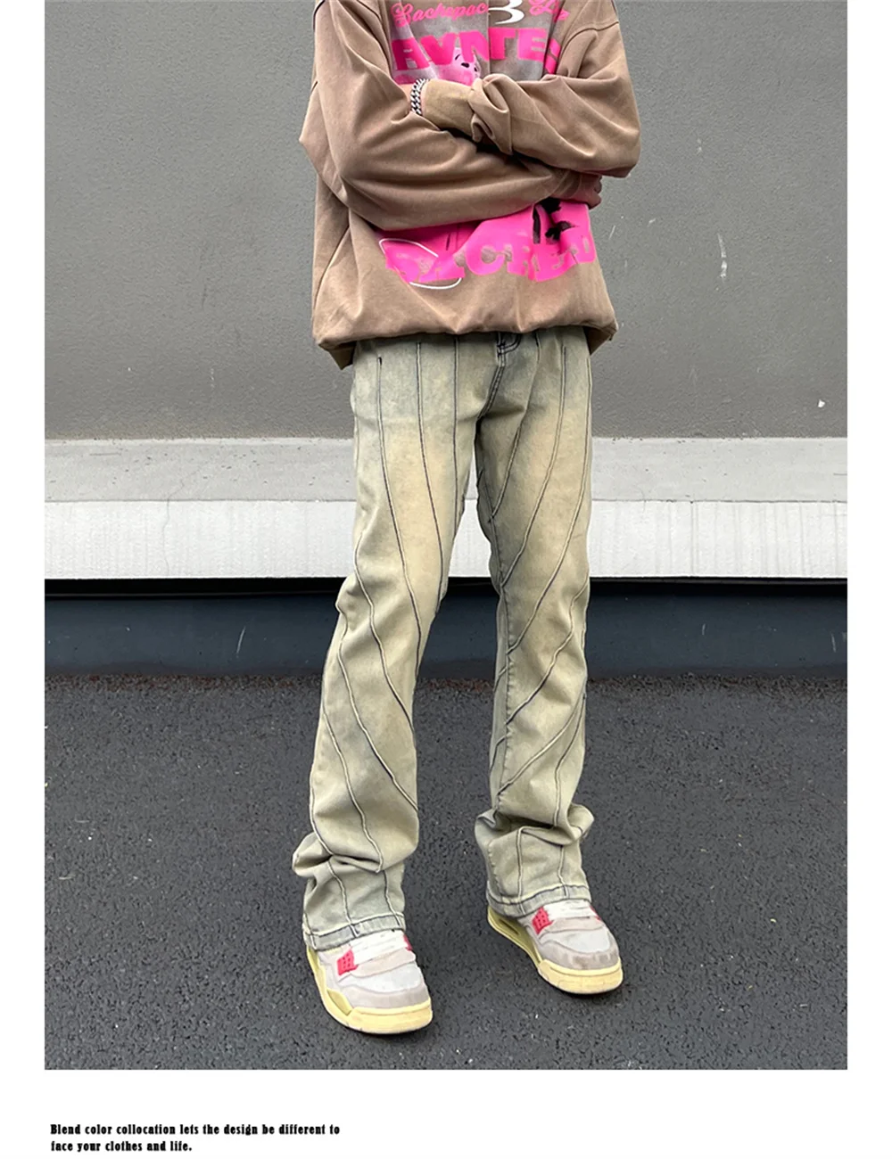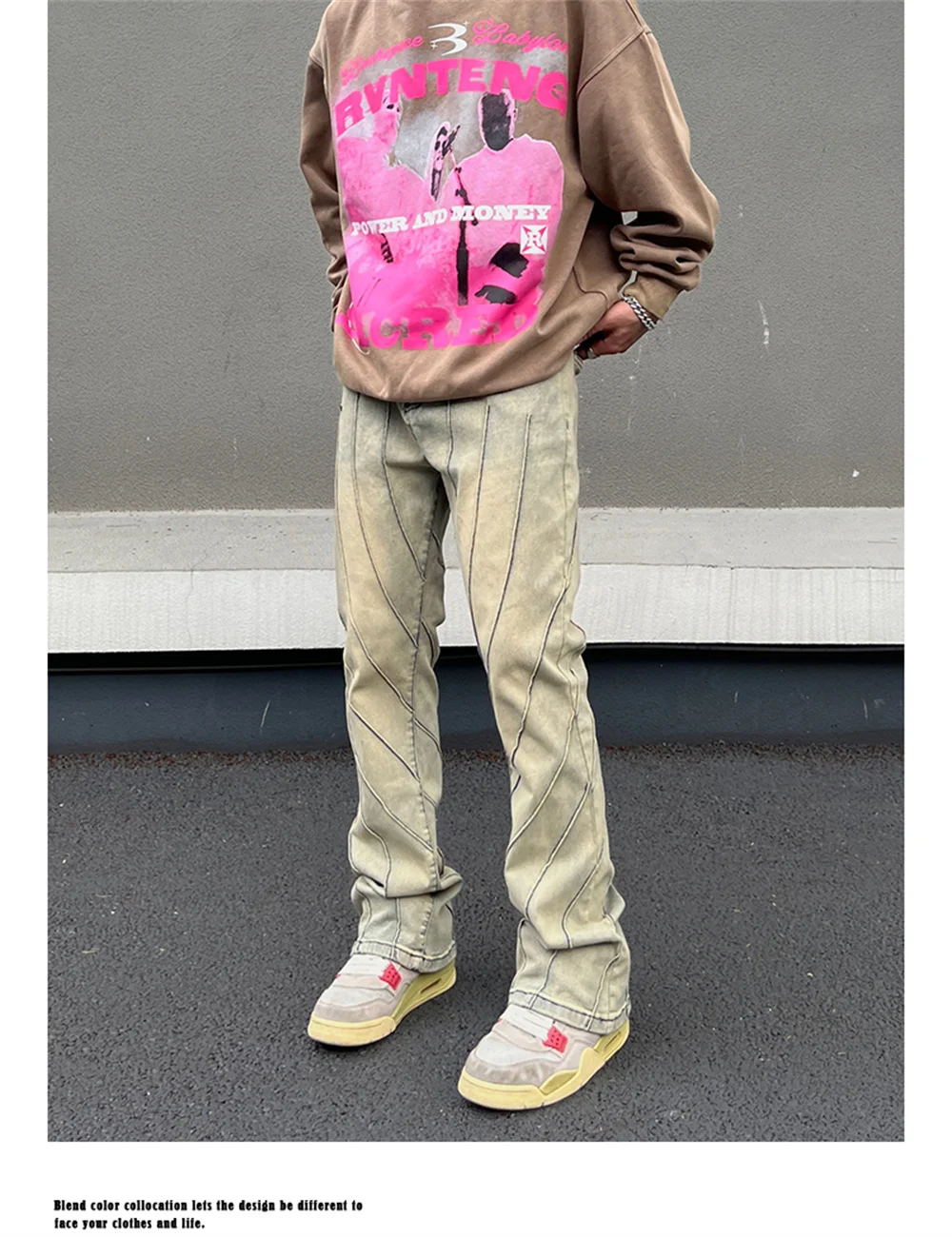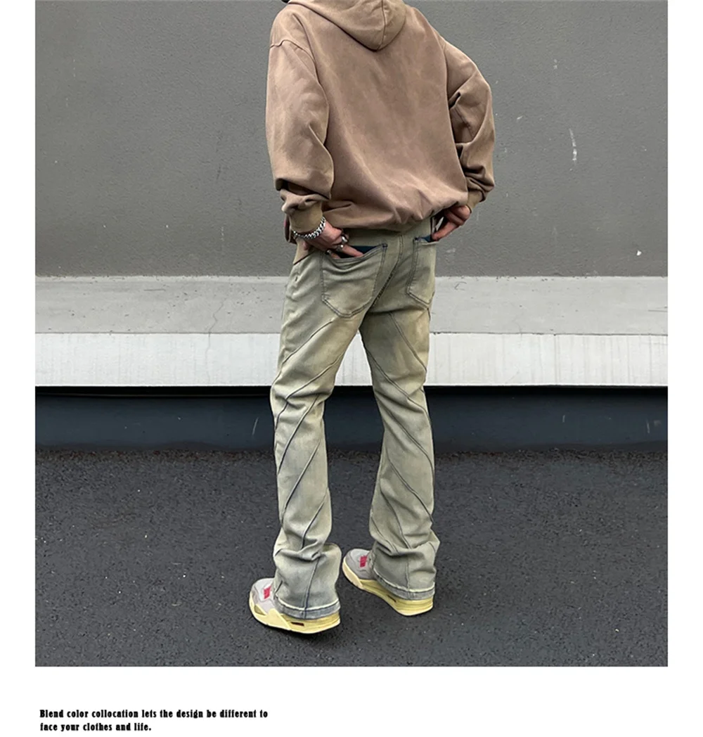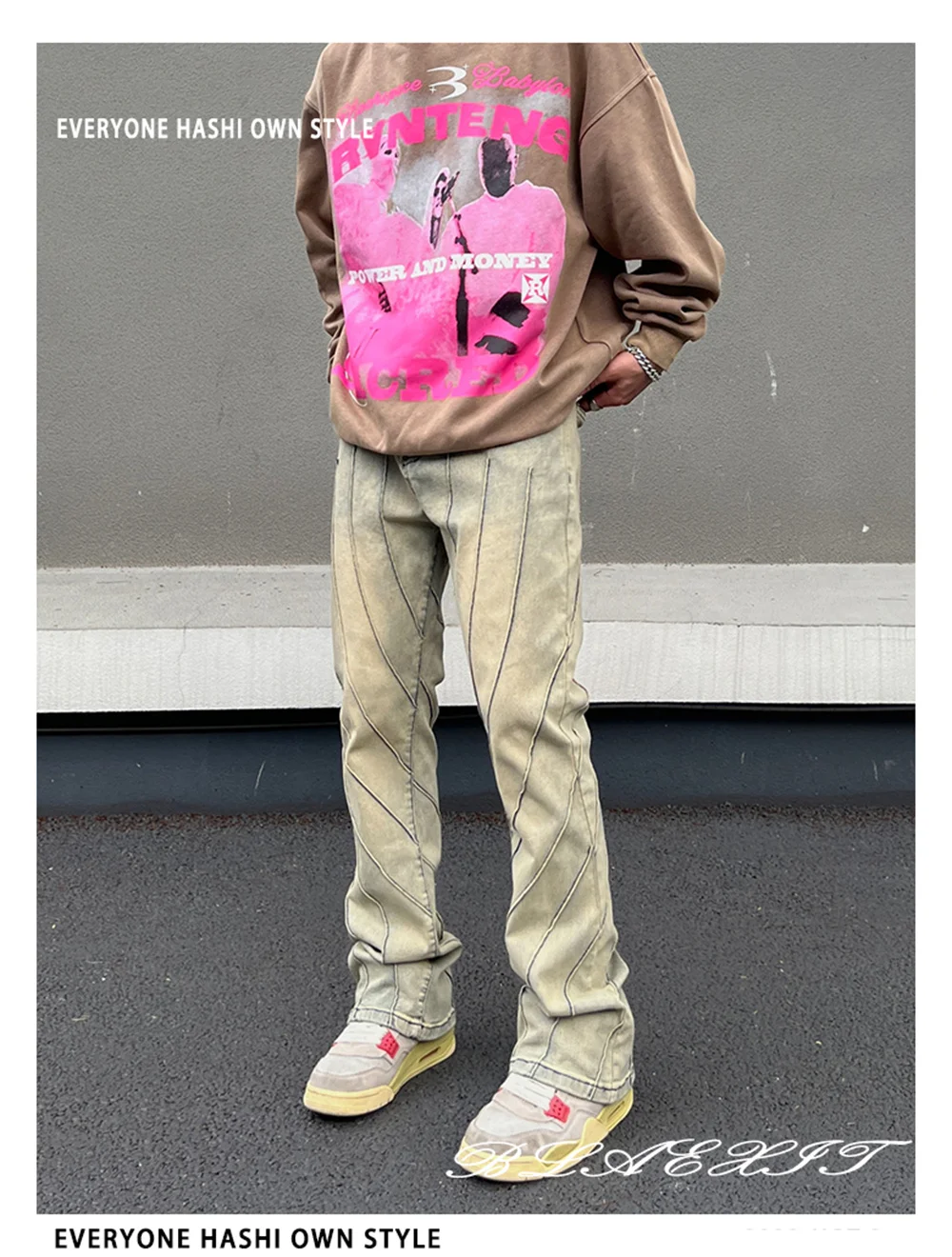 Threebooy Slim Jeans for Men Street Fashion Y2k Denim Pants Autumn Fit Streetwear Vintage Pleated Distressed Winter Skinny Flared Trousers