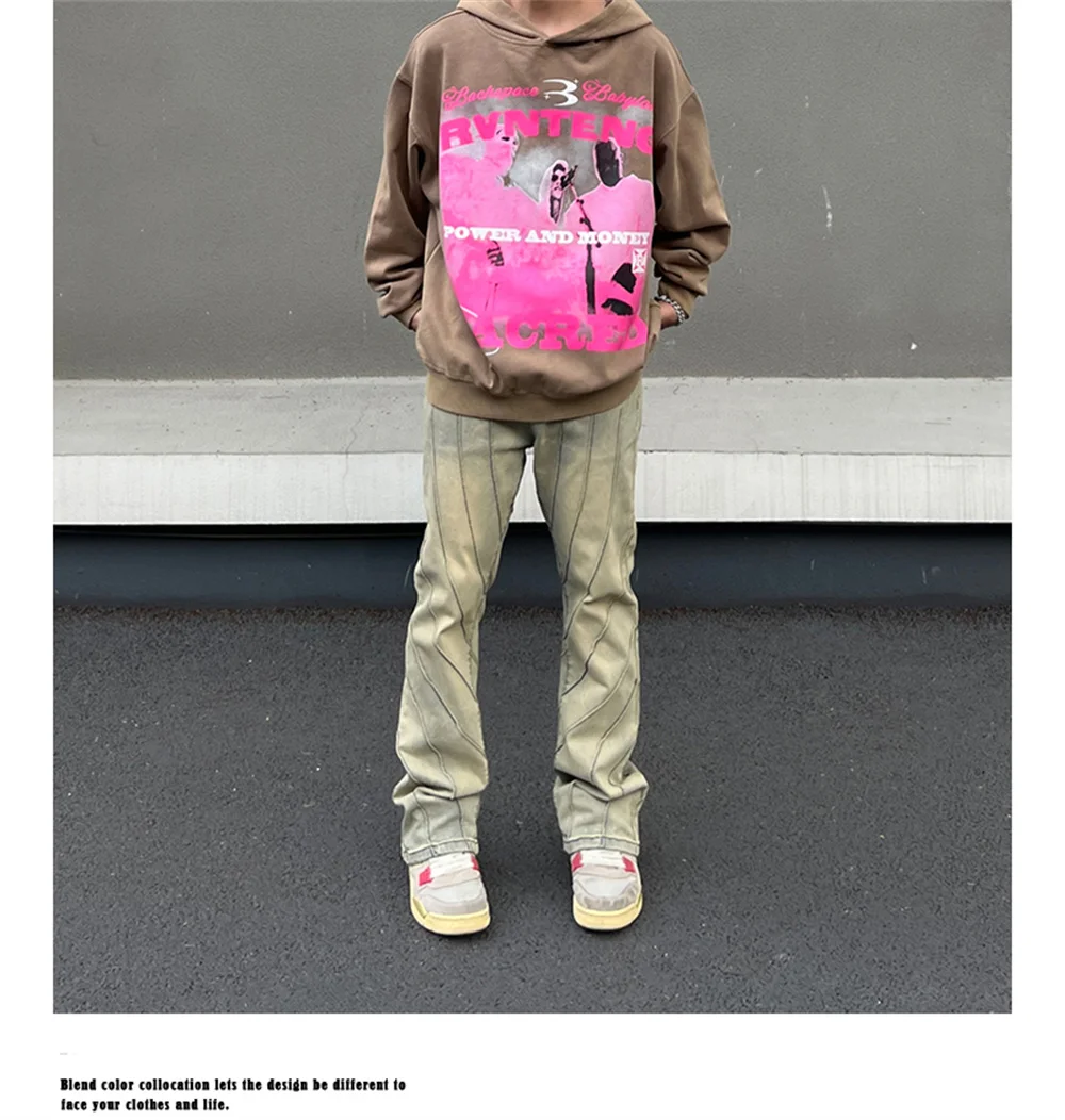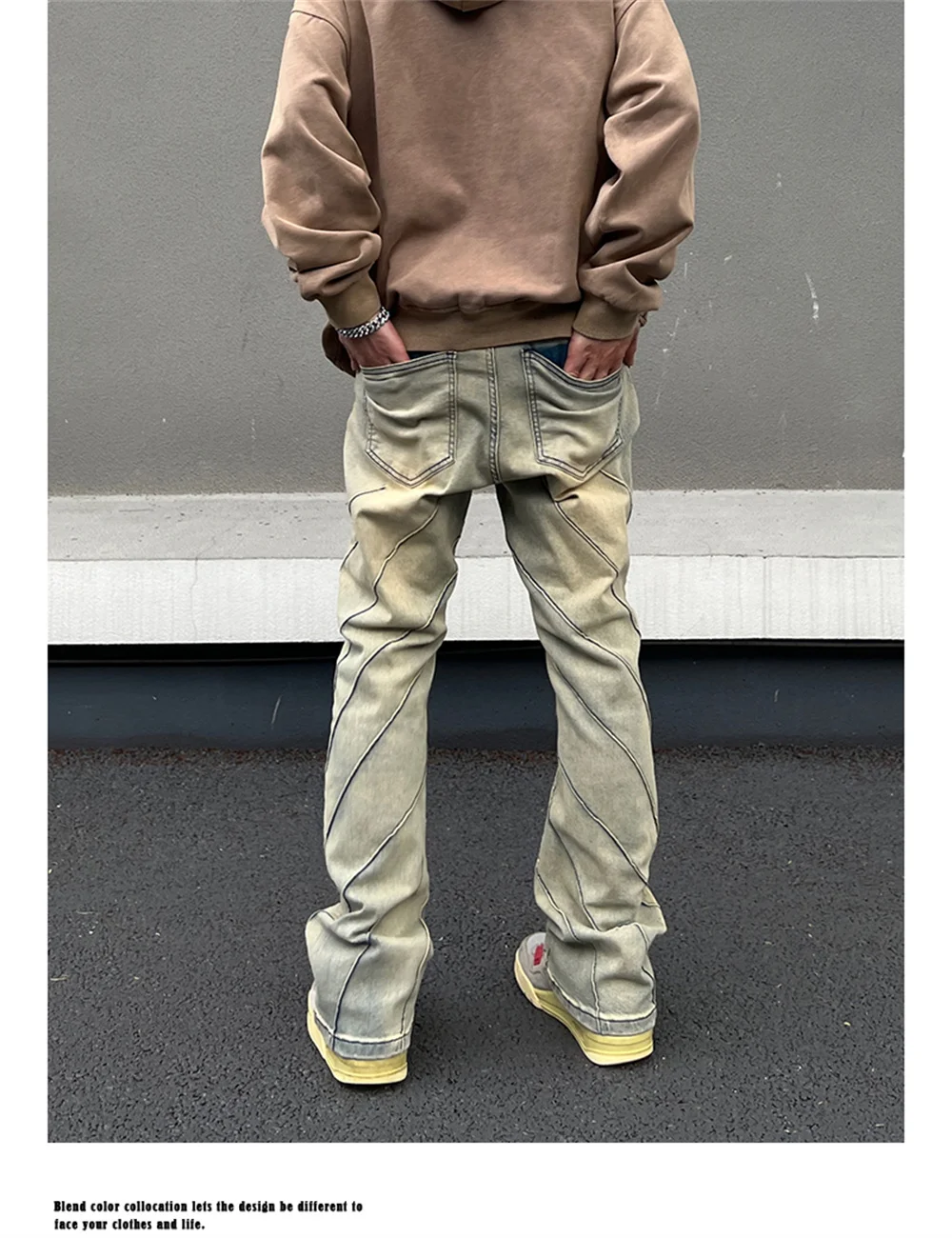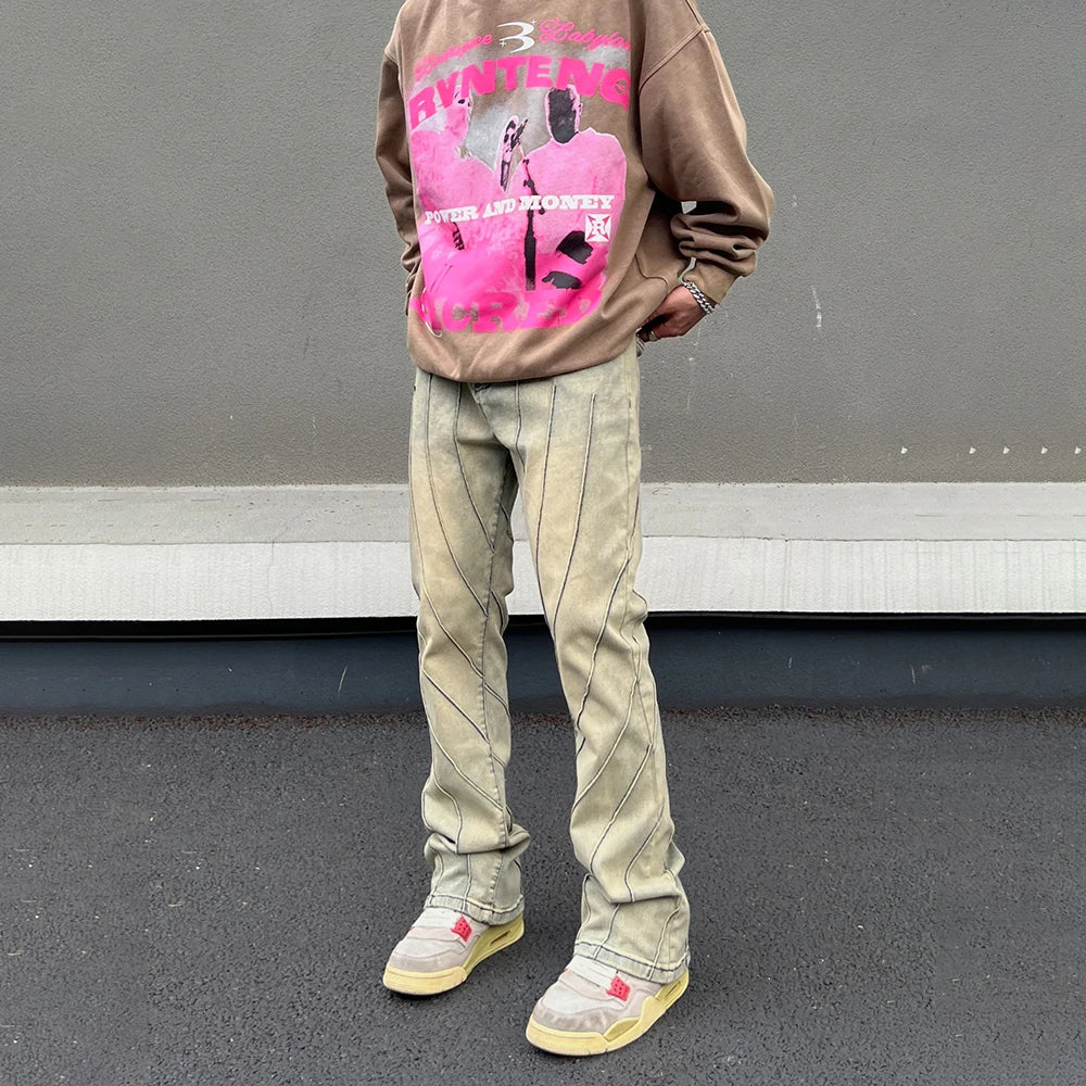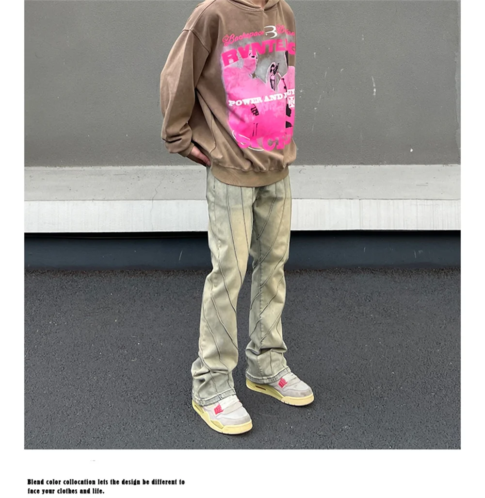 Threebooy Slim Jeans for Men Street Fashion Y2k Denim Pants Autumn Fit Streetwear Vintage Pleated Distressed Winter Skinny Flared Trousers