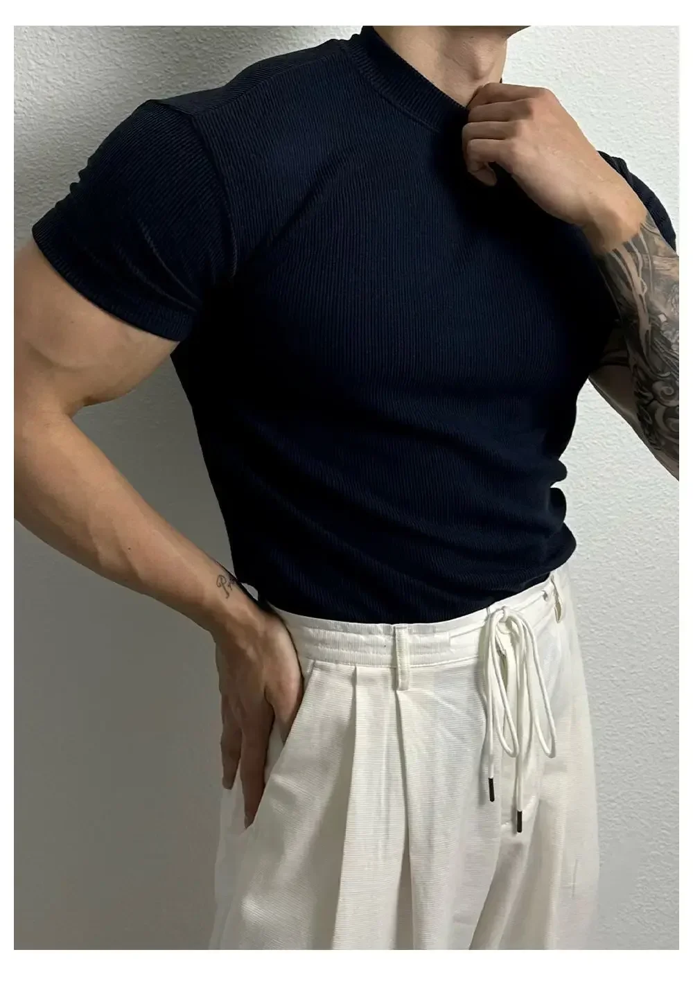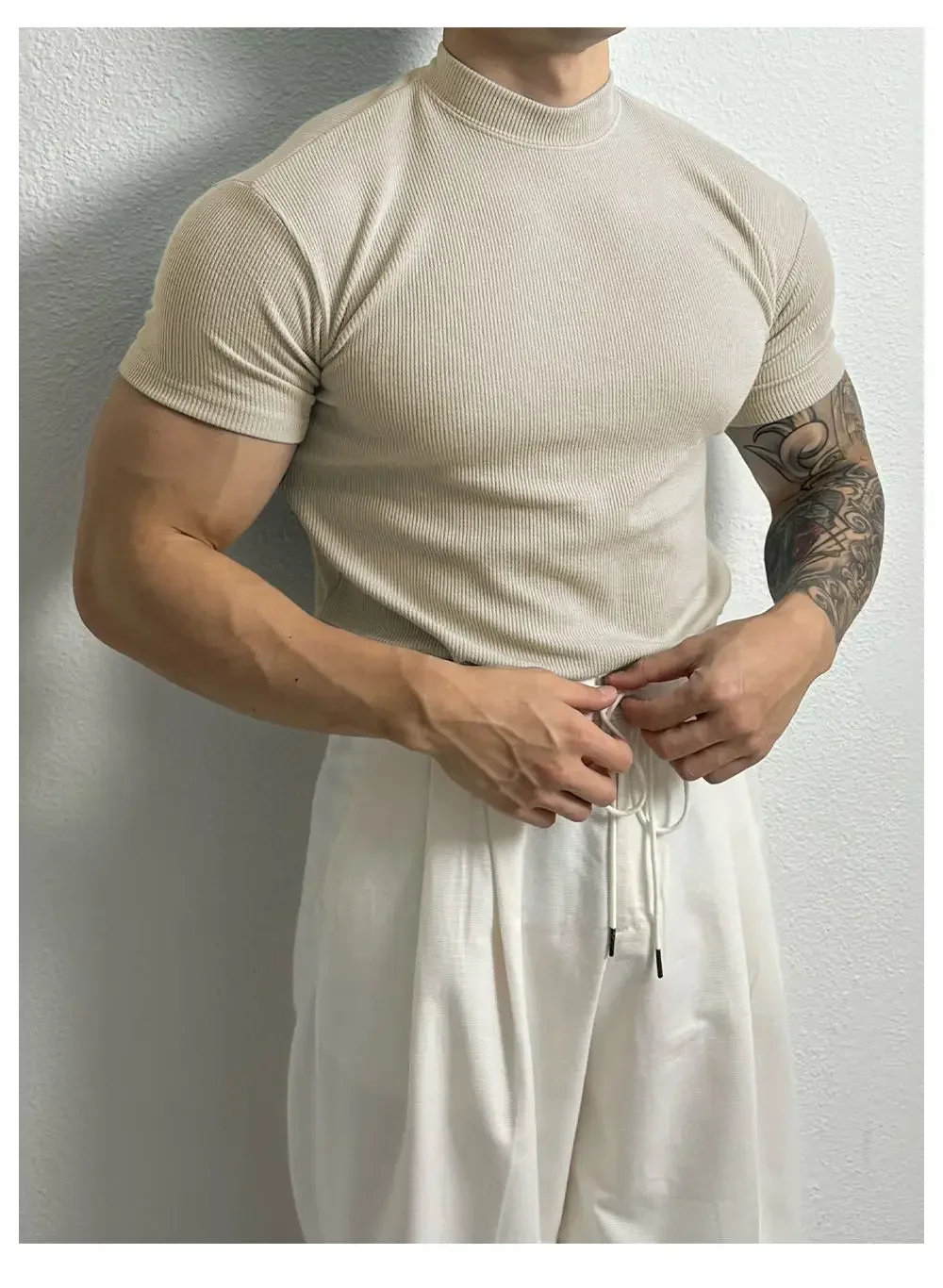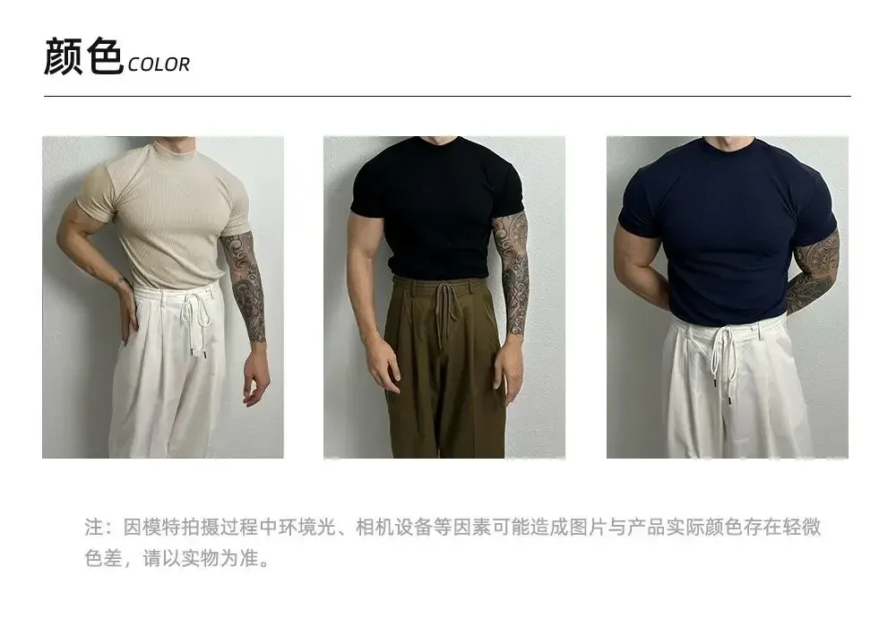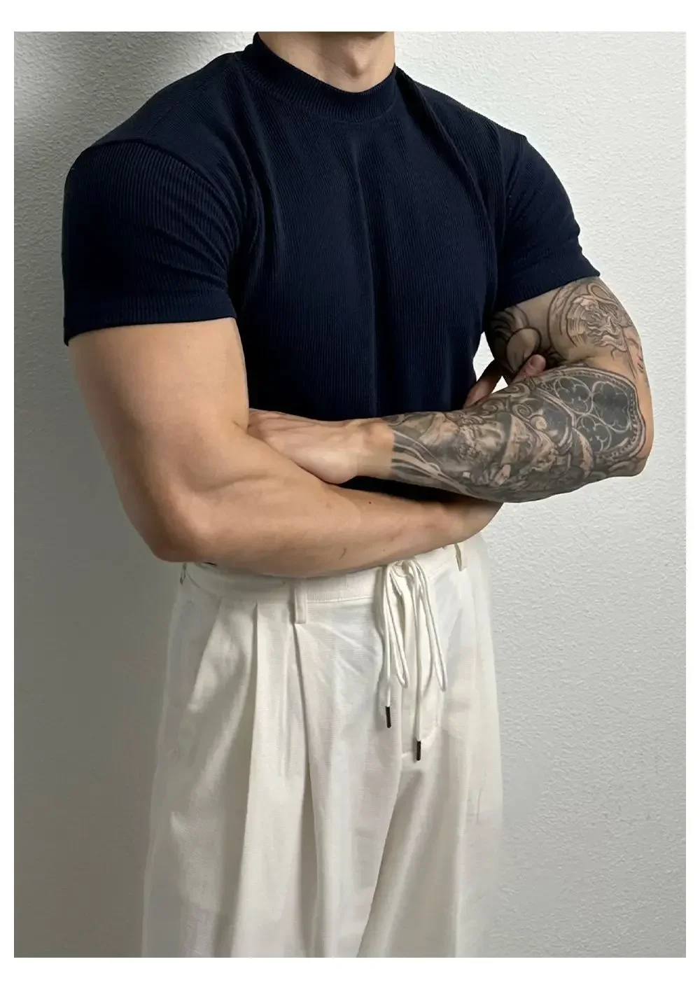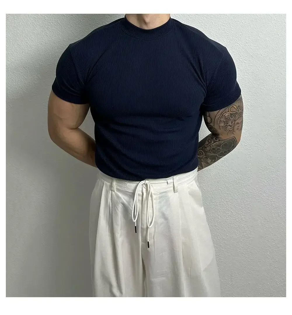 Threebooy Slim Short-sleeved T-shirt for Men's Summer New Light-mature Style T-shirt Tight Cuff Round Neck Casual Top