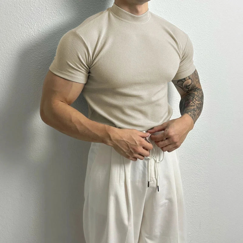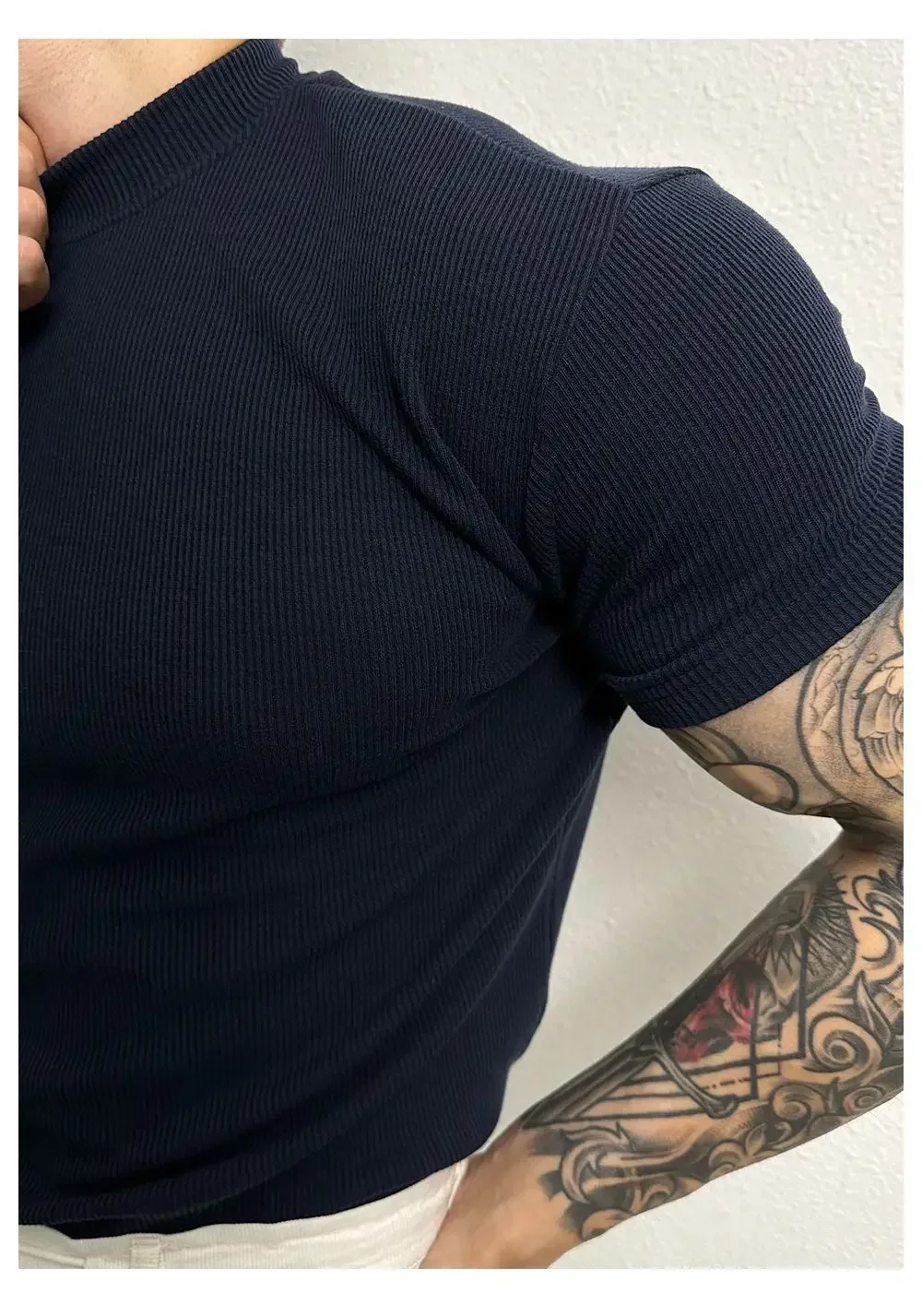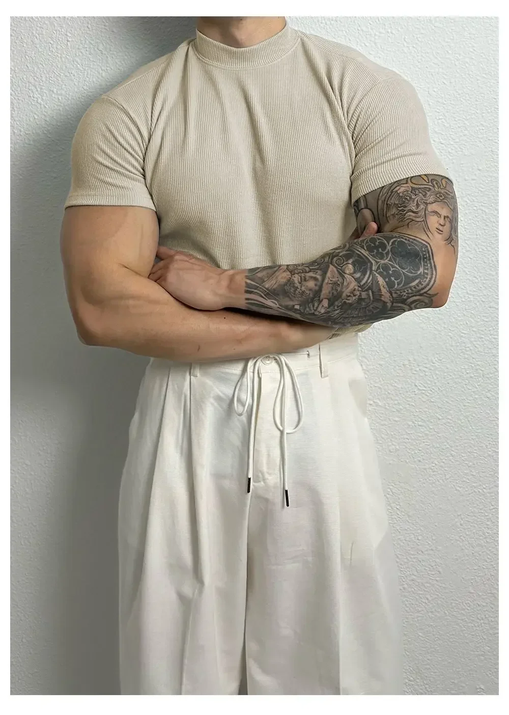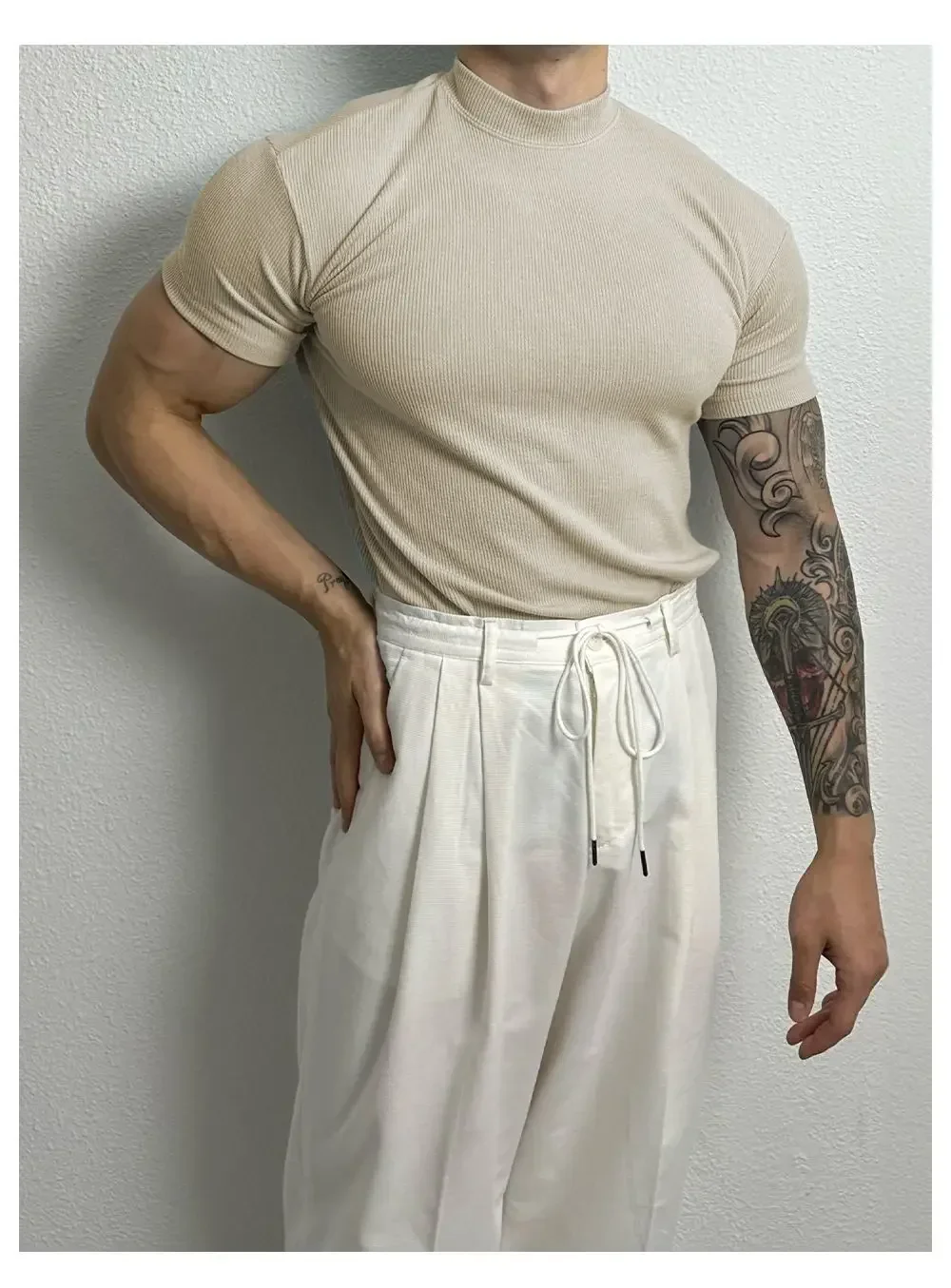 Threebooy Slim Short-sleeved T-shirt for Men's Summer New Light-mature Style T-shirt Tight Cuff Round Neck Casual Top