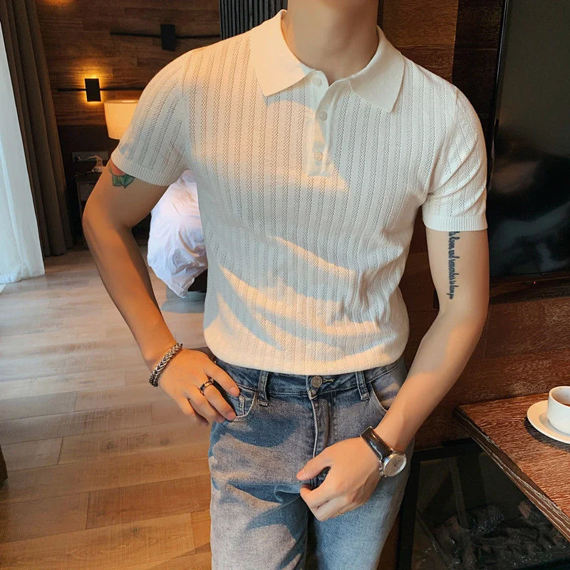 Threebooy Smart Casual Solid Color Turn-down Collar Polos Spring Summer Simplicity Retro Comfortable Tops Slim Men's Clothing