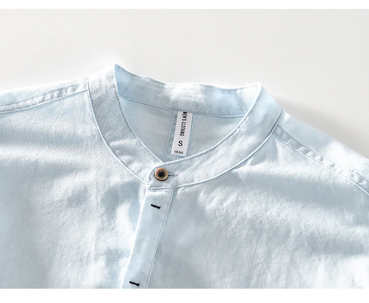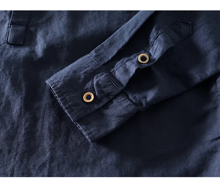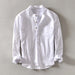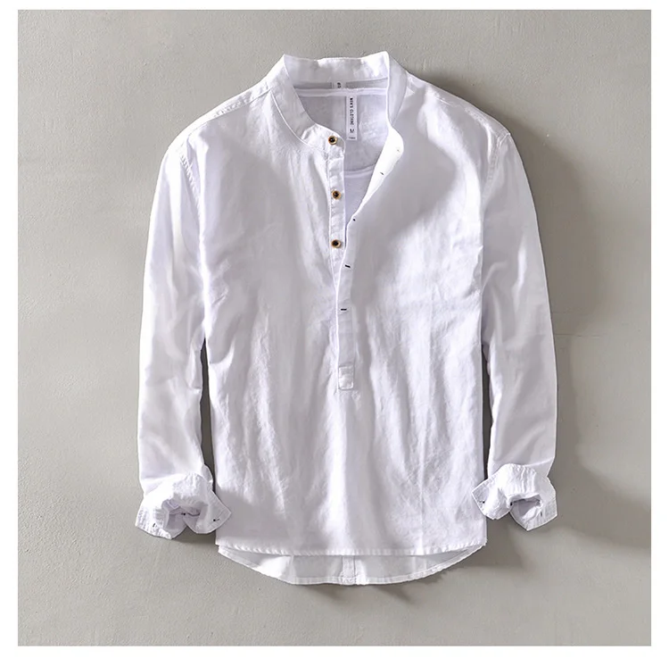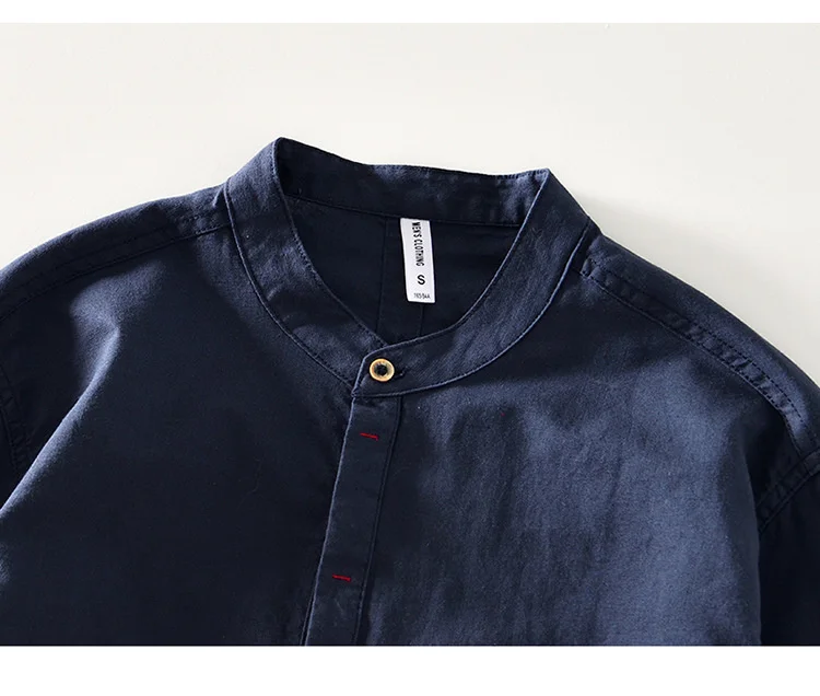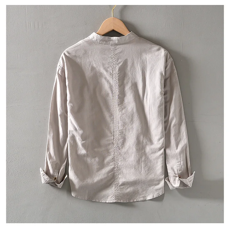 Threebooy Solid Color Men's Long Sleeve Shirt Japanese Styles Standing Collar Loose Fitting Classic Pullover Half-cardigans Shirt Tops