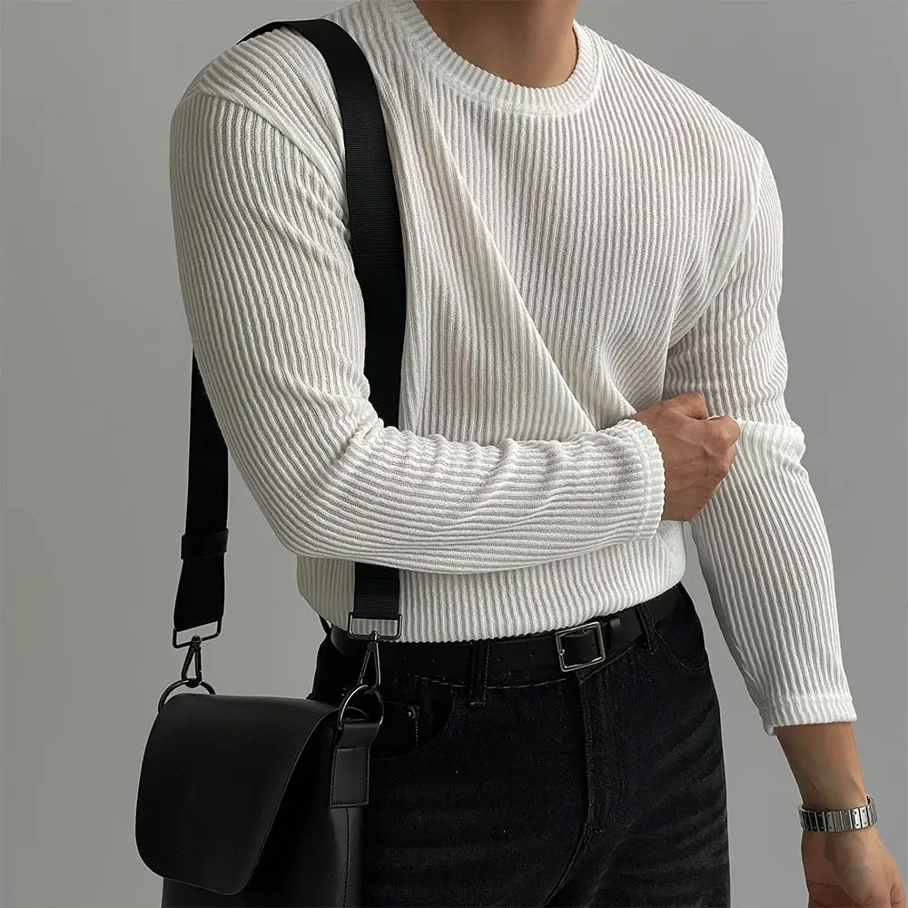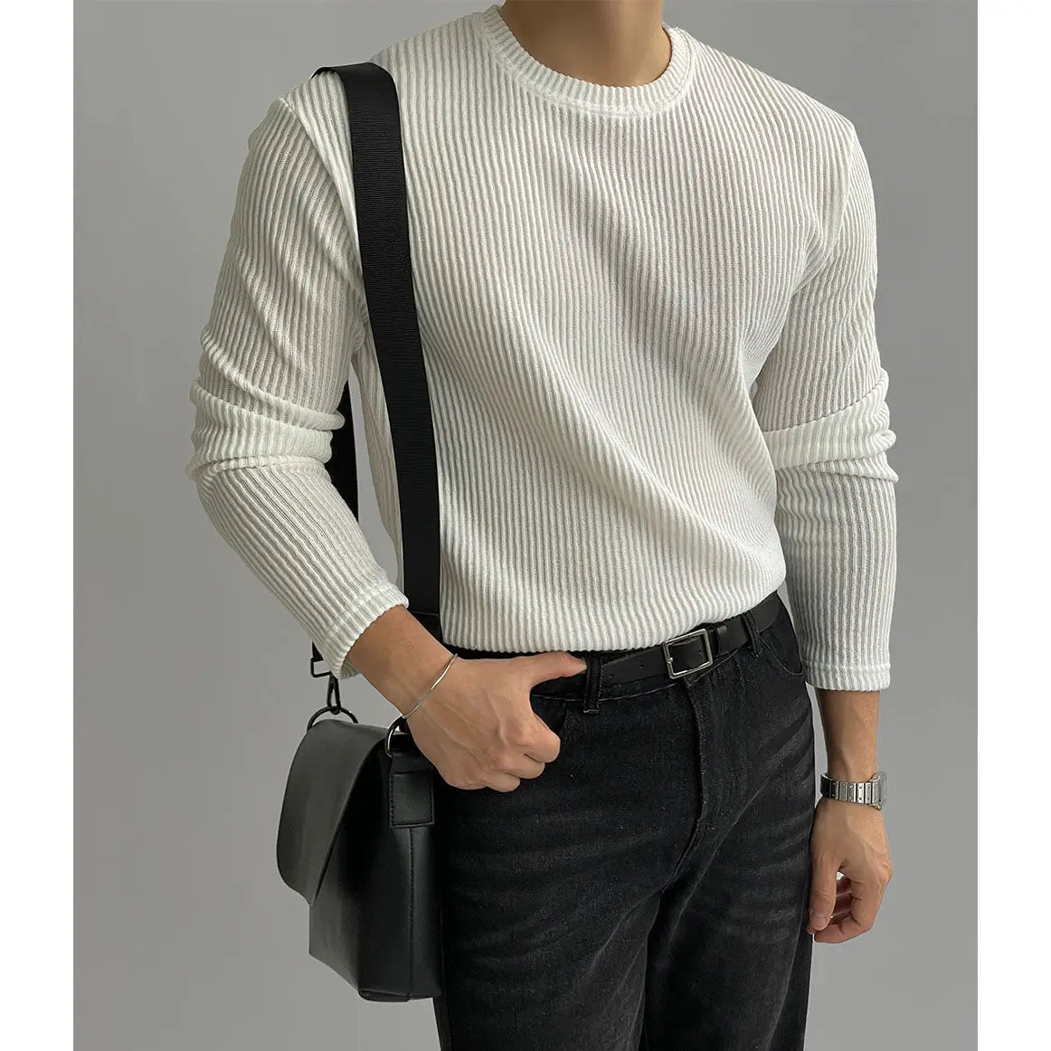 Threebooy Sport Fashion Men T-Shirts Spring Autumn New Solid O-Neck Texture Quick Dry Breathable Fitness Casual Slim Long Sleeve Tops