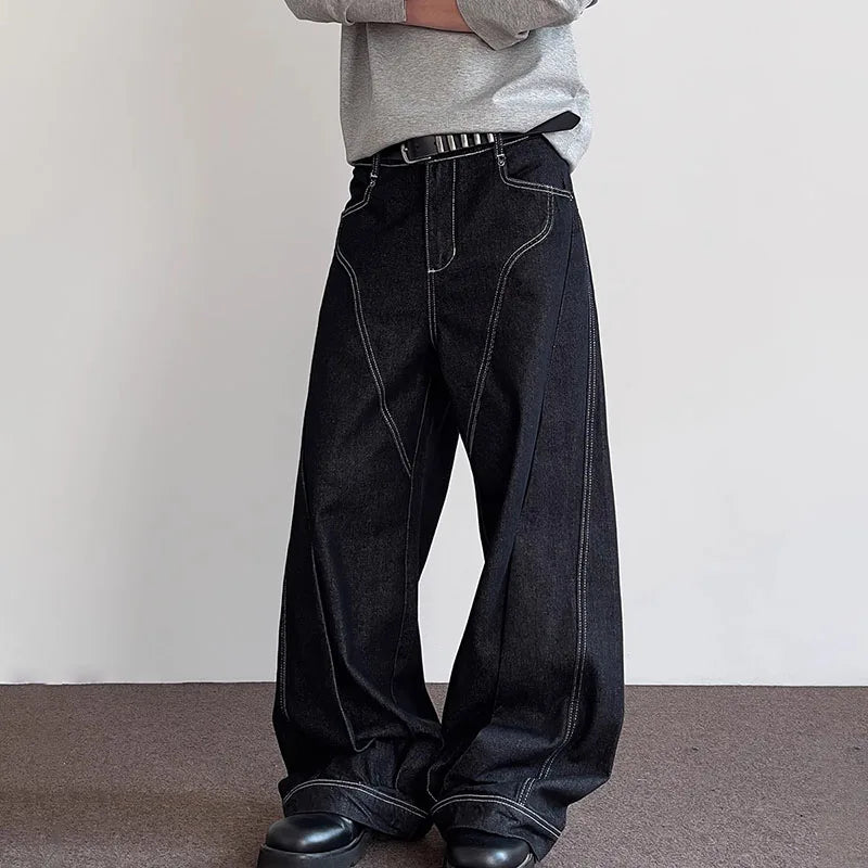 Threebooy Spring And Autumn Men'S Curved Jeans Multiple Visible Lines Men'S Straight Leg Pants Flared Jeans Y2k Hip-Hop Pants