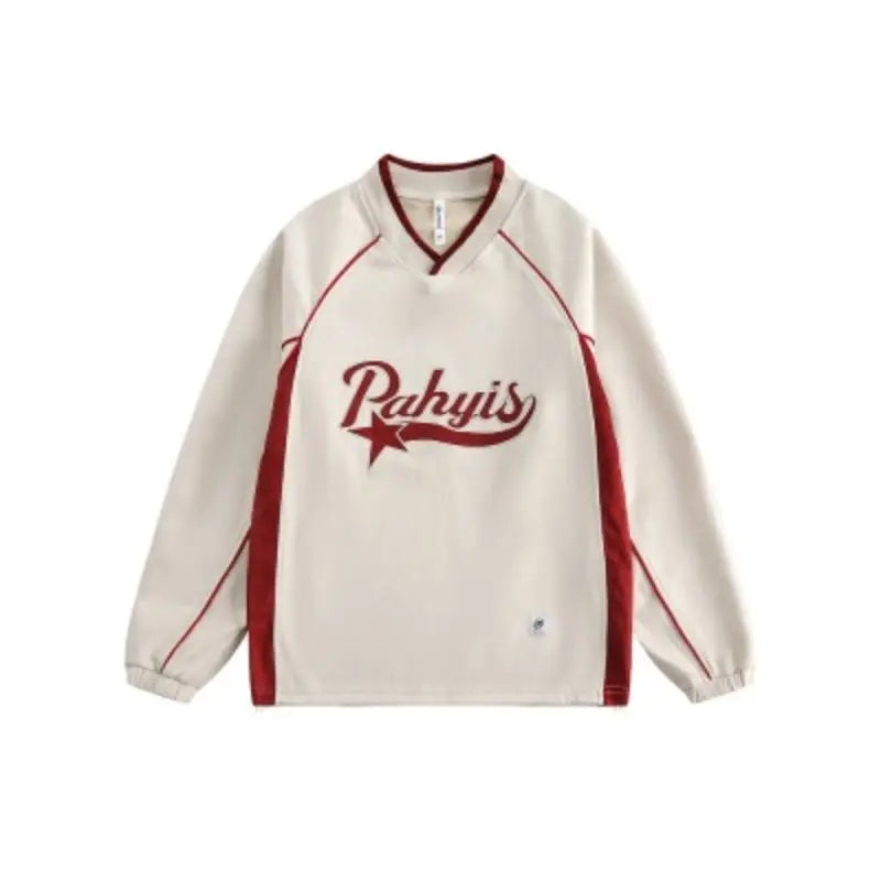 Threebooy Spring Autumn Japanese Retro Color-blocking Pullover Sweatshirt Men's College Style Letters Loose Long-sleeved Sweatshirt Chic