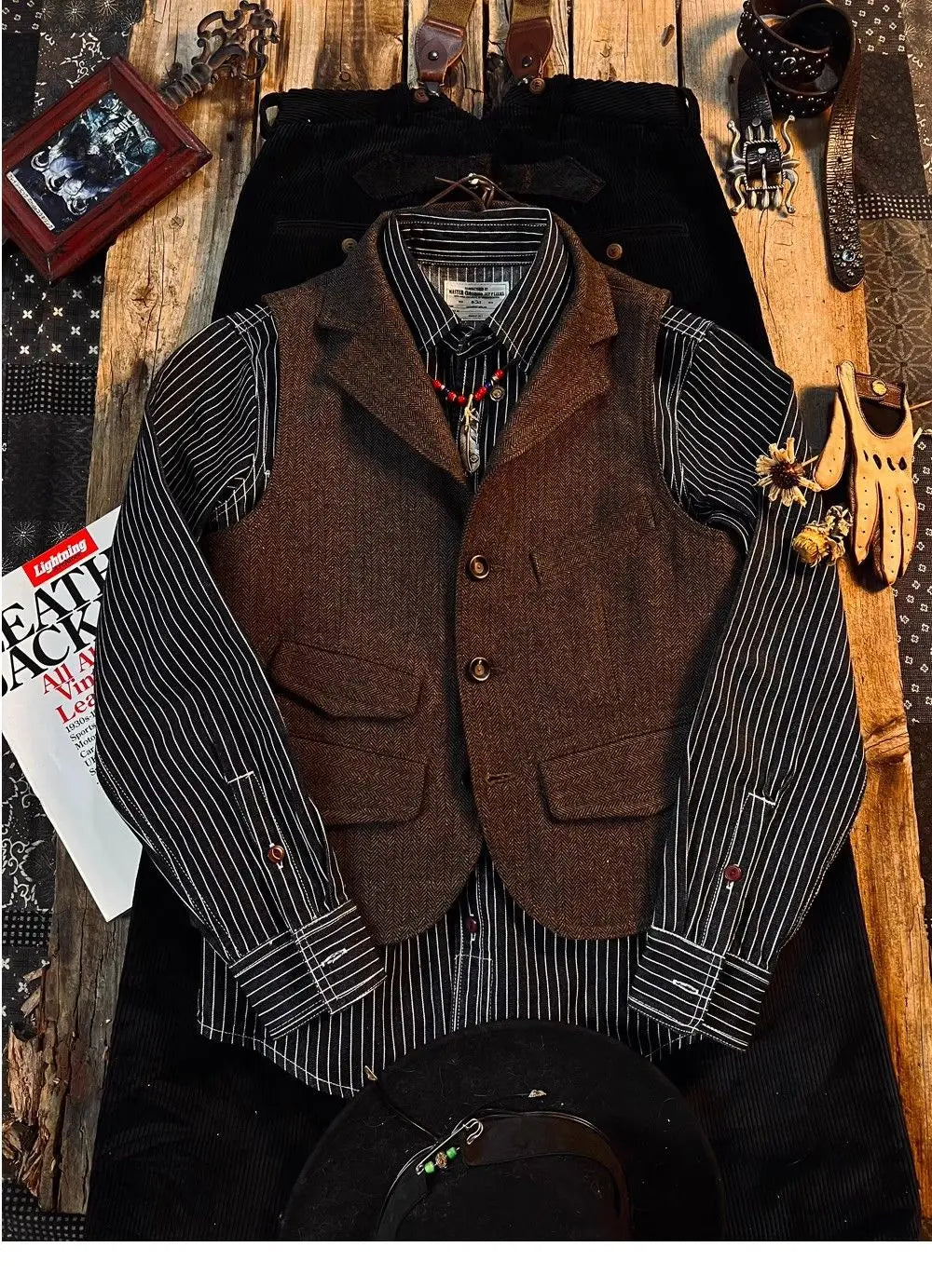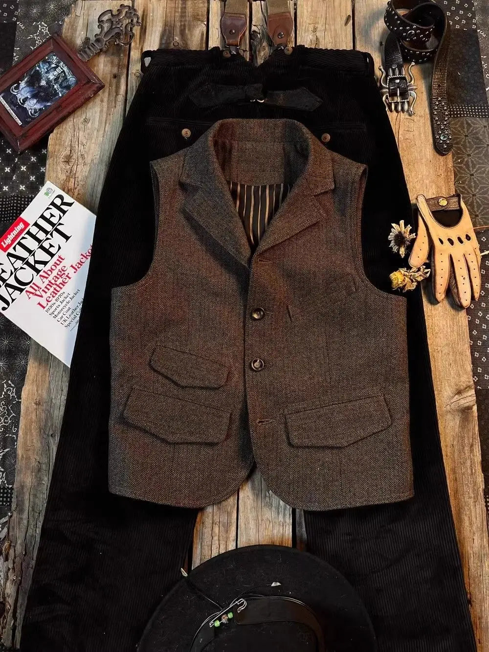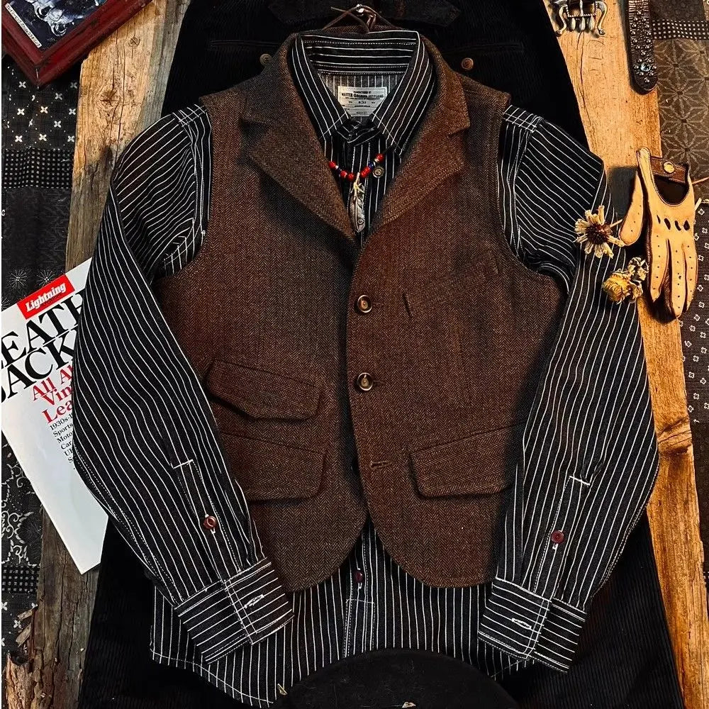 Threebooy Spring British Retro Wool Herringbone Vest French Fashion Elegant Style Tweed Vest Wool Khaki Suit Slim Vest Aesthetic Elegant