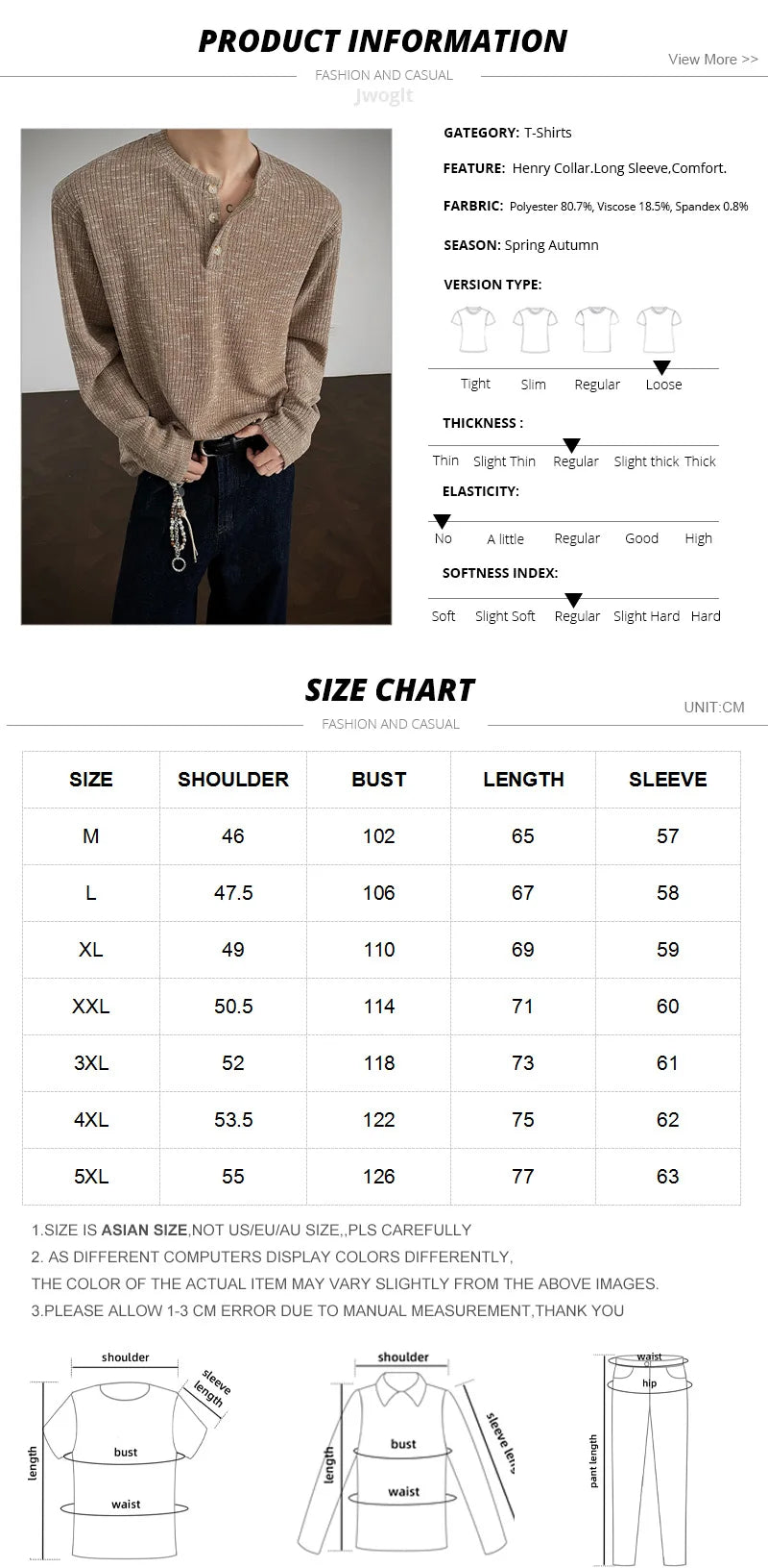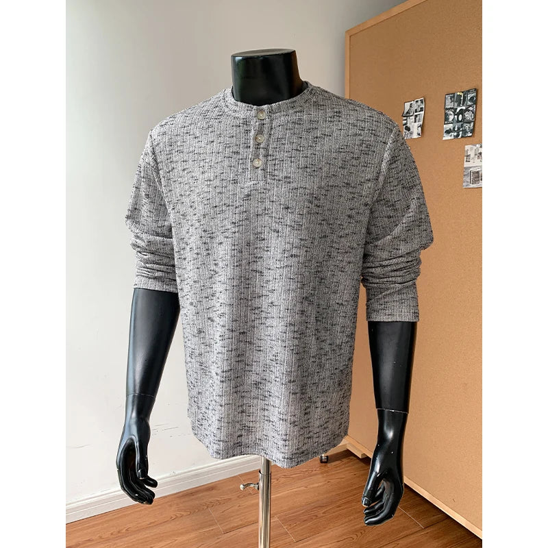Threebooy Spring New Textured Henry Collar Men's Long Sleeved T-Shirt