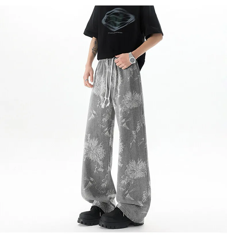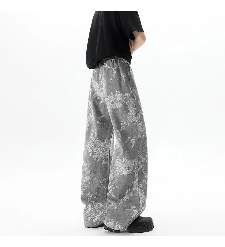 Threebooy Streetwear Jeans Unisex Straight Loose Fit Fashion Trendy Print Design Urban Casual Pants Unique Style Streetwear Denim Trousers