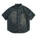 Threebooy Summer Denim Short Sleeve Shirt Men Streetwear Hip Hop Leaves Print Jeans Shirt Oversized Harajuku Washed Casual Blouse Male