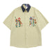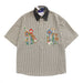 Threebooy Summer Japanese Retro Patchwork Denim Collar Plaid Short Sleeved Embroidery Shirt for Men and Women Loose Design and Trendy Top