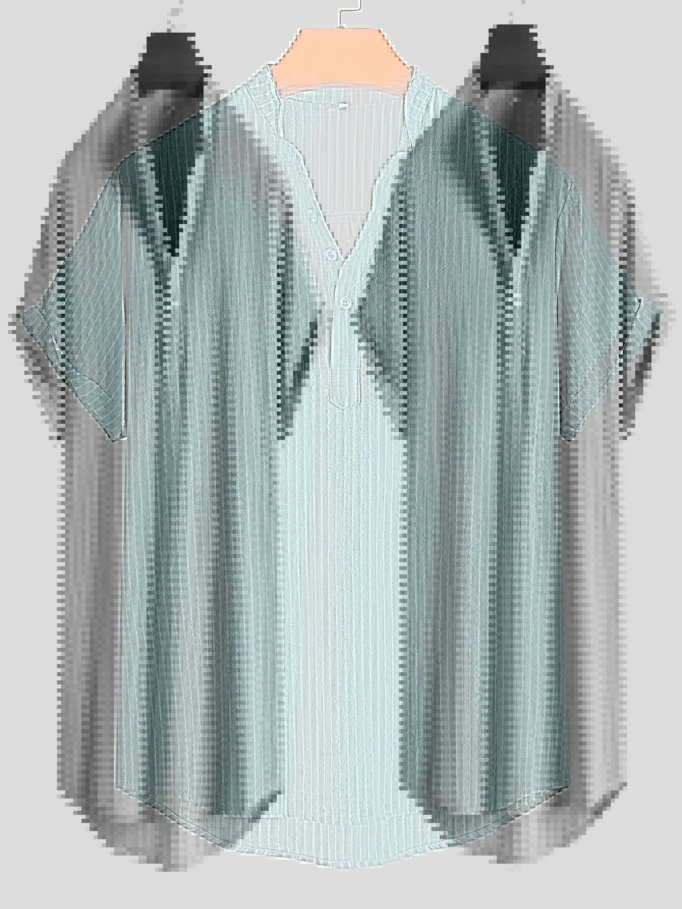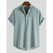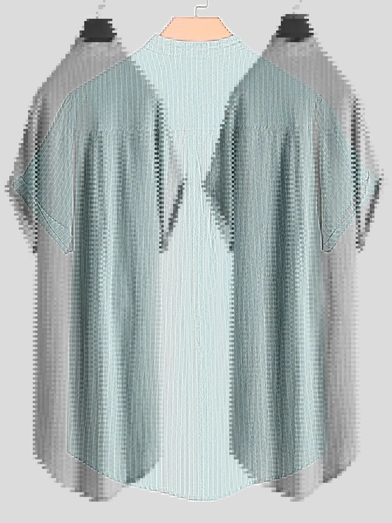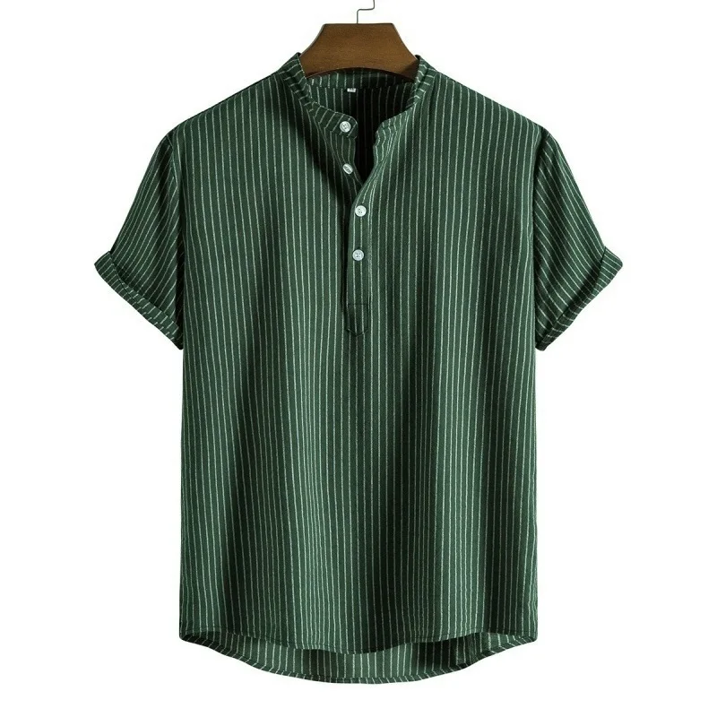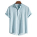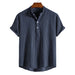 Threebooy Summer Men's Cotton Linen Stand Collar Short Sleeved Shirt