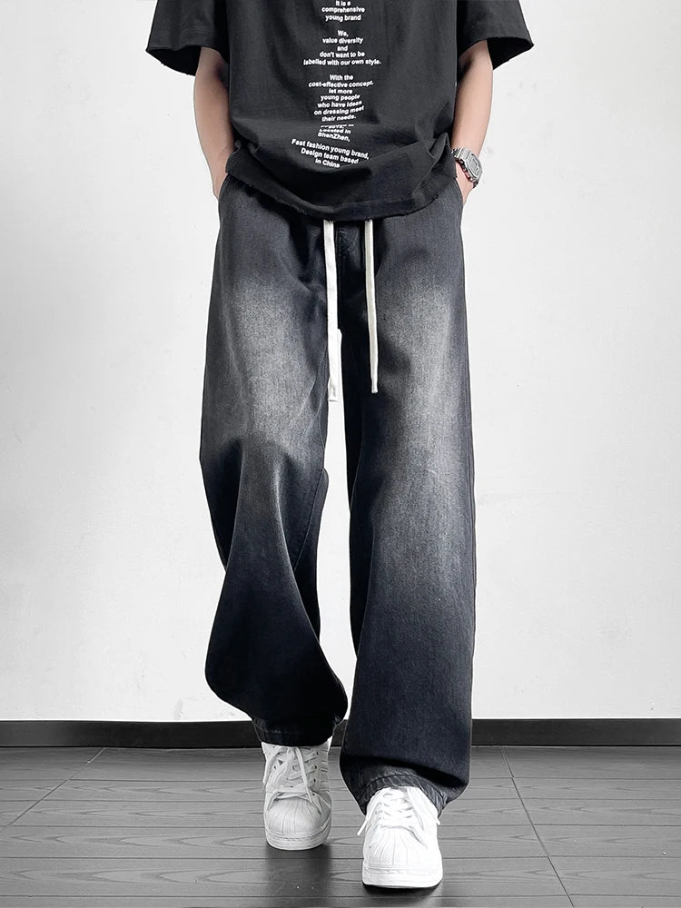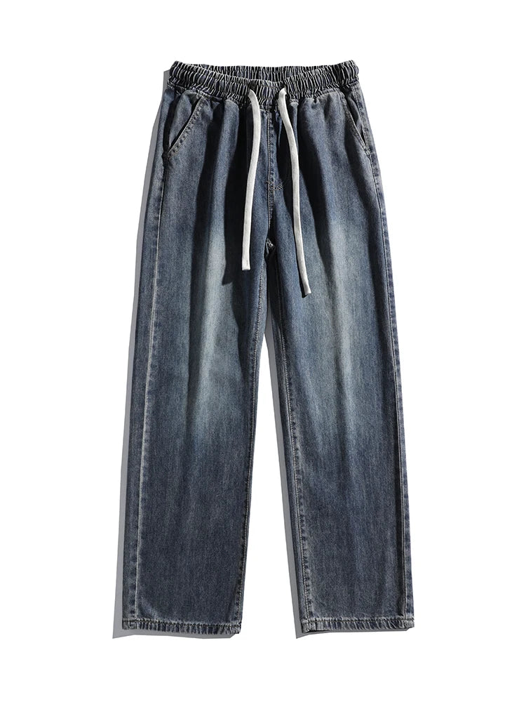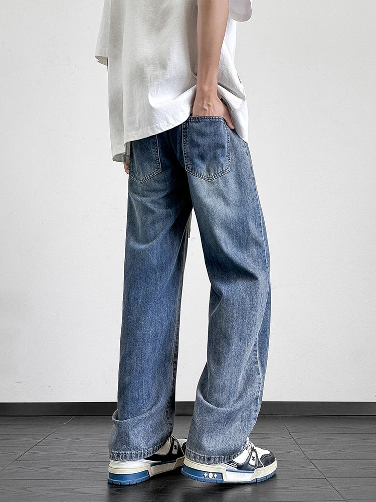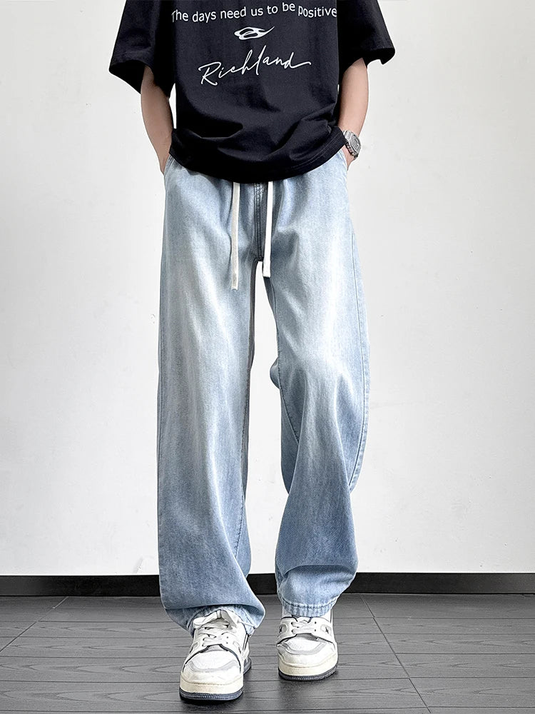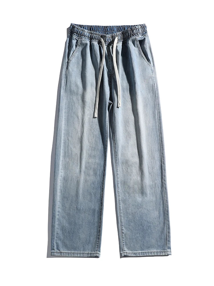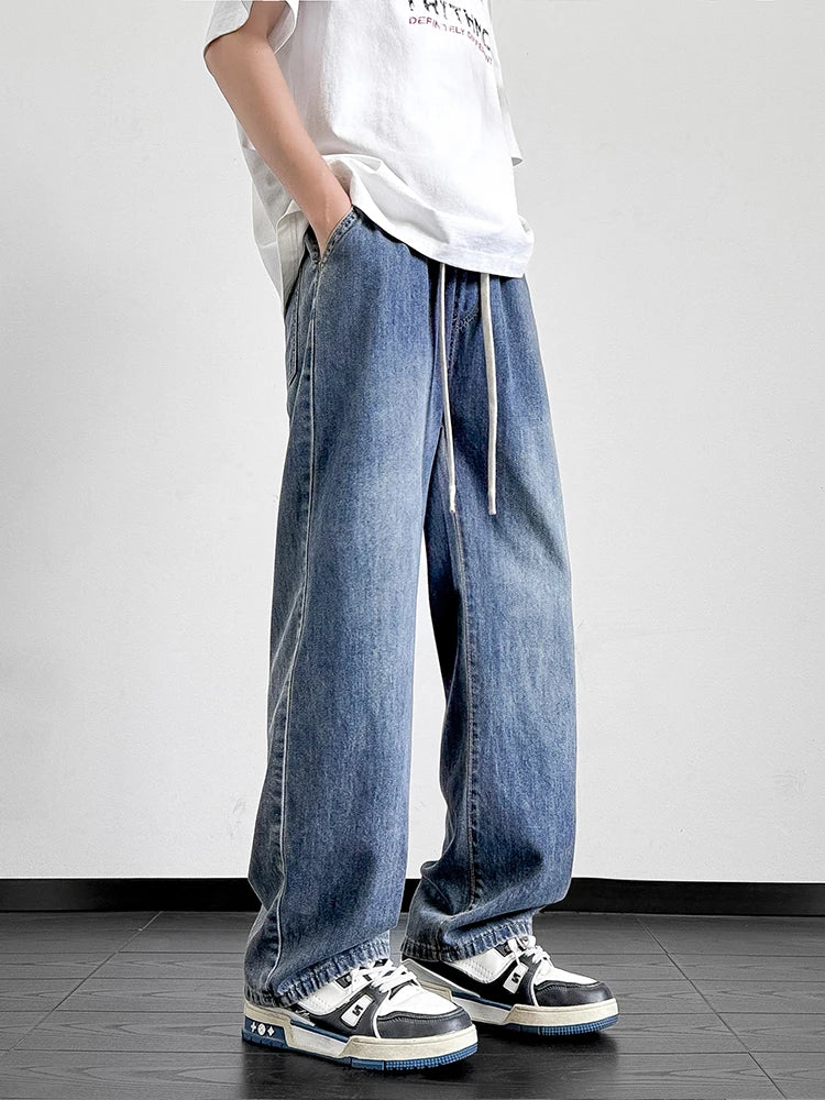 Summer Men's Jeans Korean Fashion Lightweight Lyocell Cotton Straight Denim Pants Loose Fit Wide Leg Jeans Trousers