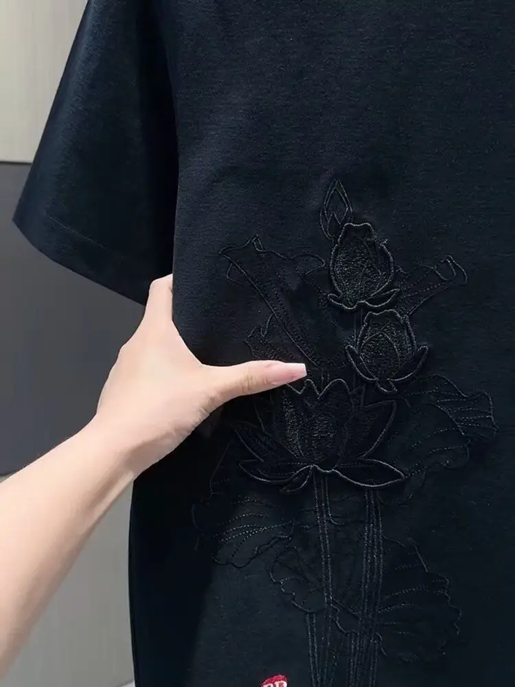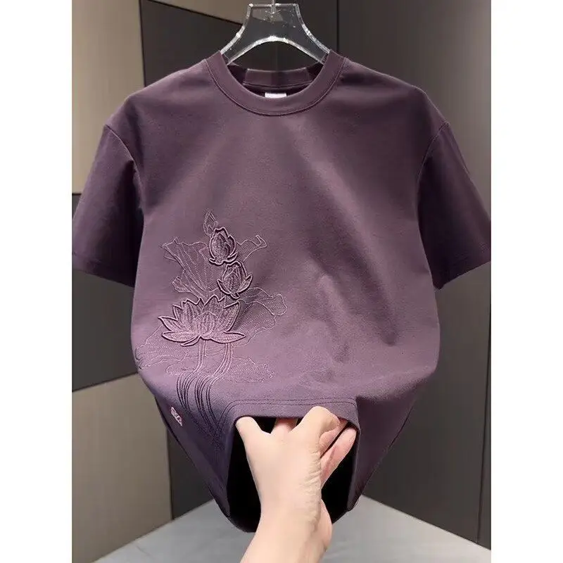 Threebooy Summer New Embroidery Chinese Style Short Sleeve Men's Loose Slim Fit Casual Short Sleeve T-shirt Round Neck Top