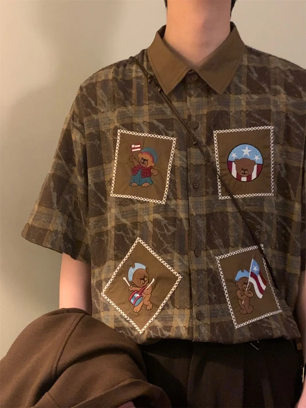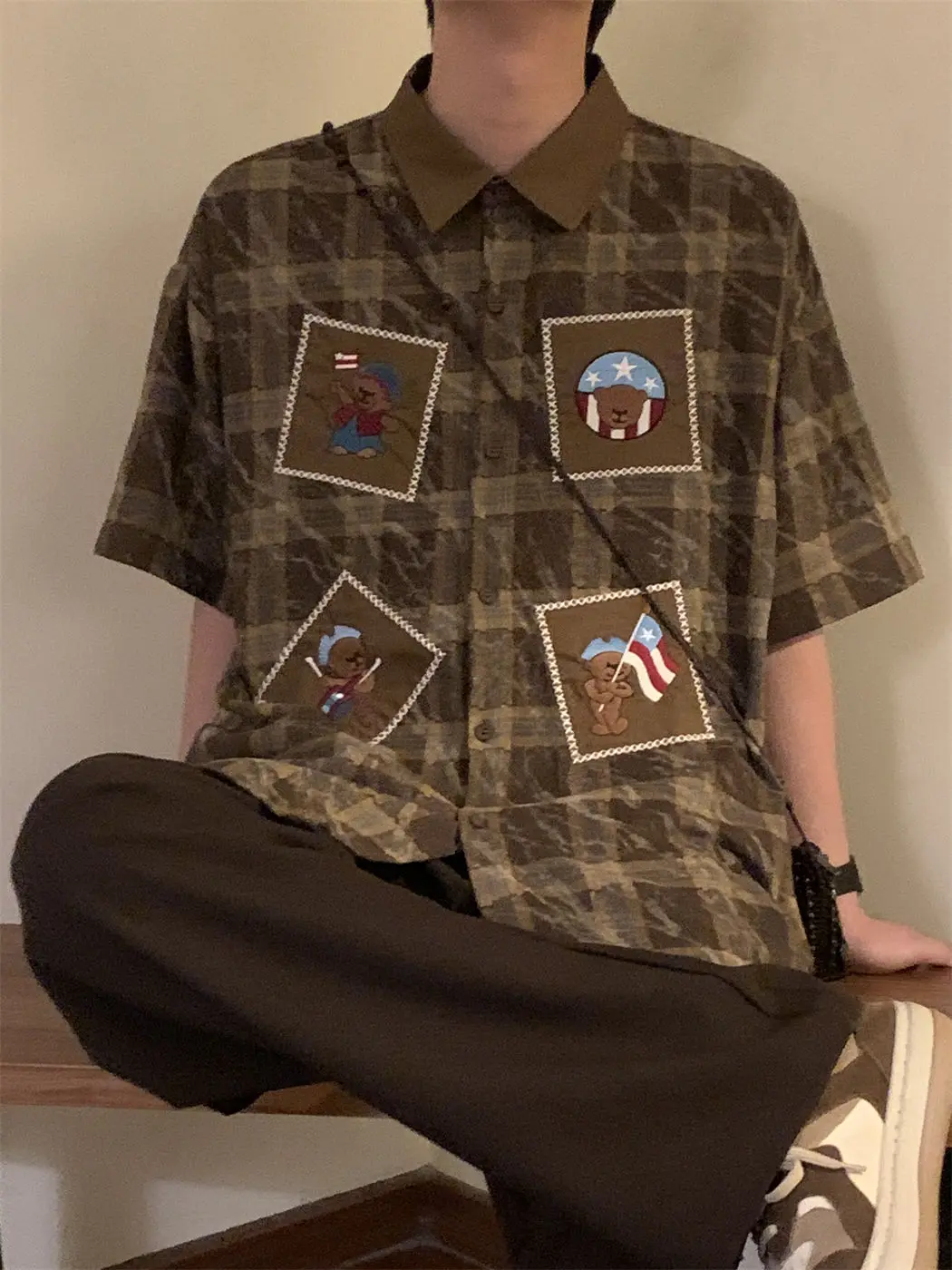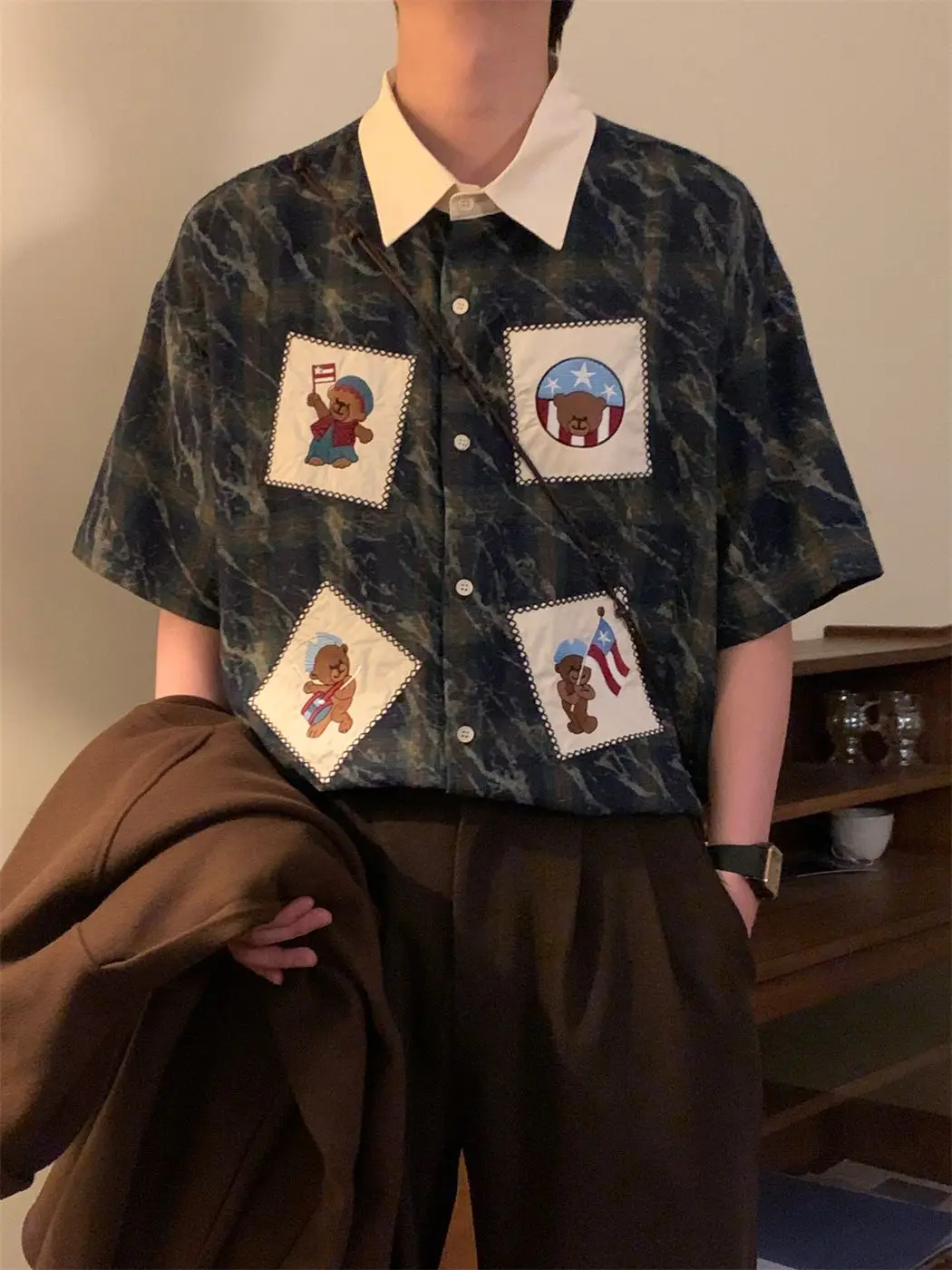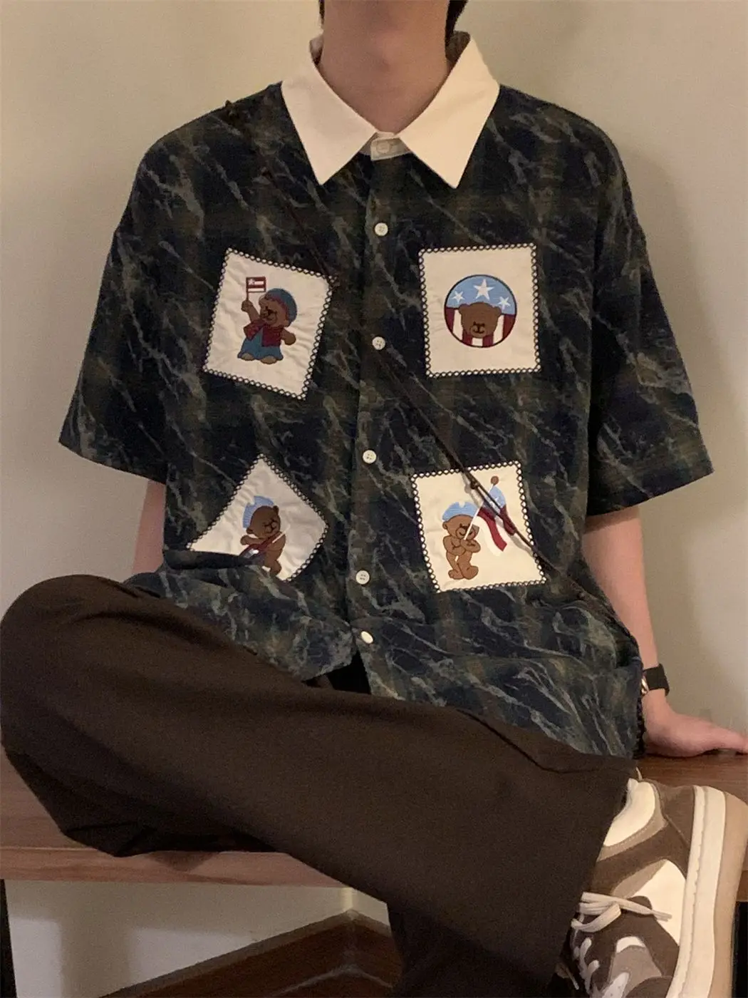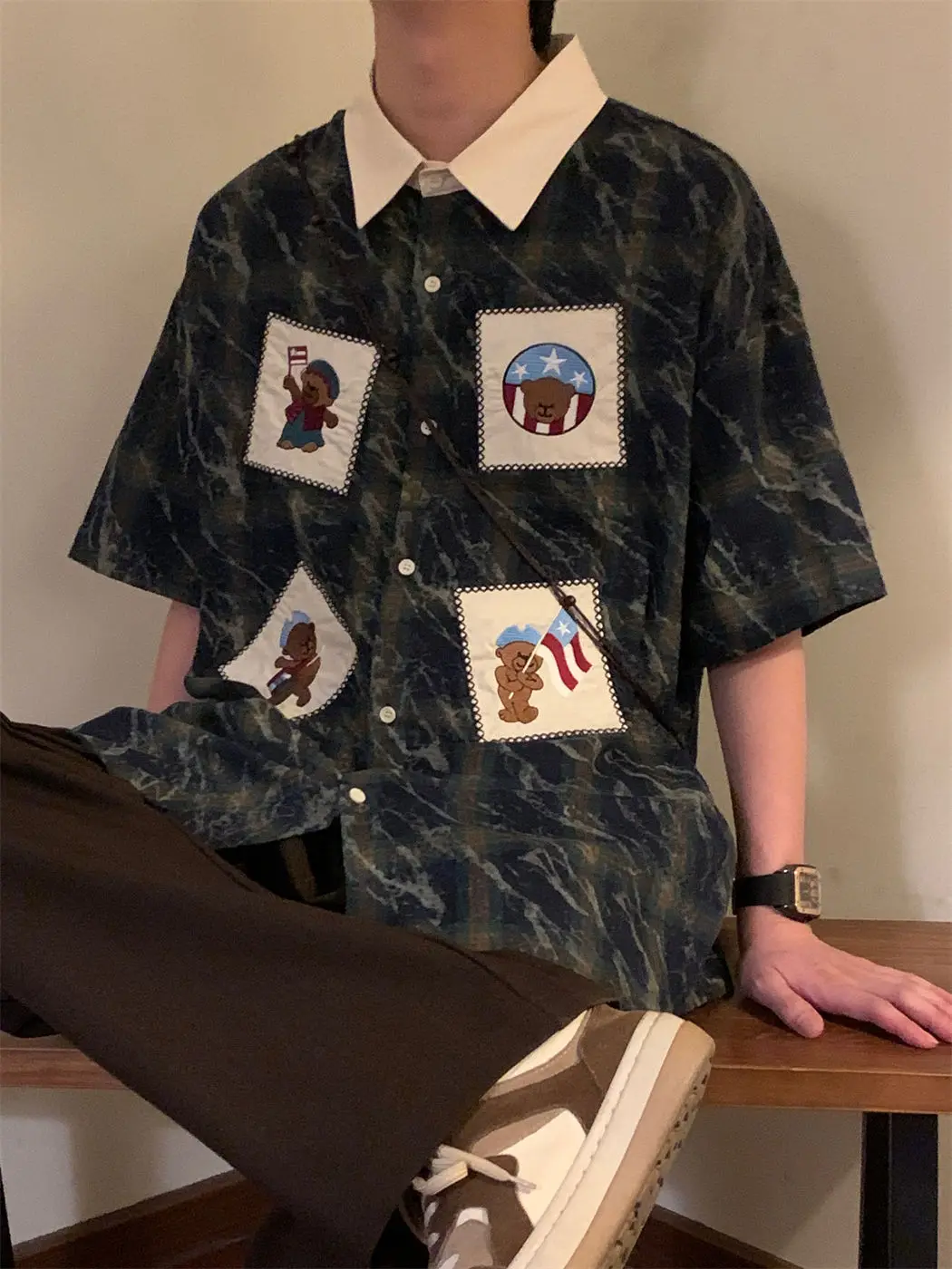 Threebooy Summer New Fashion Shirt Short-sleeved Men's Contrasting Color Trendy High-end and Versatile Handsome Shirt Men's Clothing