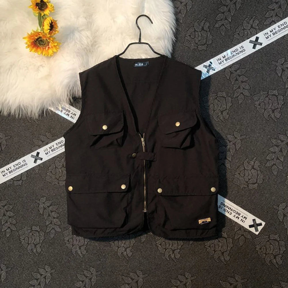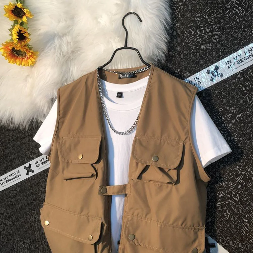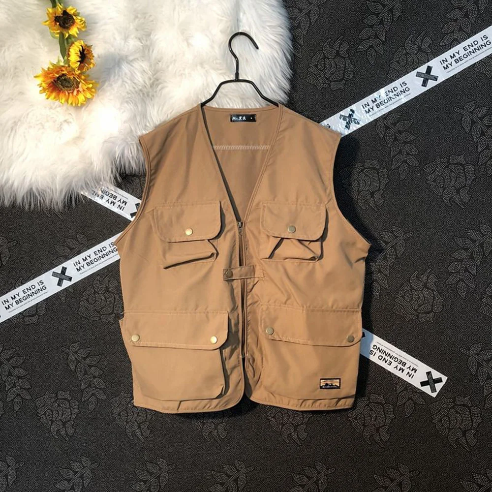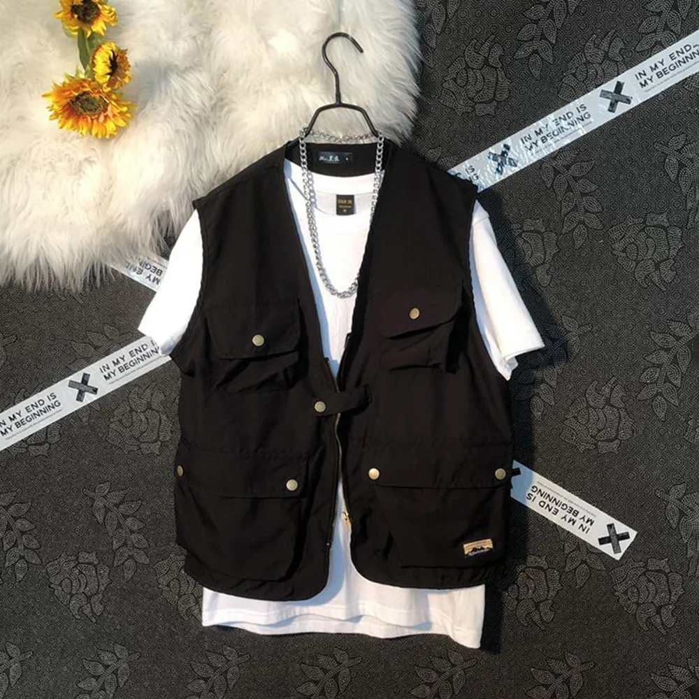 Threebooy Summer New Men's Cargo Sleeveless Solid Color Vest Multi-Pocket American Retro Fashion Casual Trend Street Loose Men's Tops