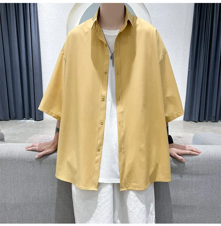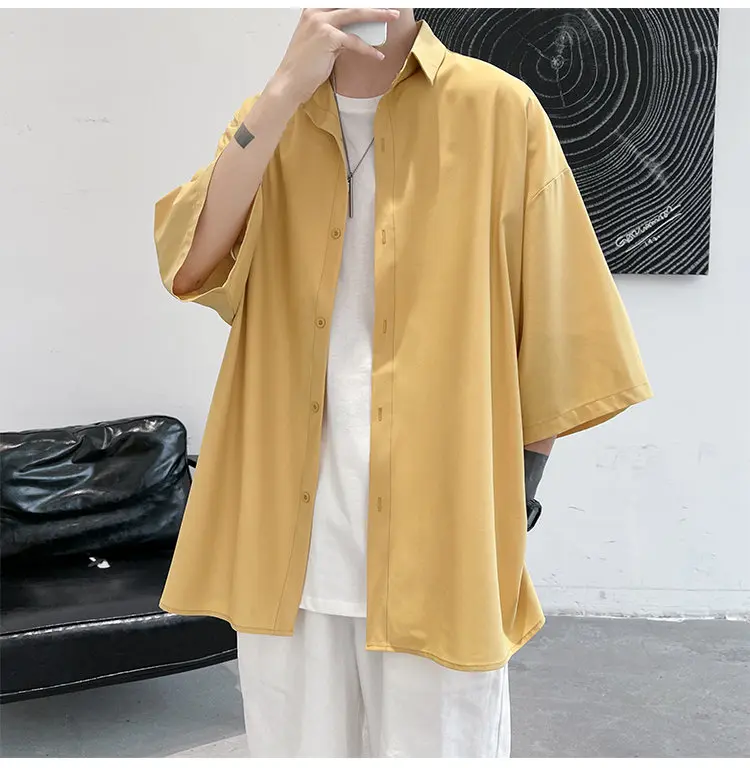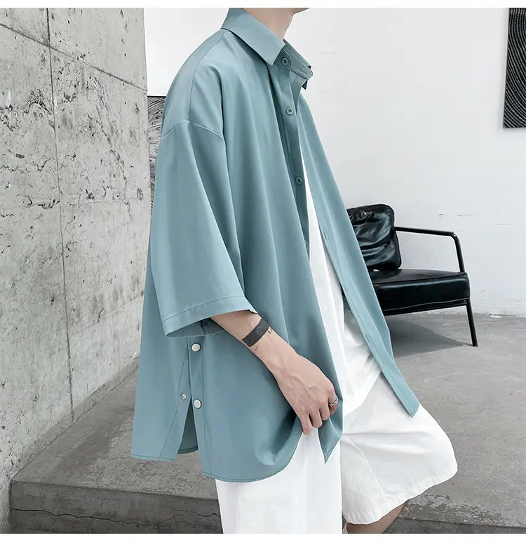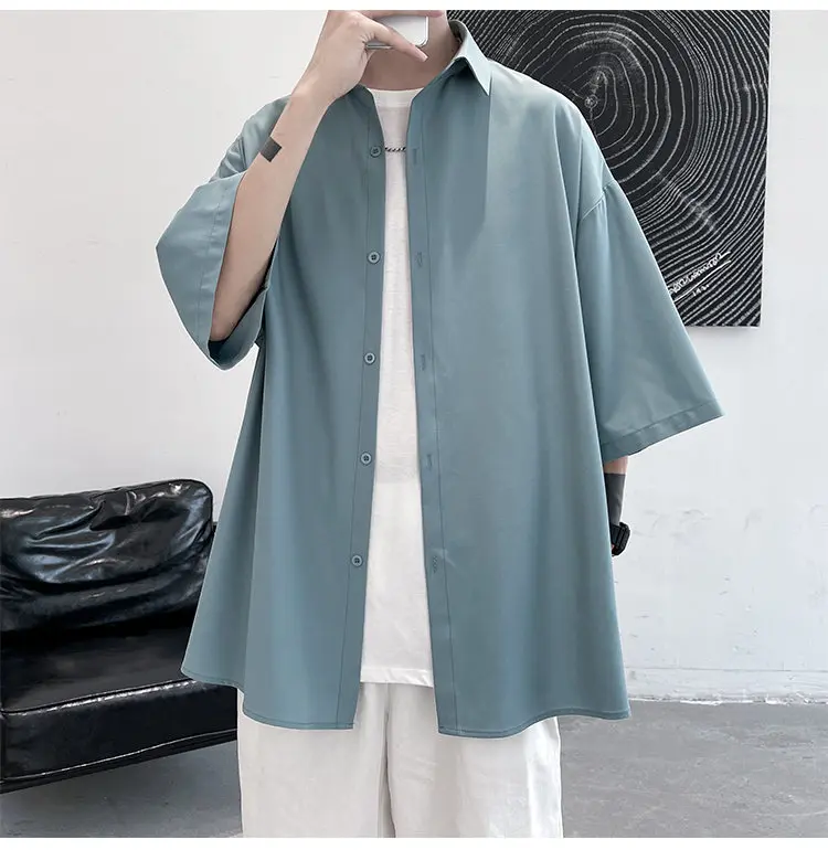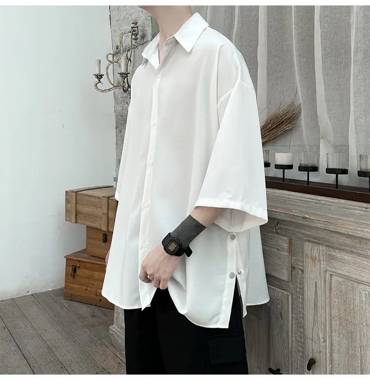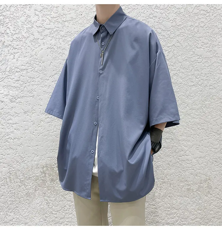 Threebooy Summer Short Sleeved Shirt Men Fashion Social Mens Dress Shirt Korean Loose Casual Shirt Mens Oversized White Shirt M-3XL