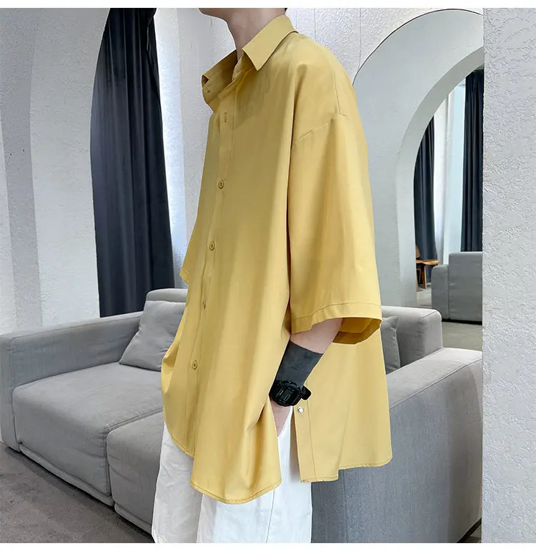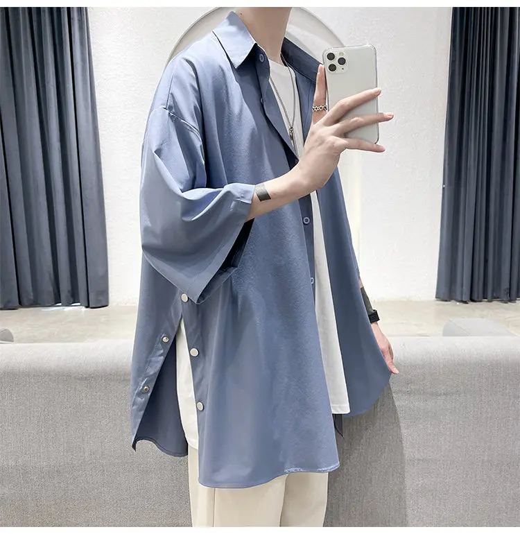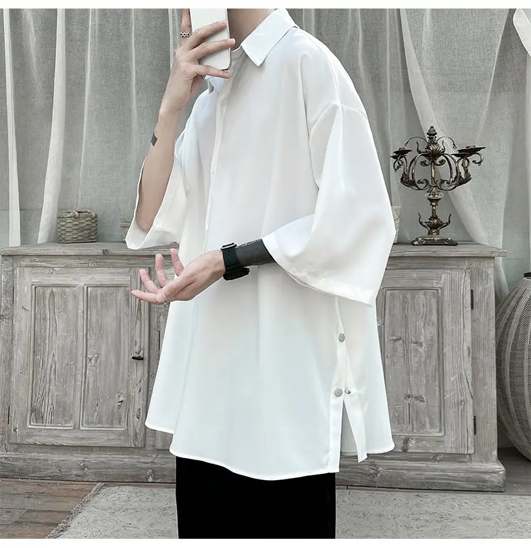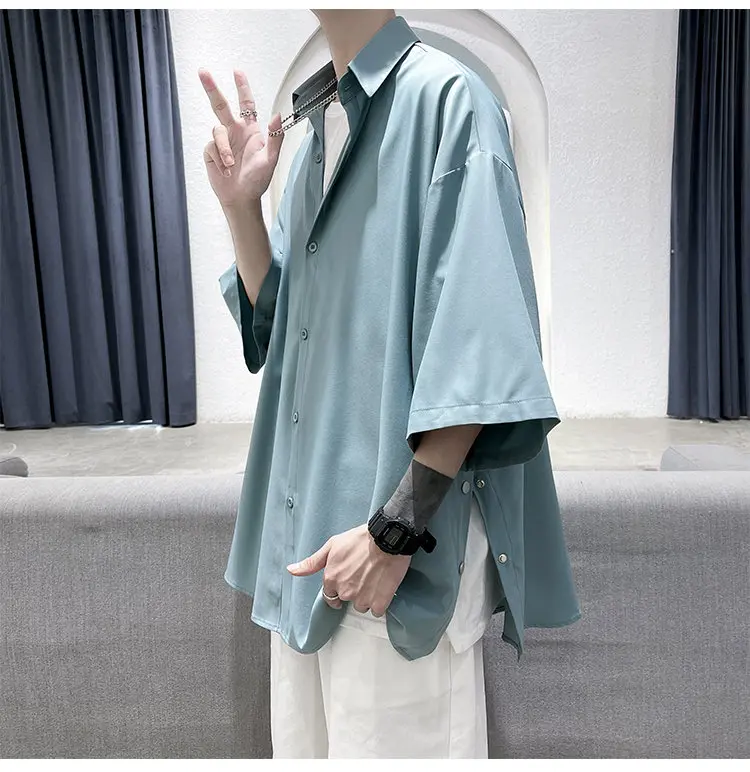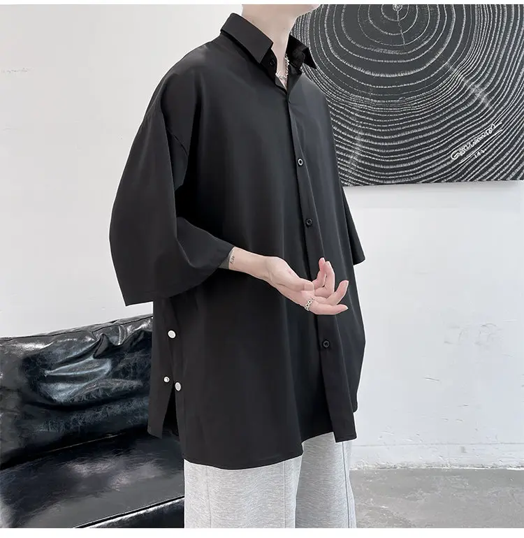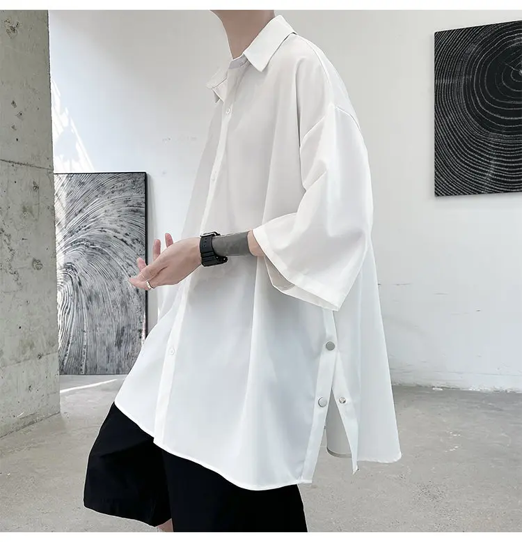 Threebooy Summer Short Sleeved Shirt Men Fashion Social Mens Dress Shirt Korean Loose Casual Shirt Mens Oversized White Shirt M-3XL