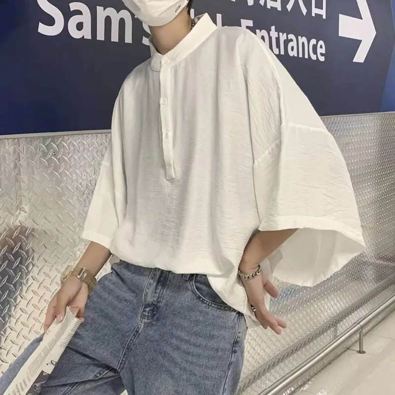 Threebooy Summer Short Sleeved Shirt Men Oversized Fashion Black White Shirt Men Streetwear Korean Loose Pullover Shirt Mens Casual Shirts