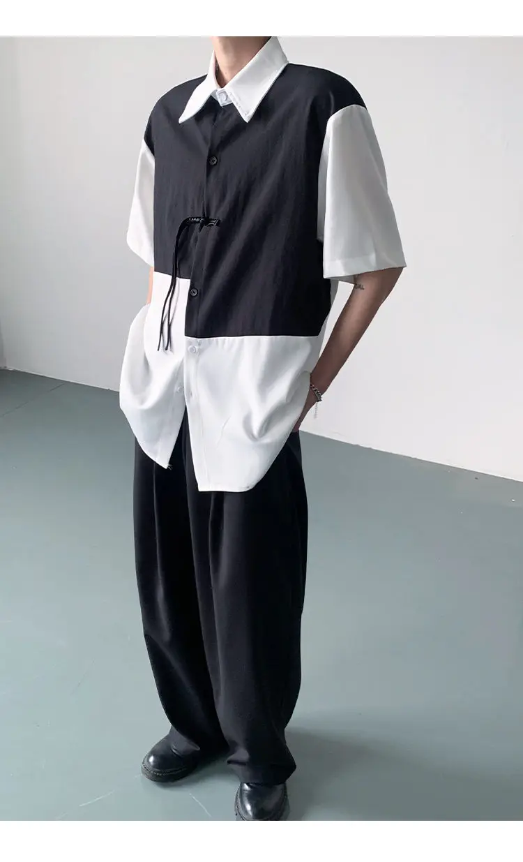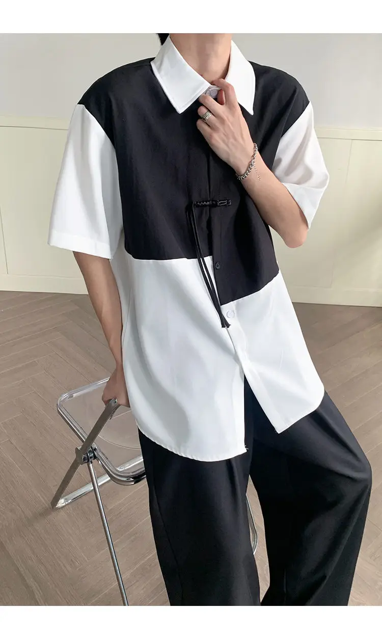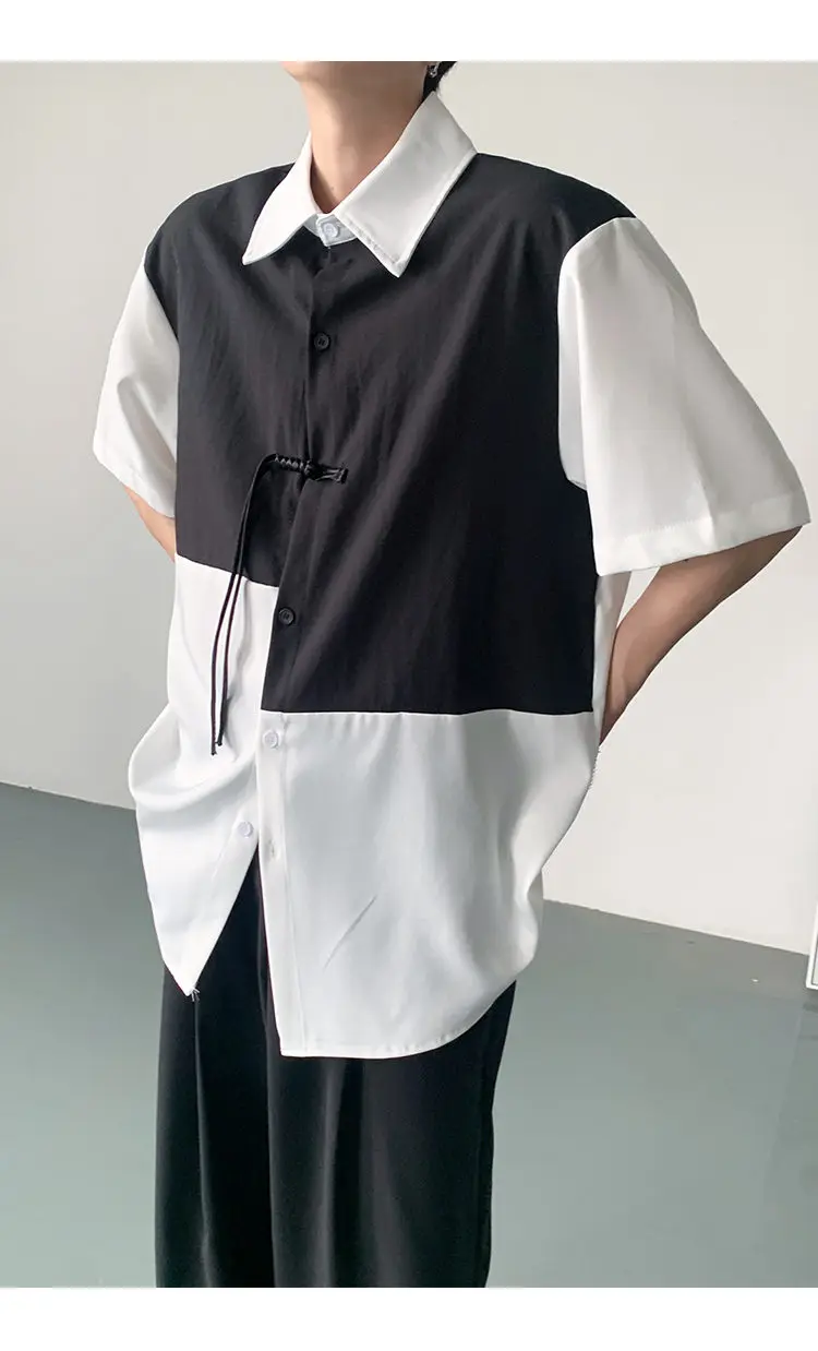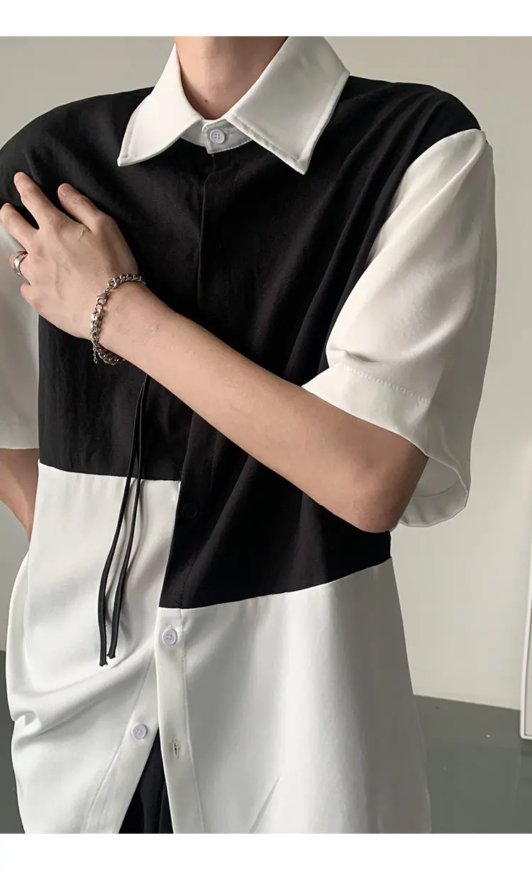 Threebooy Summer Short Sleeved Shirt Men Oversized Fashion Social Mens Dress Shirt Korean Loose Casual Shirts Mens Fake Two Piece Shirts