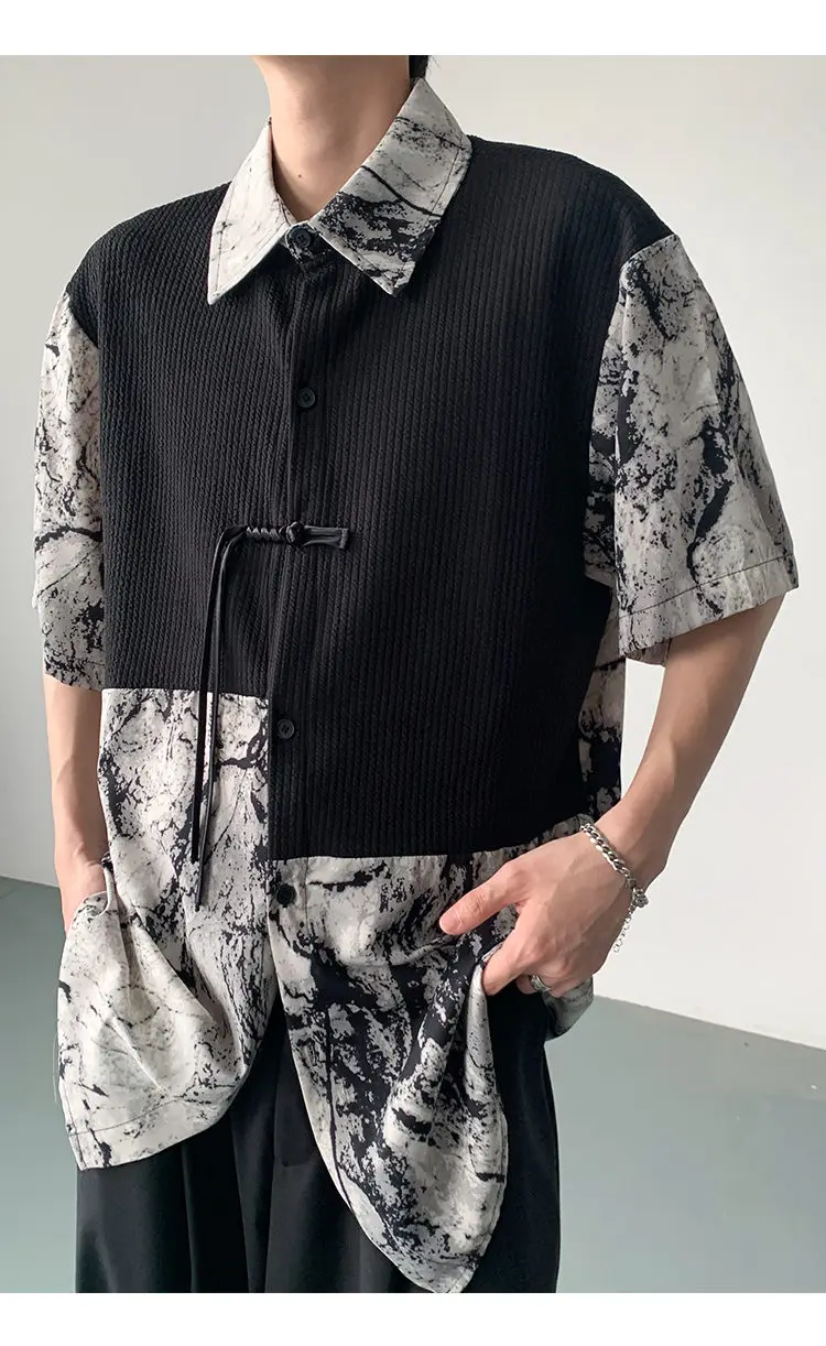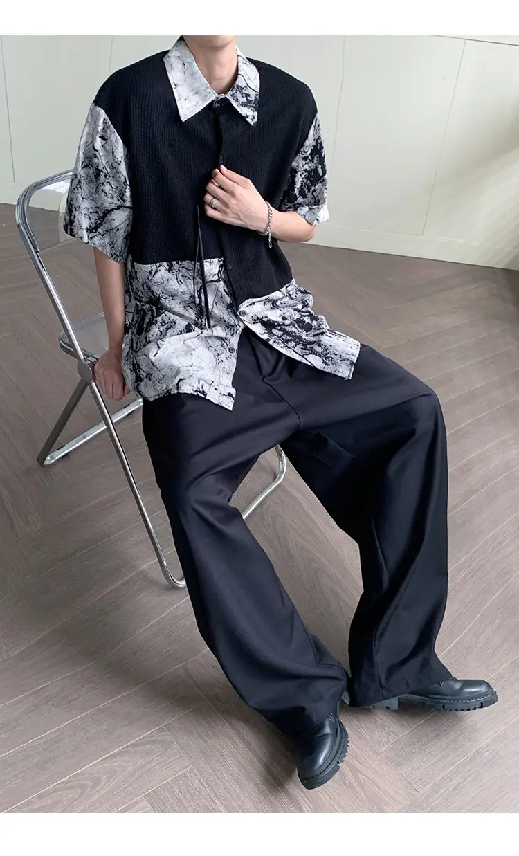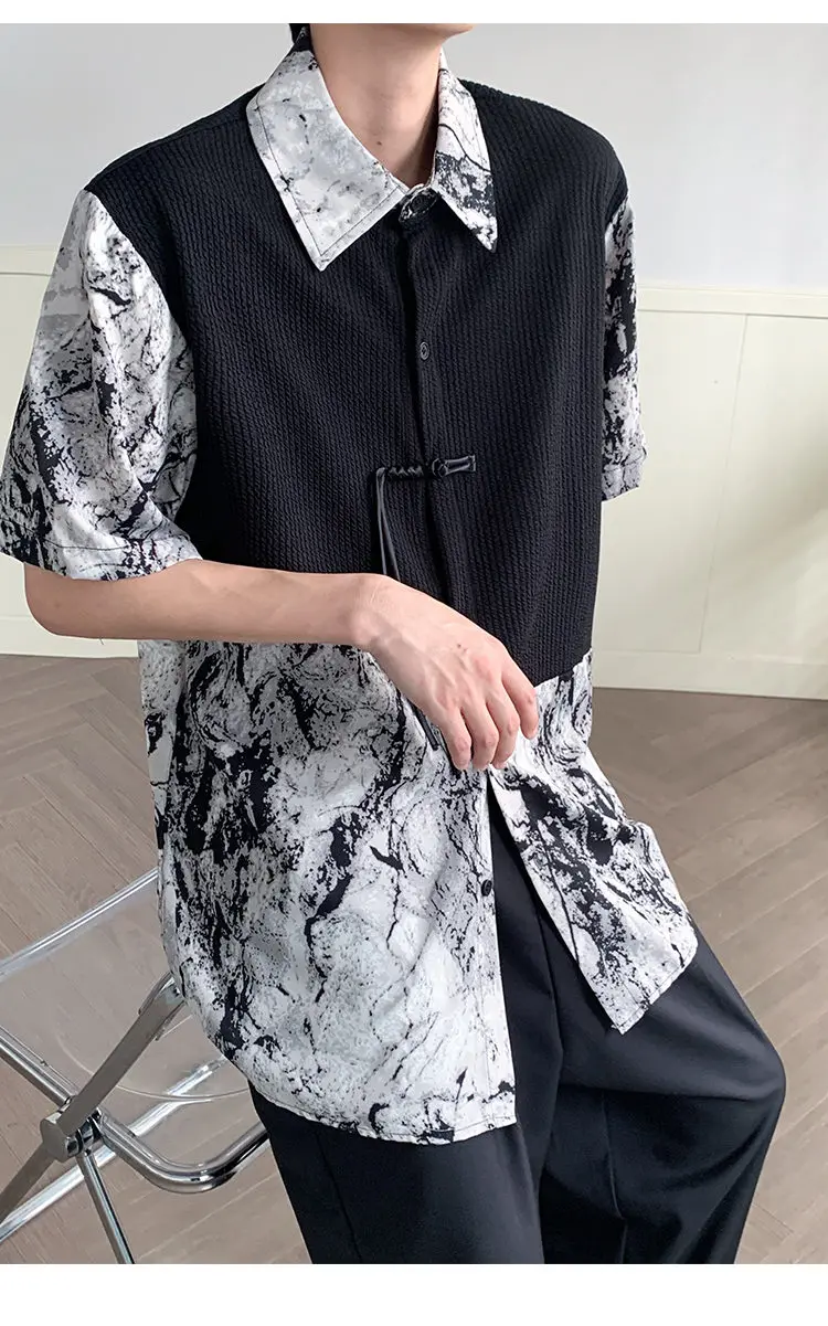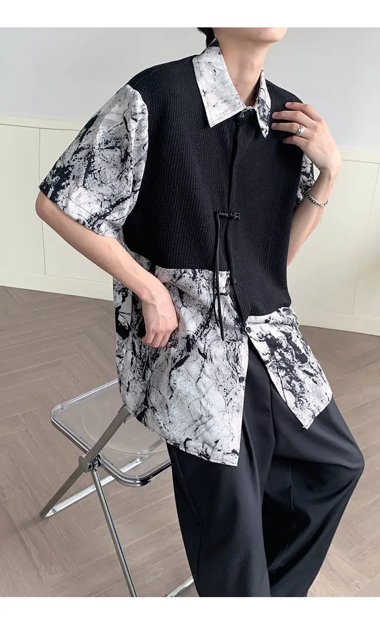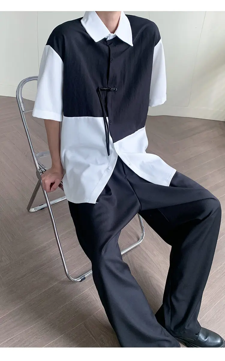 Threebooy Summer Short Sleeved Shirt Men Oversized Fashion Social Mens Dress Shirt Korean Loose Casual Shirts Mens Fake Two Piece Shirts