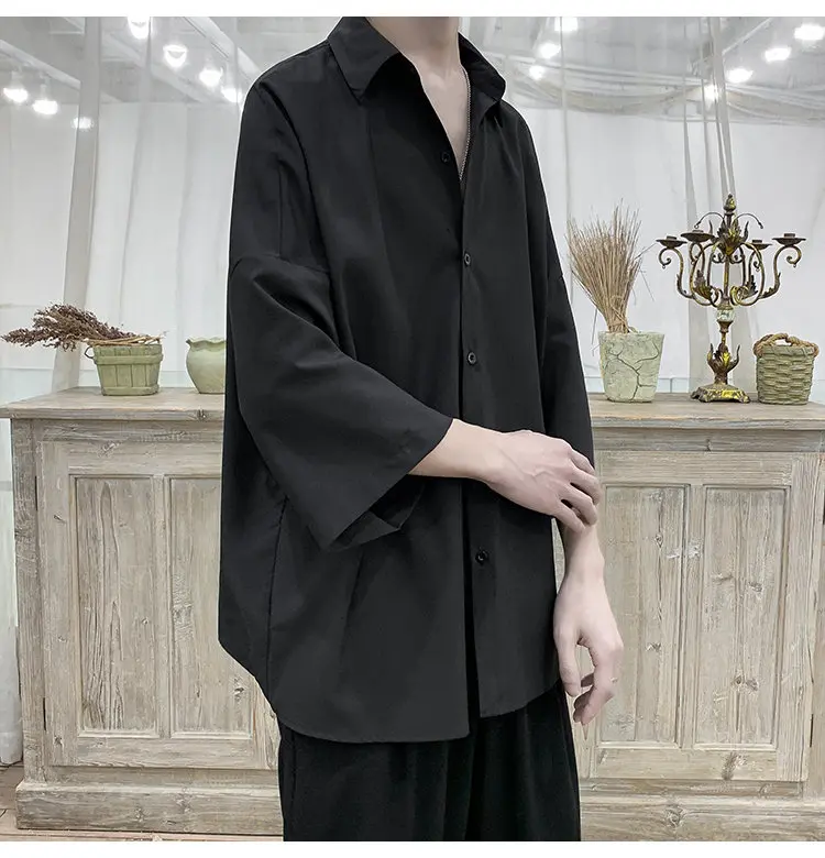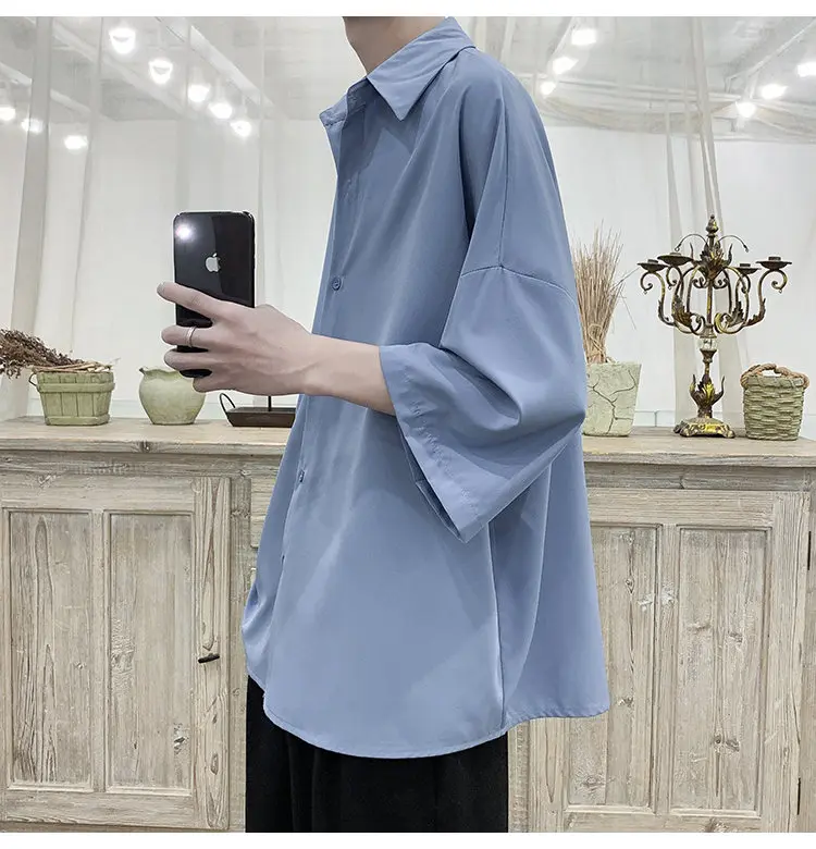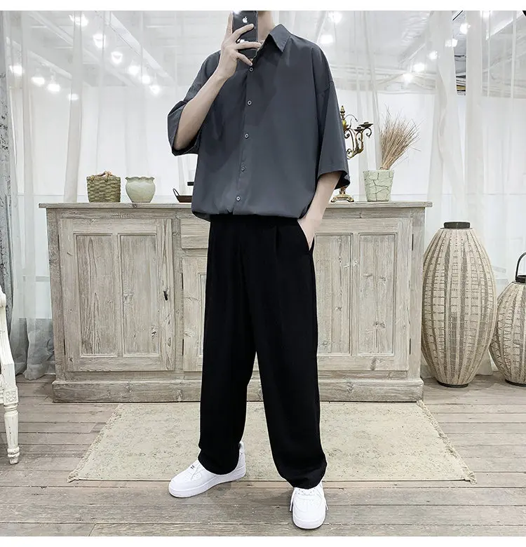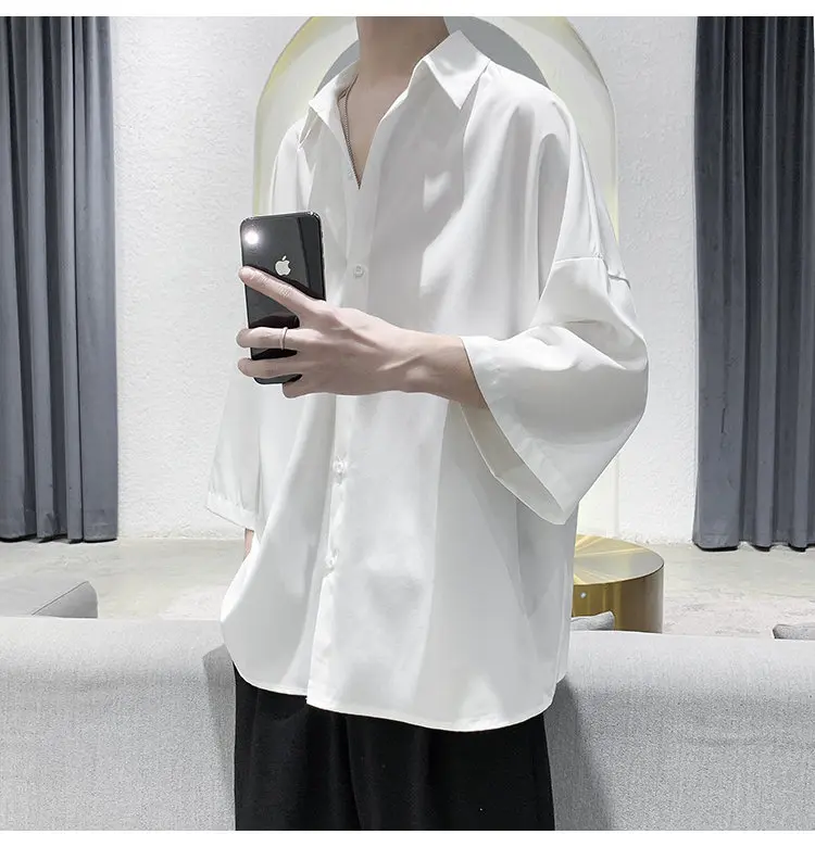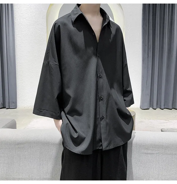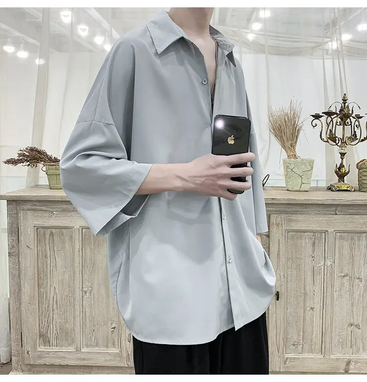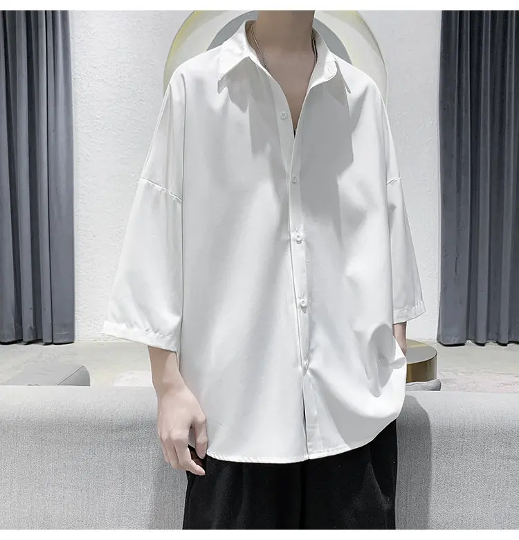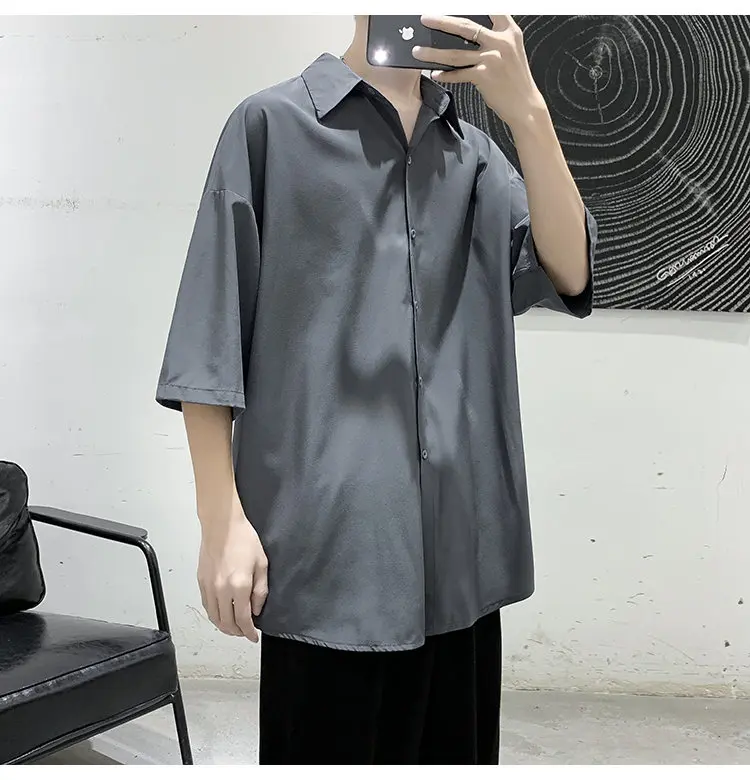 Threebooy Summer Short Sleeved Shirt Men Oversized Fashion Society Mens Dress Shirt Korean Loose Ice Silk Shirt Mens Office Formal Shirts