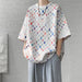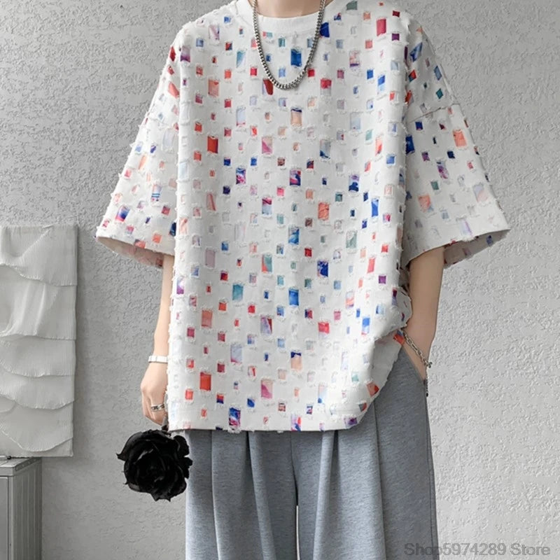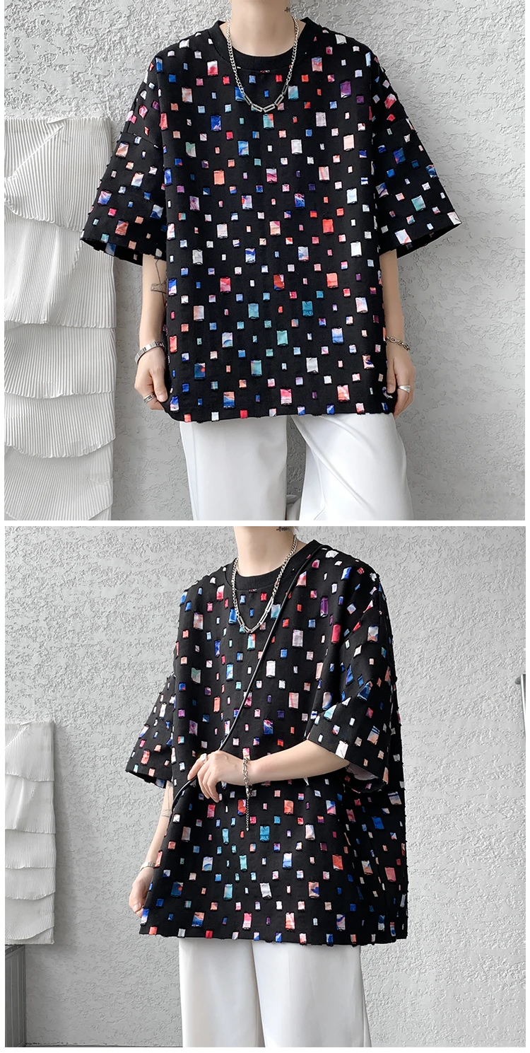 Threebooy Summer Short Sleeved T-shirt Men Fashion Hollow Out Oversized Plaid T Shirt Men Streetwear Hip Hop Loose Casual Tshirt Male 5XL