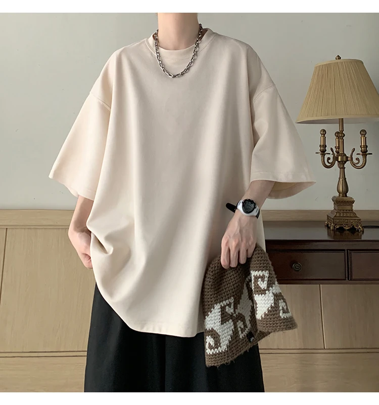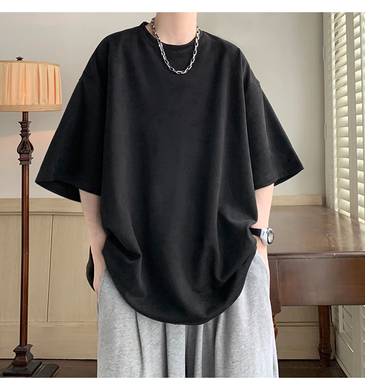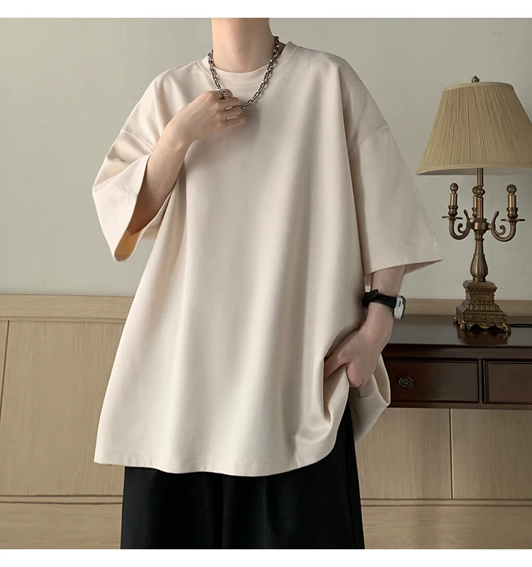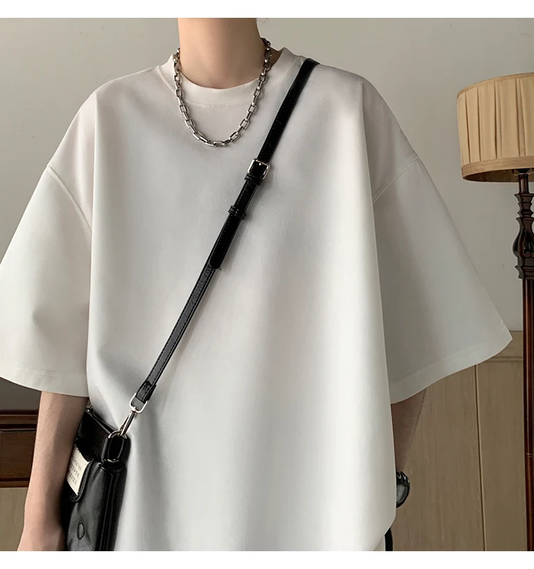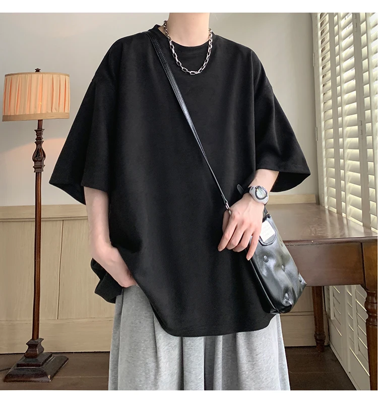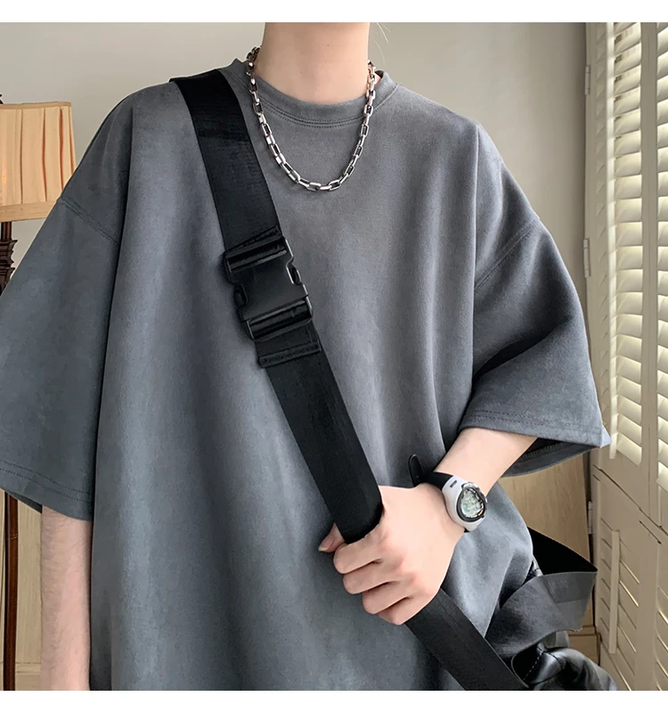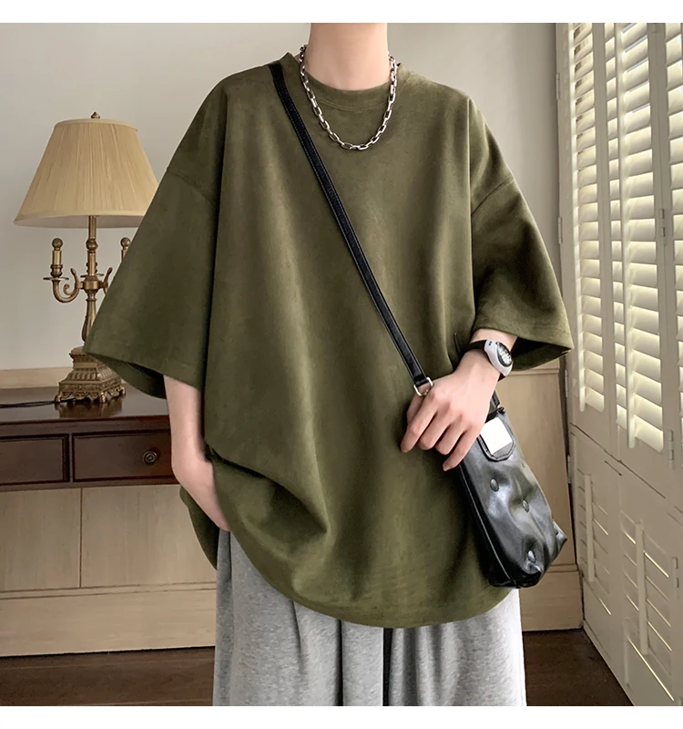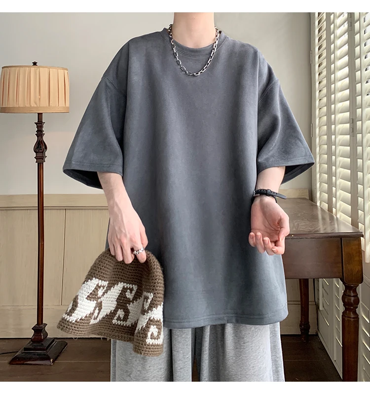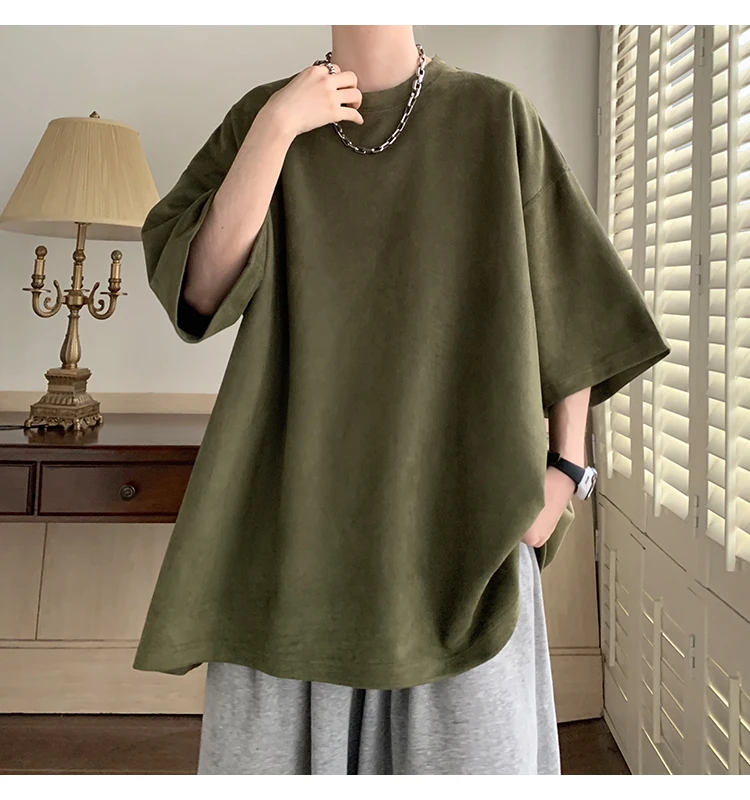 Threebooy Summer Short Sleeved T-shirt Men Oversized Casual Round Neck T Shirt Men Streetwear Korean Loose Suede T Shirt Mens Top M-3XL