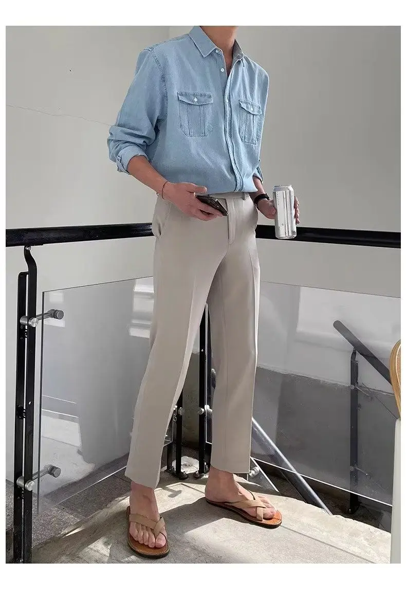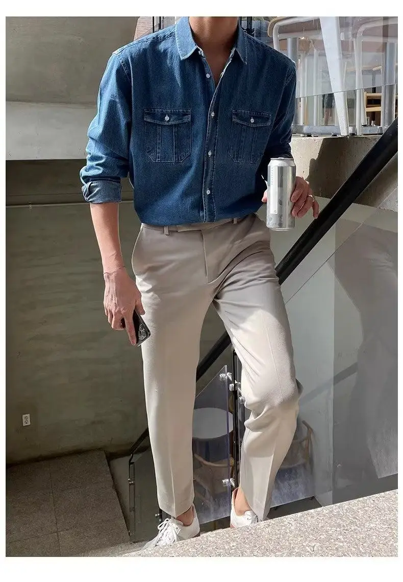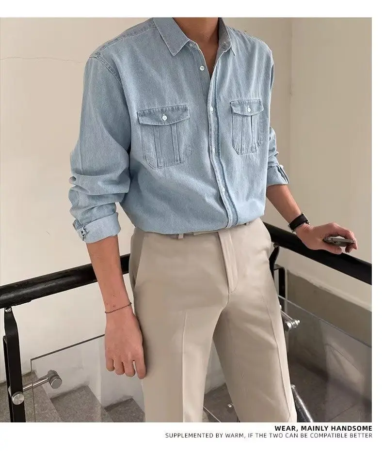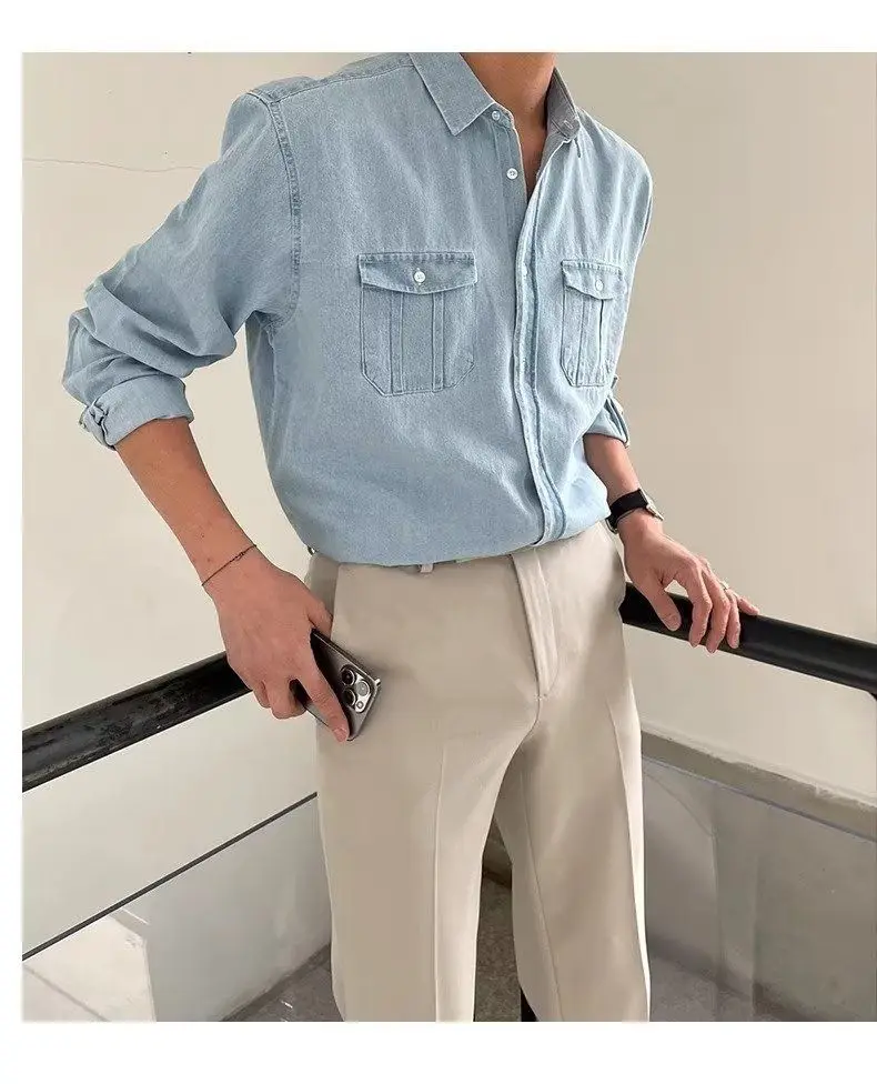 Threebooy Summer Washing and Old Denim Shirt Men's Spring Korean Style Loose High-end Long-sleeved Work Shirt