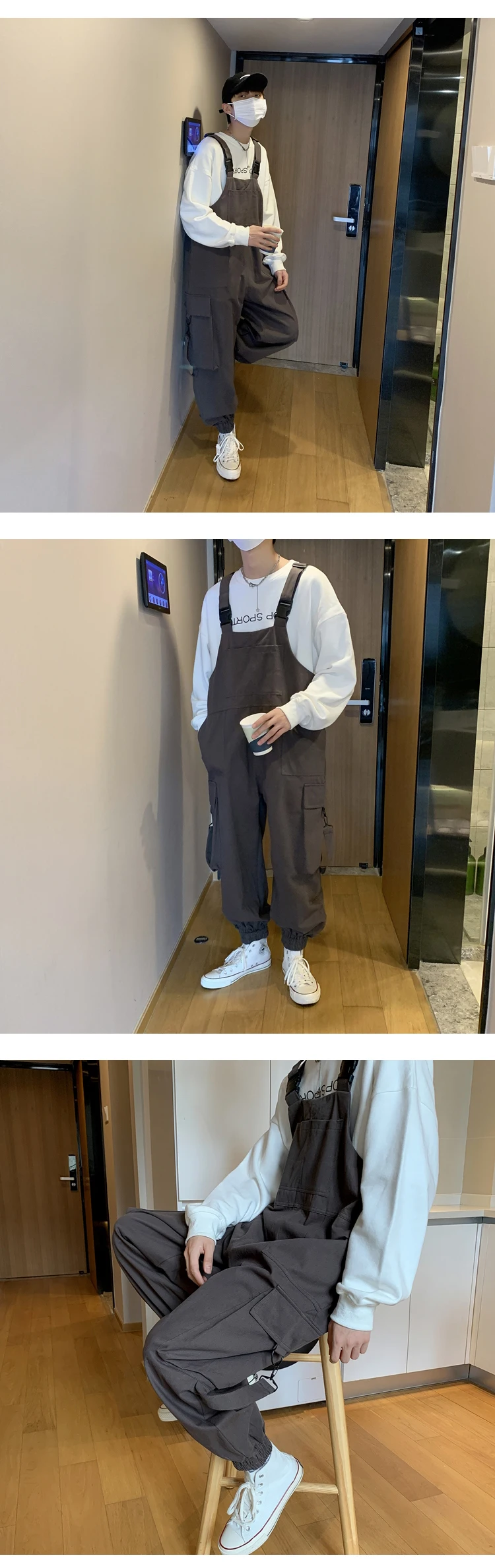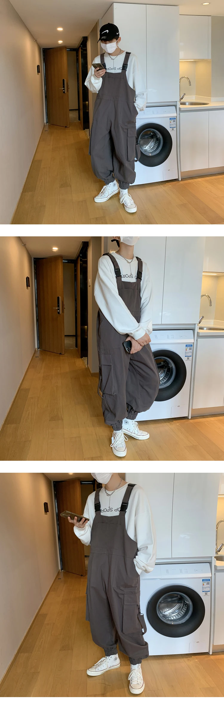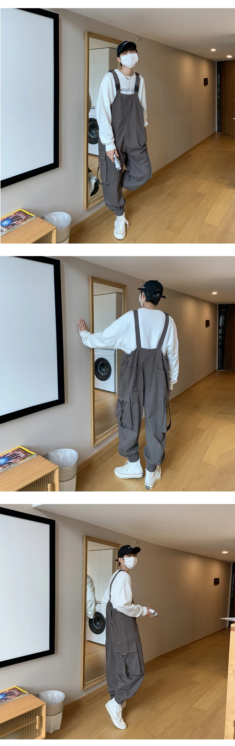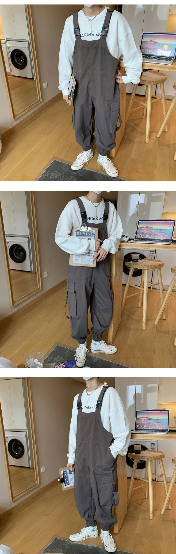 Threebooy Suspenders Jumpsuit Pants Men Summer Overalls Japanese Loose Straps Casual Pockets Unisex Oversize Streetwear Solid Man Clothing