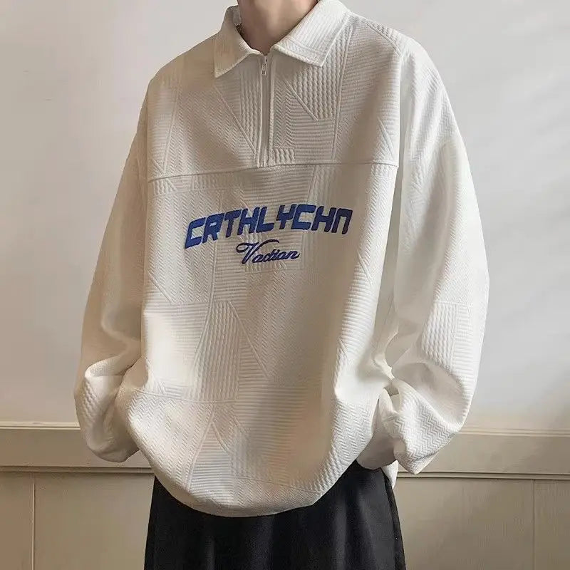 Threebooy Sweatshirt Men's Autumn American Trendy High Street Heavy Spring Autumn Style Boy Casual Lapel Japanese Polo Shirt Men's Wear