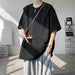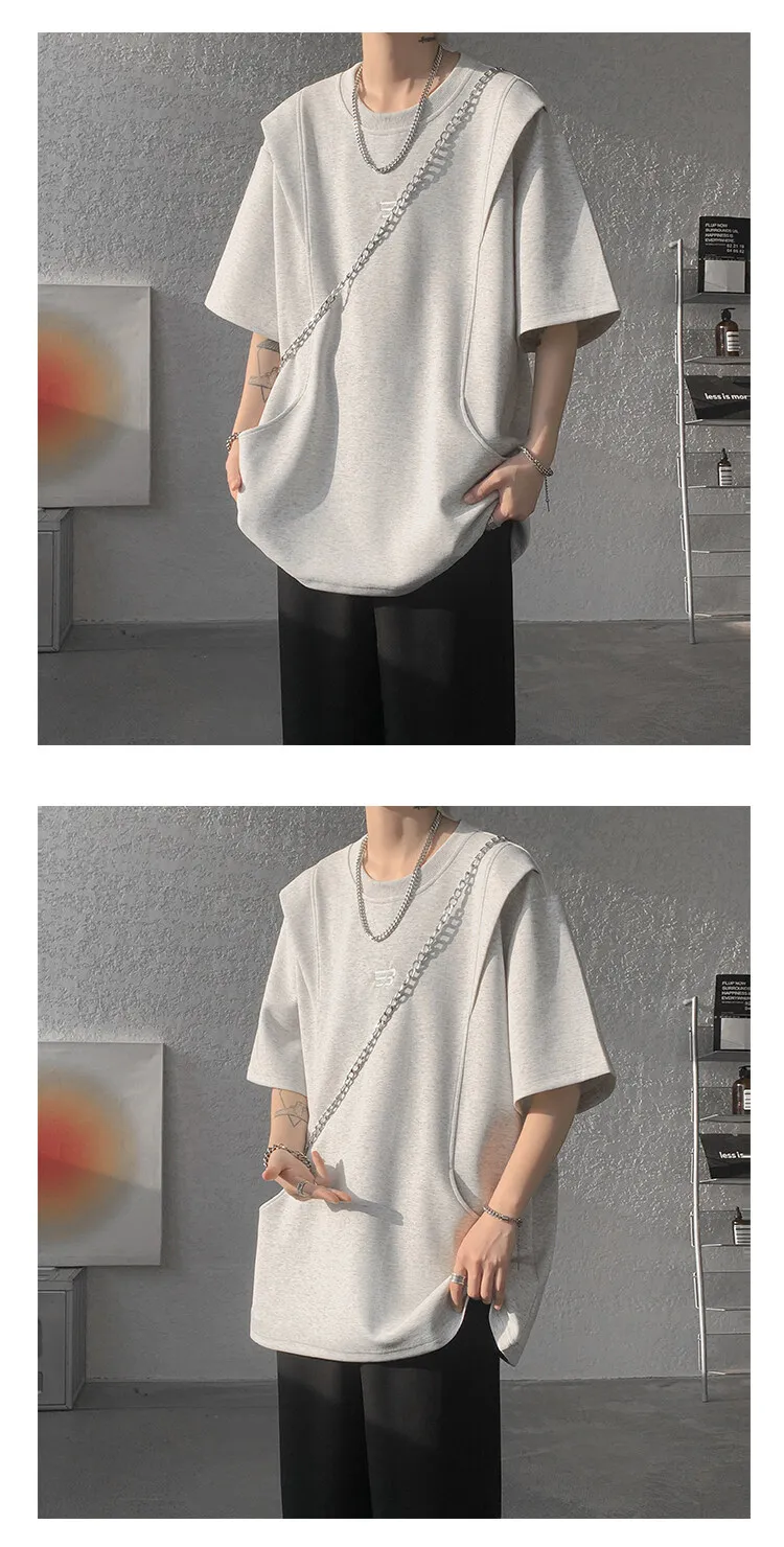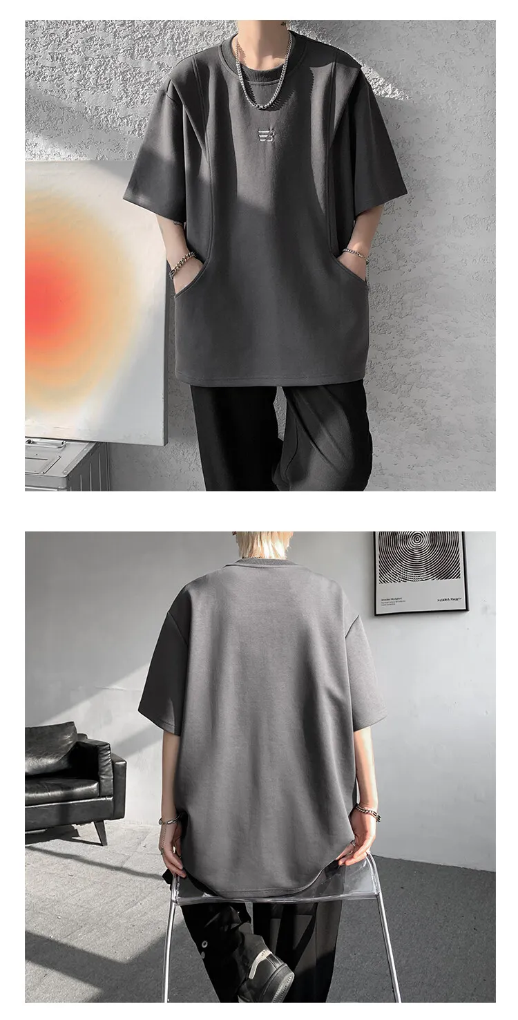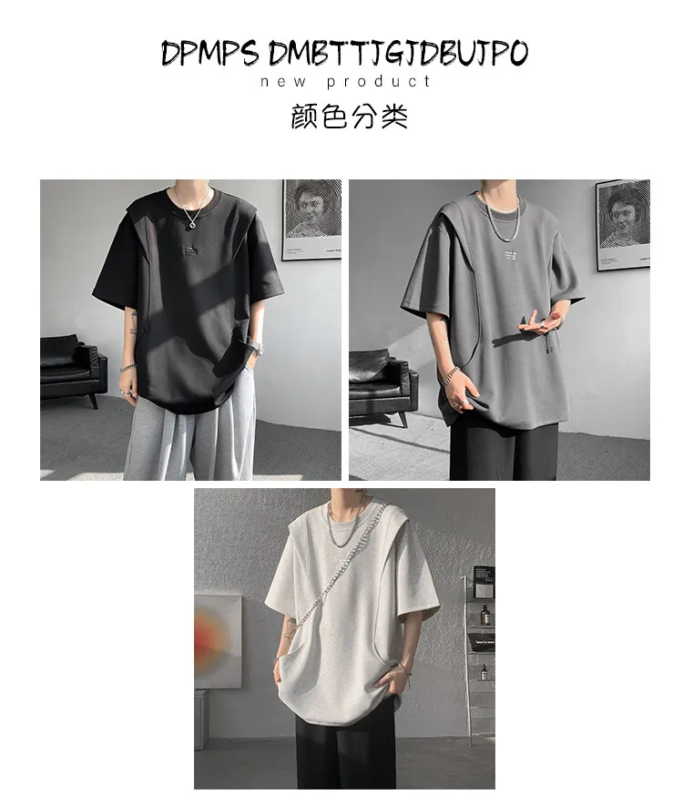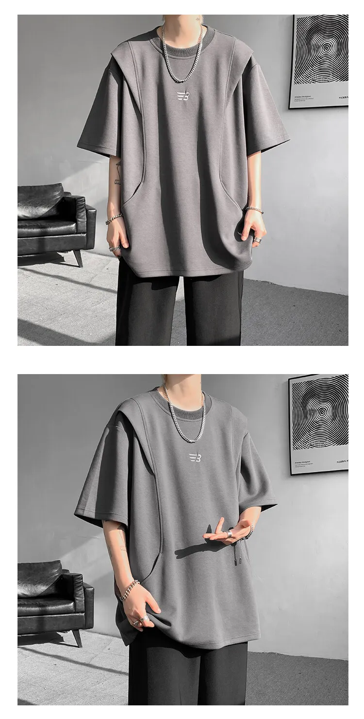 Threebooy t shirt Men Loose Fit Crew Neck T-Shirt Solid Streetwear Urban Casual Patchwork Design Trendy Hip Hop Tee man 2024 Fashion